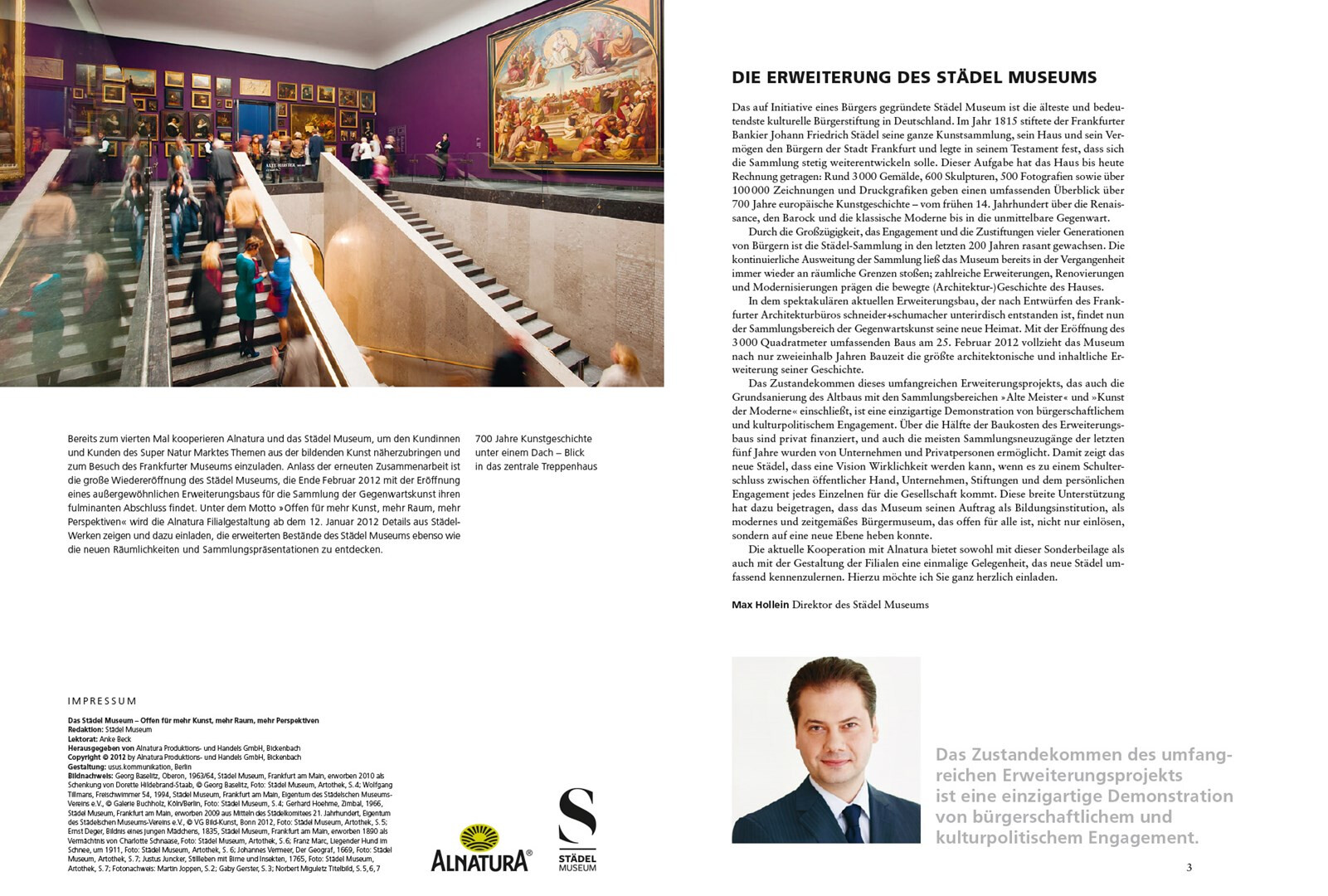 beihefter-gestaltung im rahmen des layouts des alnatura magazins. die ausgabe februar 2012 enthält eine 8-seitige beilage im rahmen einer kooperation zwischen alnatura und dem städel museum frankfurt a.m. verlag: mfk corporate publishing gmbh, darmstadt
