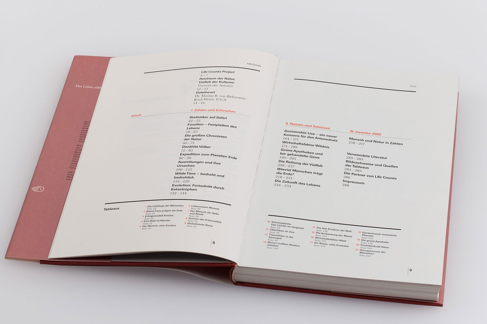 hätten sie gewusst, dass mehr tiere auf der erde leben als es sterne in unserer galaxie gibt? solche und andere fragen zum reichtum der natur beantwortet »life counts«, eine globale bilanz des lebens von den autoren michael gleich, dirk maxeiner, michael miersch, fabian nicolay (berlin verlag, 2000). die zählung des lebens auf unserem planeten wird in »life counts« als bestandsaufnahme verstanden, die verdeutlicht, dass der verlust an vielfalt zugleich ein verlust an zukunftschancen ist. mit detailreichen, grafisch aufwändigen tableaus werden komplexe sachverhalte rund um das thema biodiversität, artenschutz und nutzung aufbereitet. renommierte wissenschaftliche institutionen wie das world conservation monitoring centre, wcmc in cambridge oder die unep, das »environmental programme« der vereinten nationen standen pate für das projekt und lieferten die wissenschaftlichen daten. das »wissenschaftsbuch des jahres 2000« wurde in zahlreiche sprachen übersetzt und vom new york art directors club für hervorragende gestaltung prämiert.