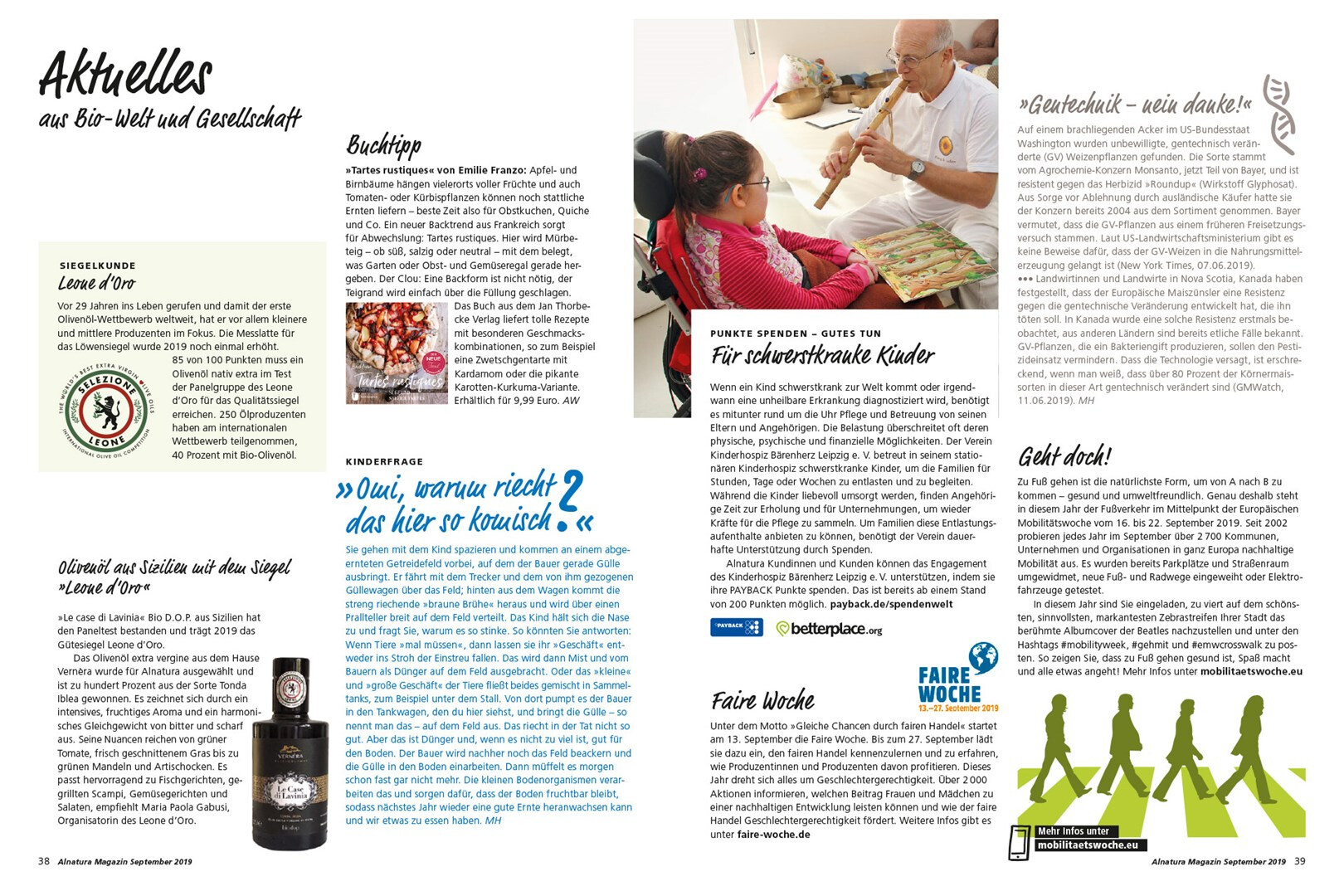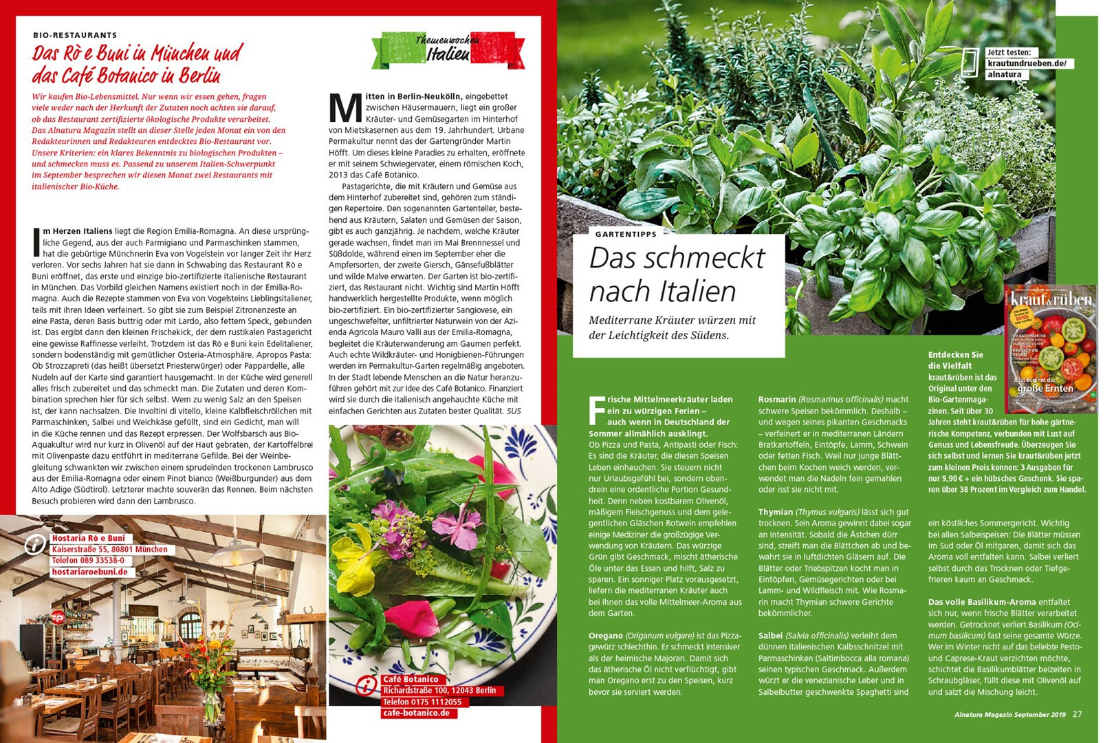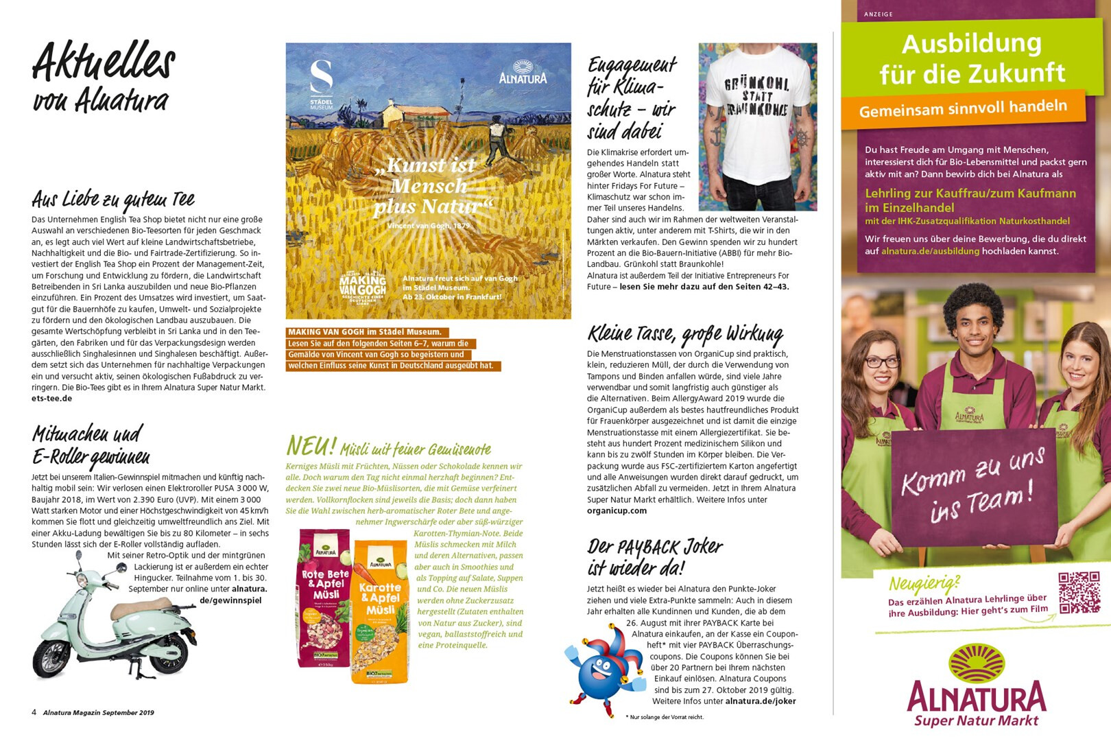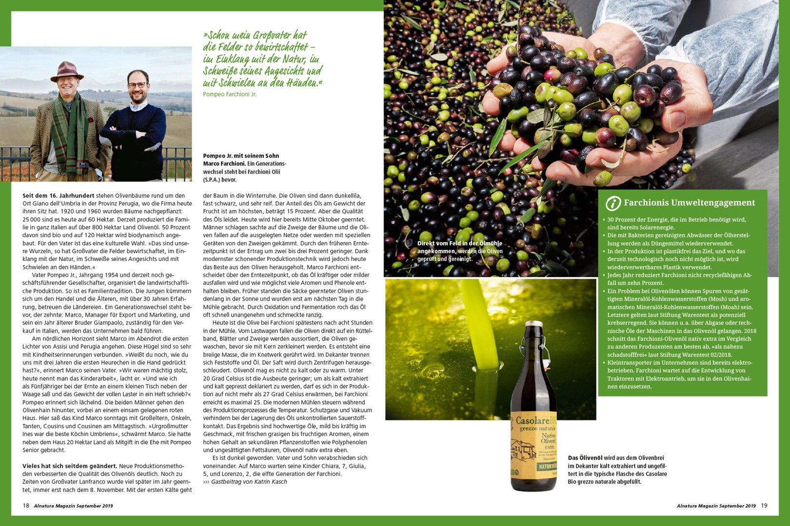 das »italien«-spezial erhält eine klar italienische und genussfreudige ästhetik. mit dem relaunch 2018 verpasste usus dem kundenmagazin ein großzügigeres layout und verschlankte typografie. auf 52 seiten publiziert alnatura aktuelle angebote und redaktionelle beiträge mit einblicken in sein unternehmen sowie zu gesellschaftlich relevanten themen. verlag und redaktion: mfk corporate publishing gmbh, darmstadt