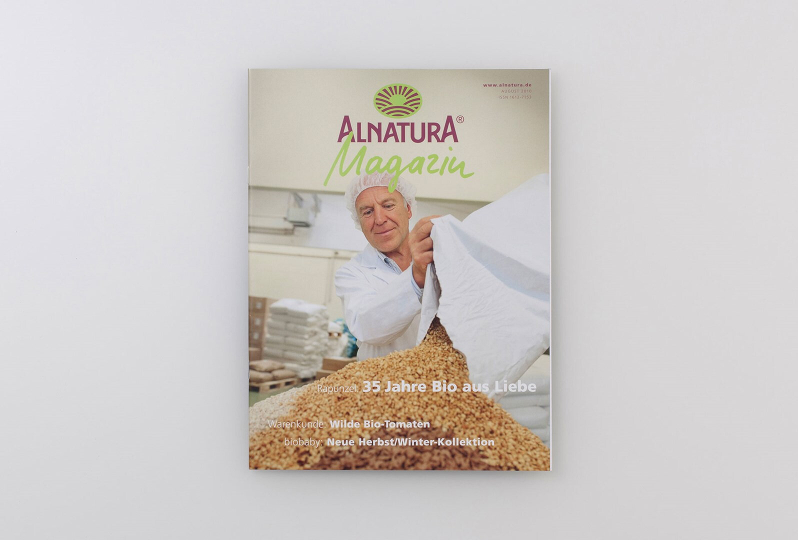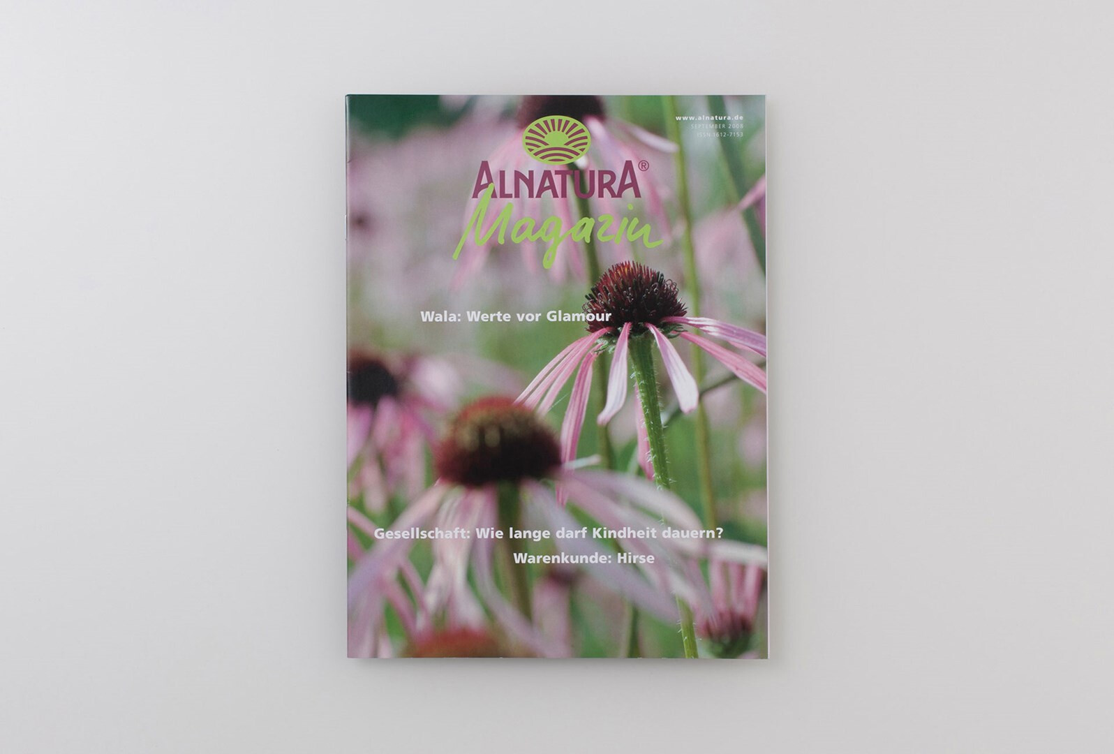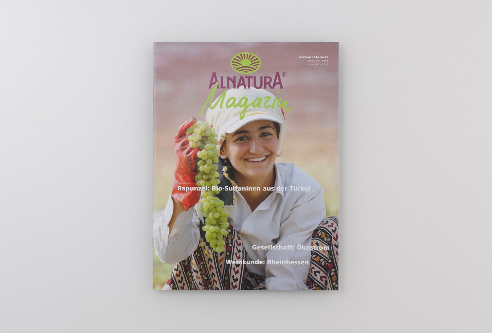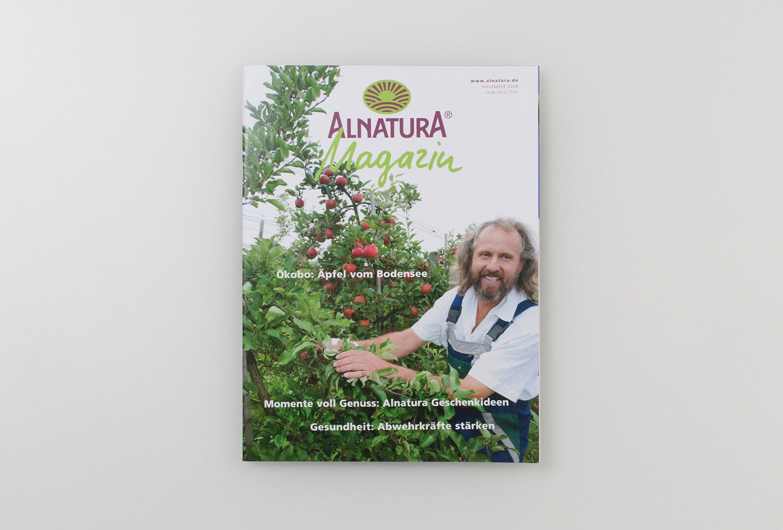 layout des alnatura corporate-magazins, titelübersicht 2008 bis september 2020. das 52-seitige kundenmagazin beinhaltet aktuelle angebote und redaktionelle beiträge mit einblicken in das unternehmen sowie zu gesellschaftlich relevanten themen. verlag und redaktion: mfk corporate publishing gmbh, darmstadt