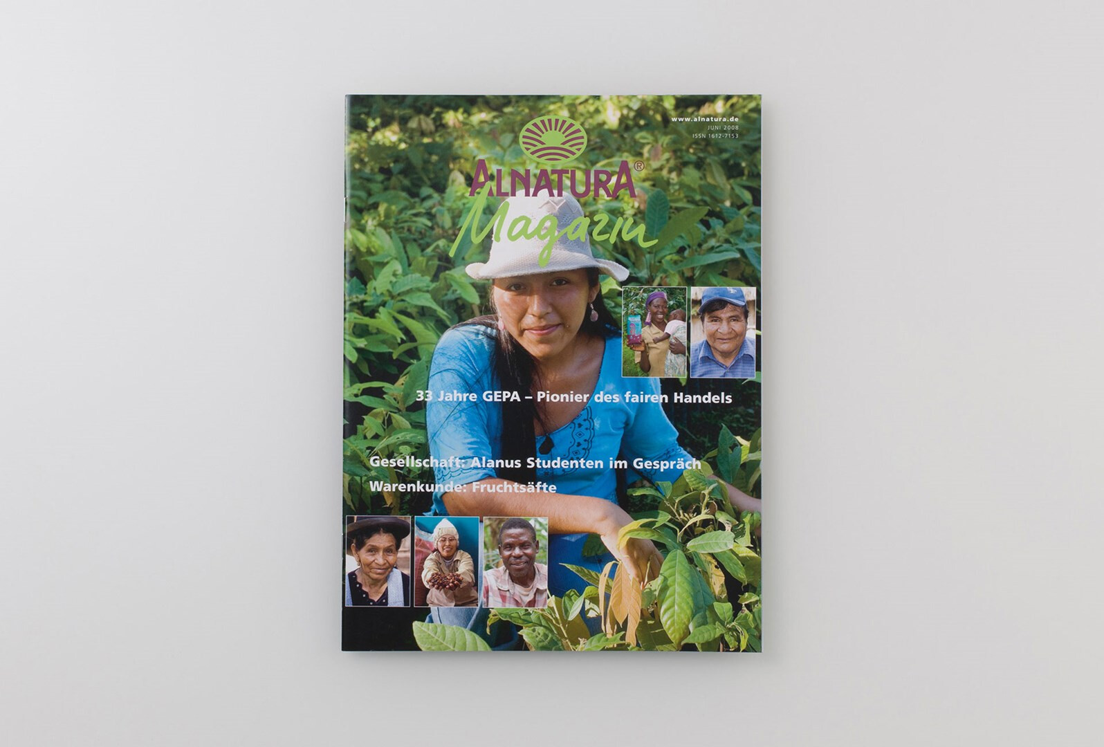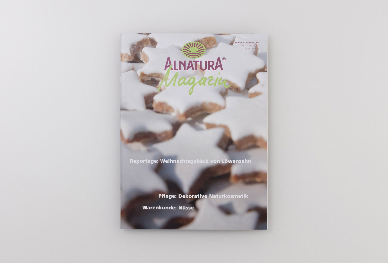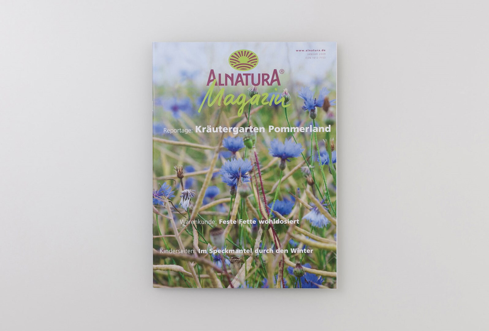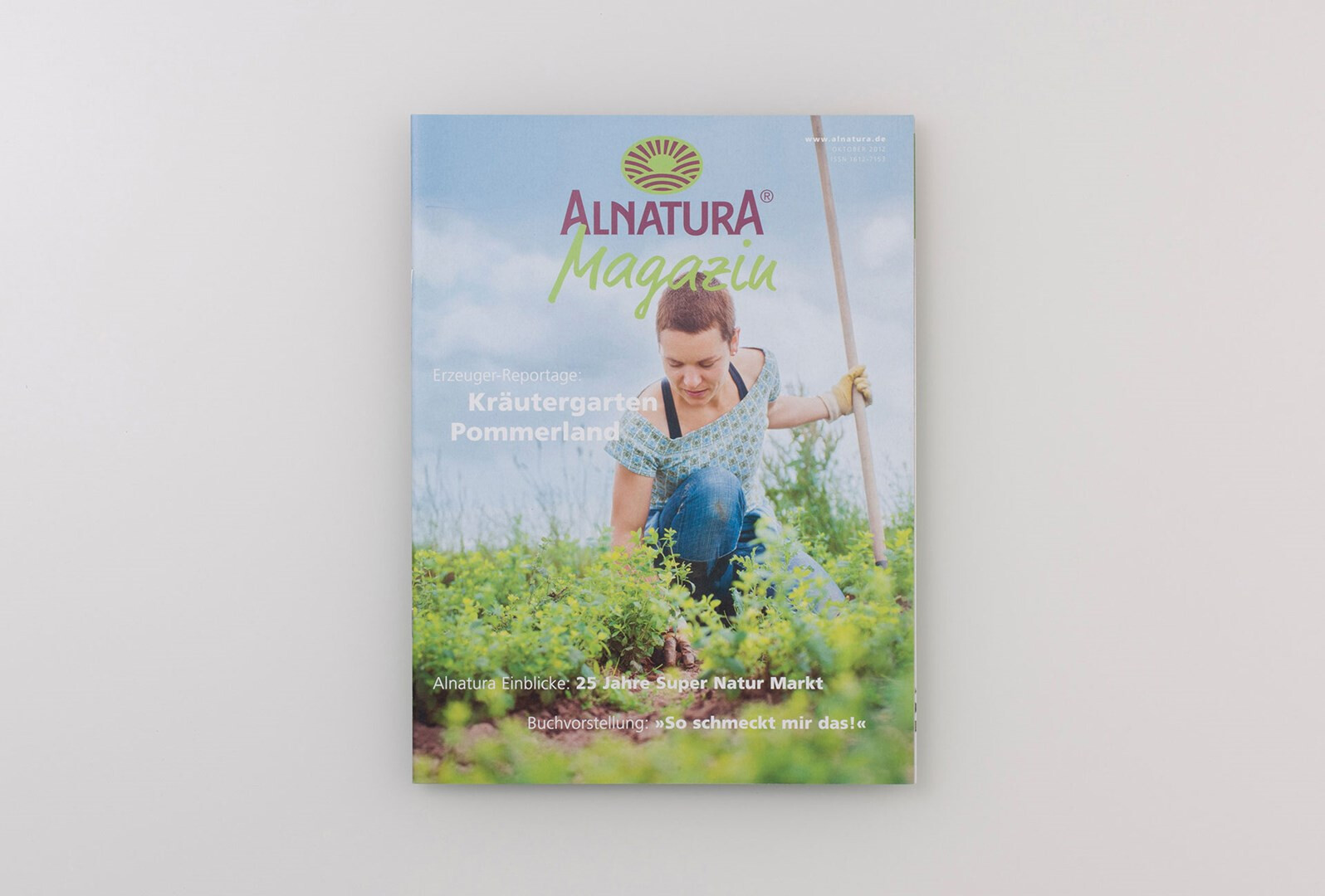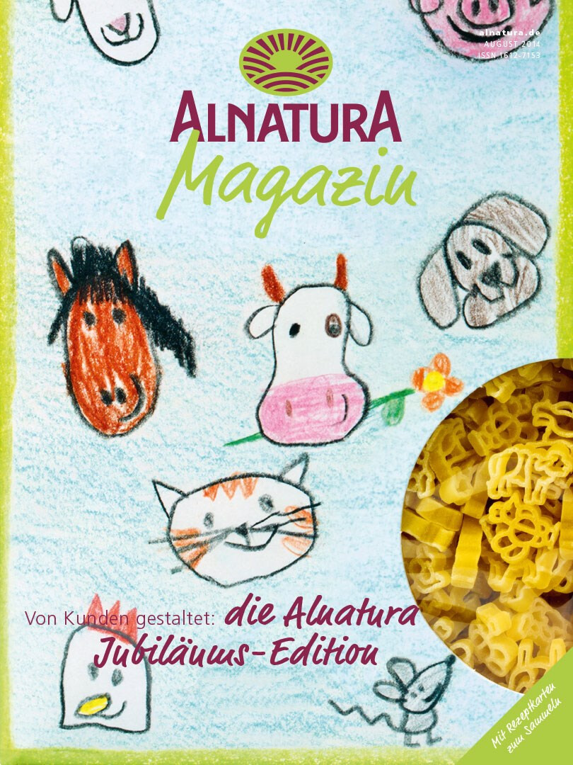 layout des alnatura corporate-magazins, titelübersicht 2008 bis september 2020. das 52-seitige kundenmagazin beinhaltet aktuelle angebote und redaktionelle beiträge mit einblicken in das unternehmen sowie zu gesellschaftlich relevanten themen. verlag und redaktion: mfk corporate publishing gmbh, darmstadt