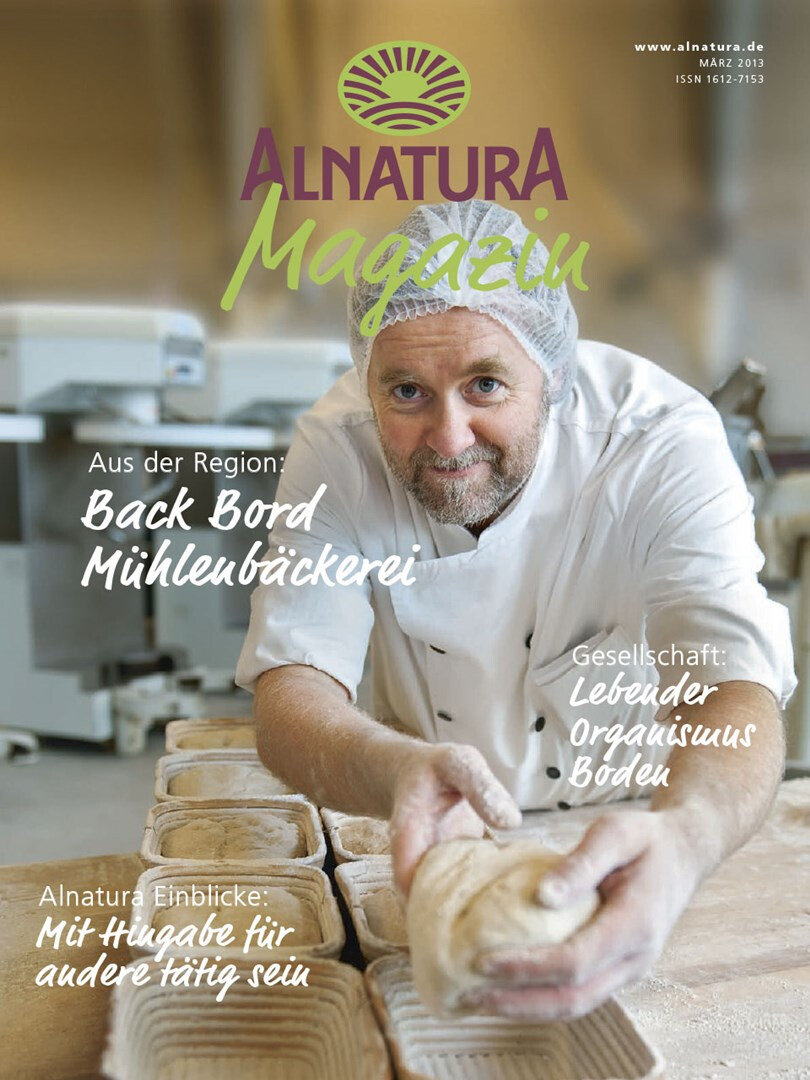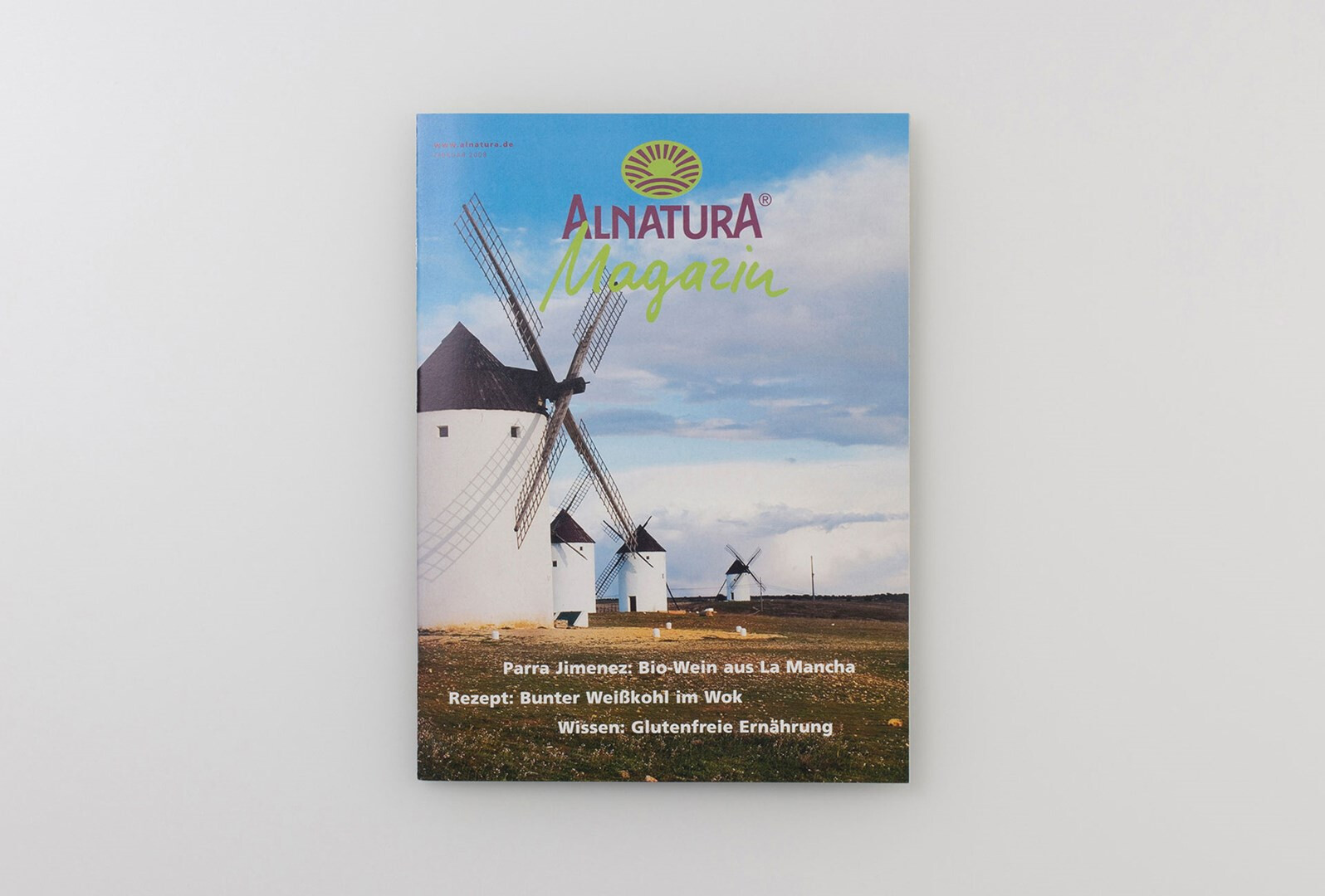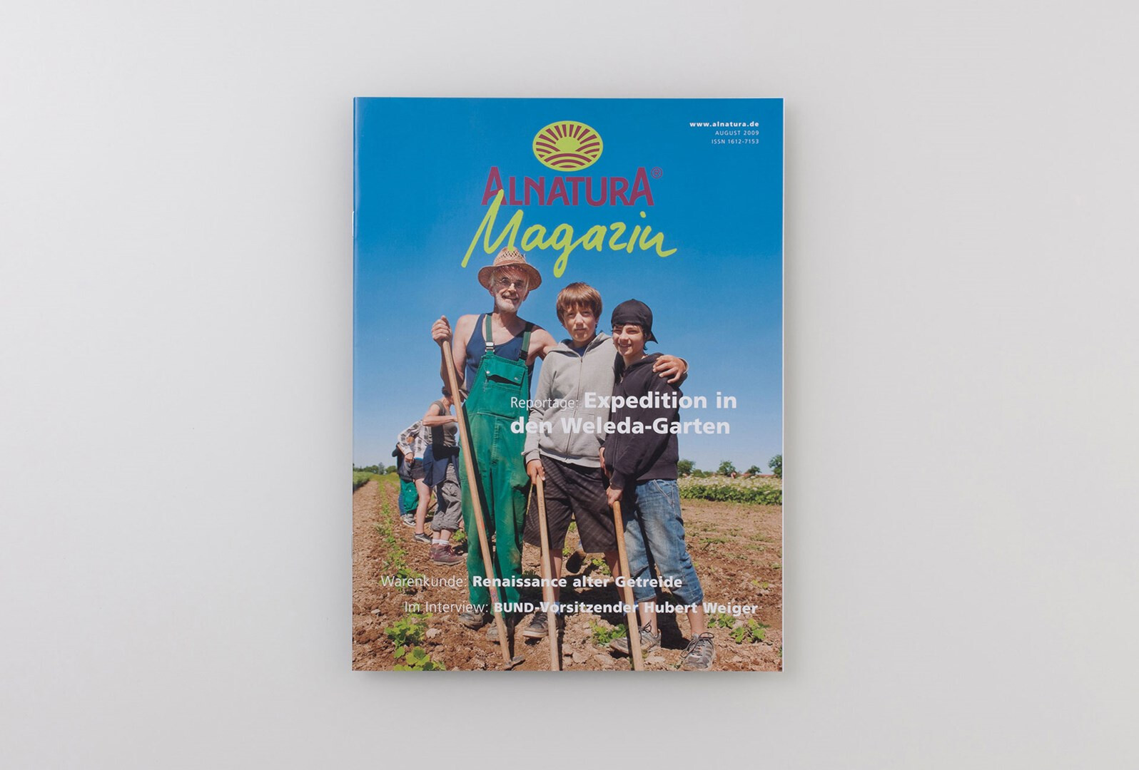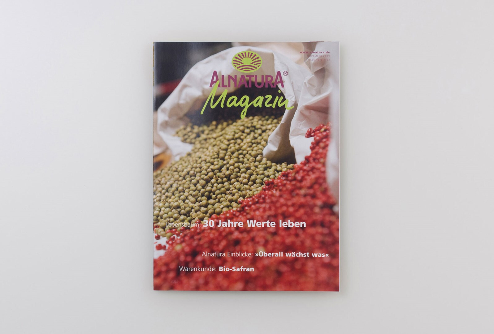 layout des alnatura corporate-magazins, titelübersicht 2008 bis september 2020. das 52-seitige kundenmagazin beinhaltet aktuelle angebote und redaktionelle beiträge mit einblicken in das unternehmen sowie zu gesellschaftlich relevanten themen. verlag und redaktion: mfk corporate publishing gmbh, darmstadt