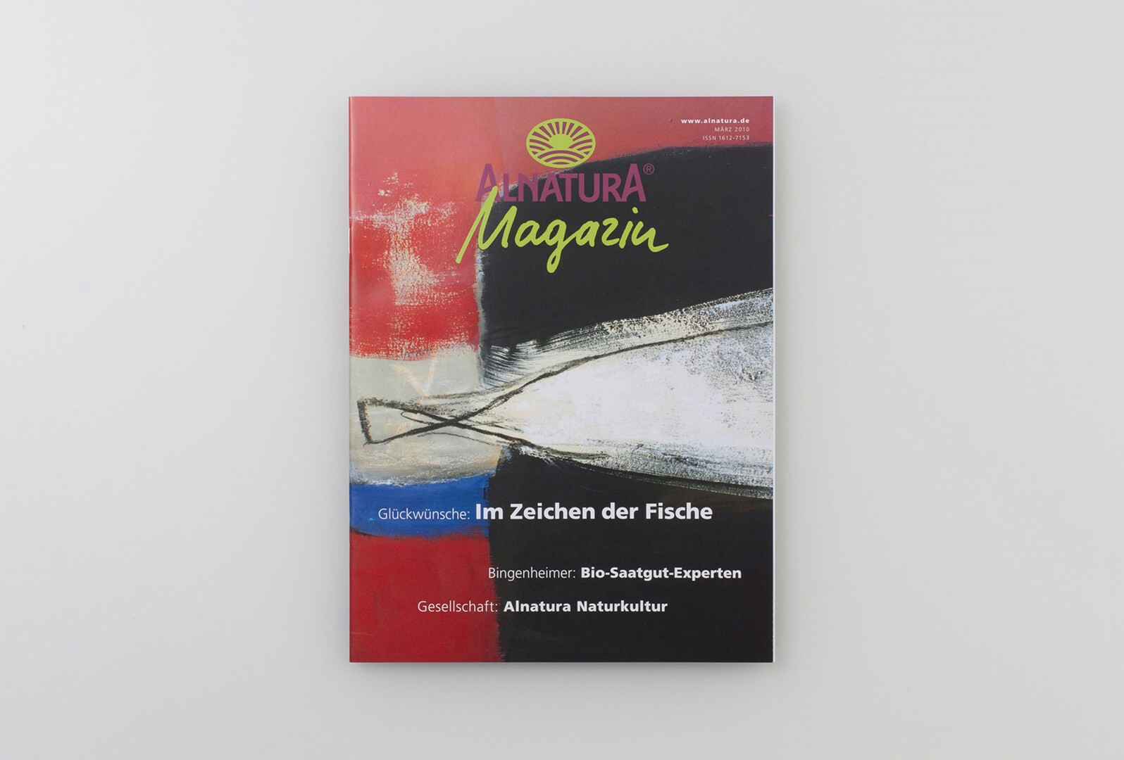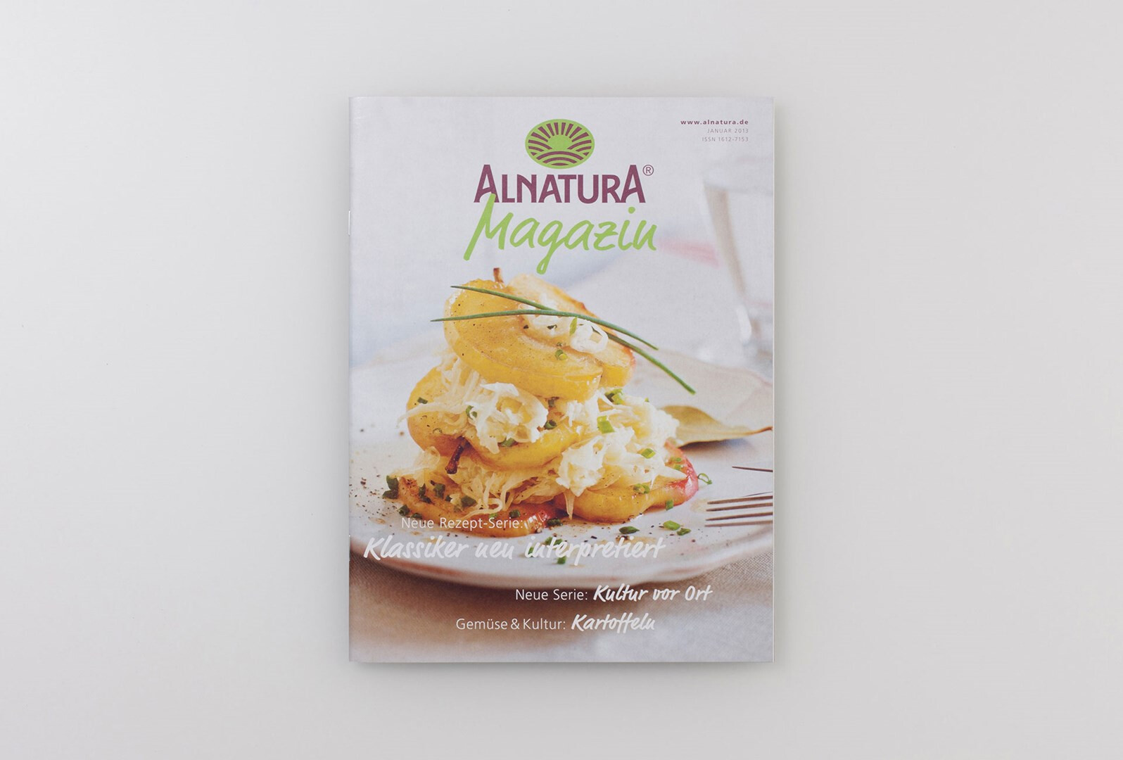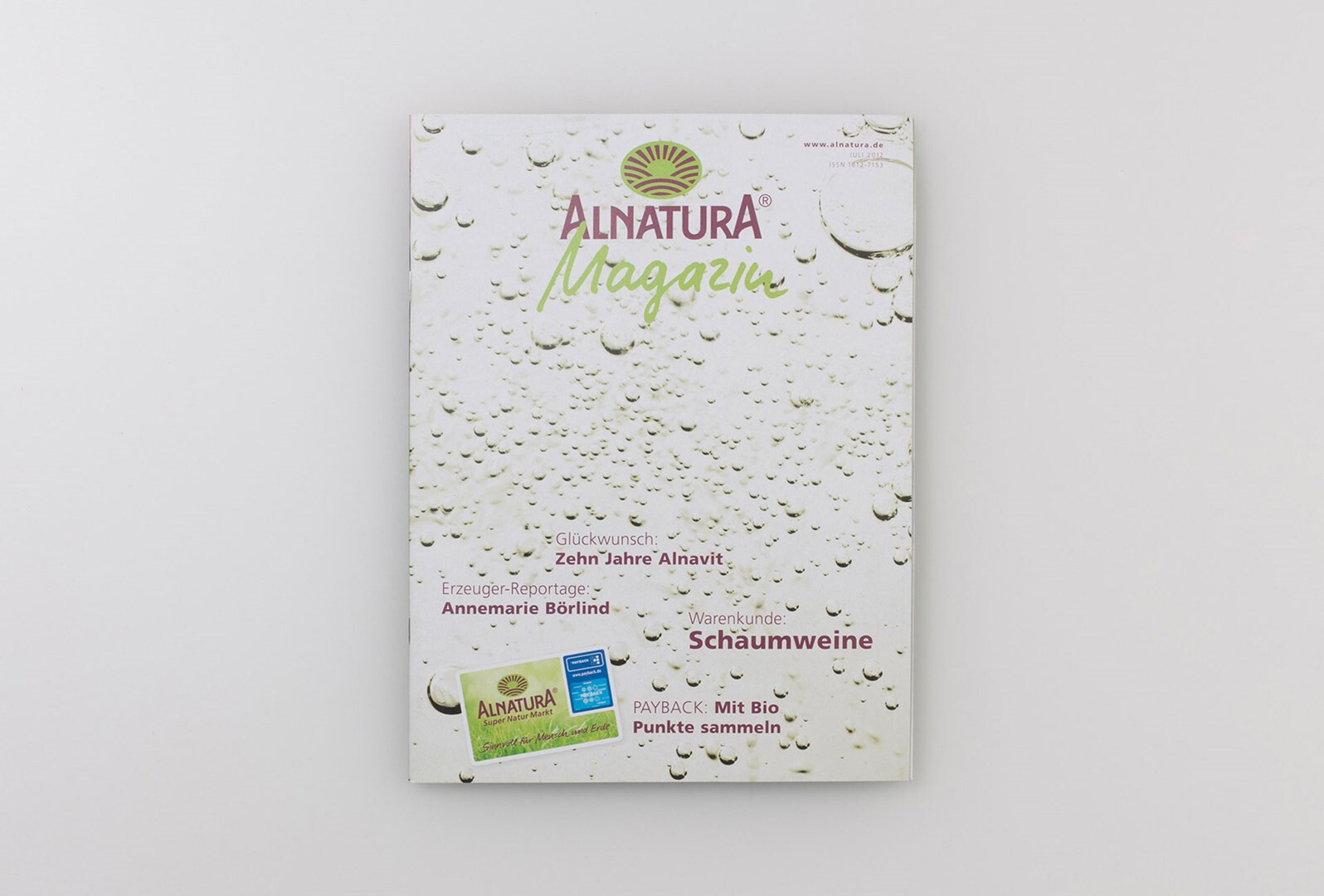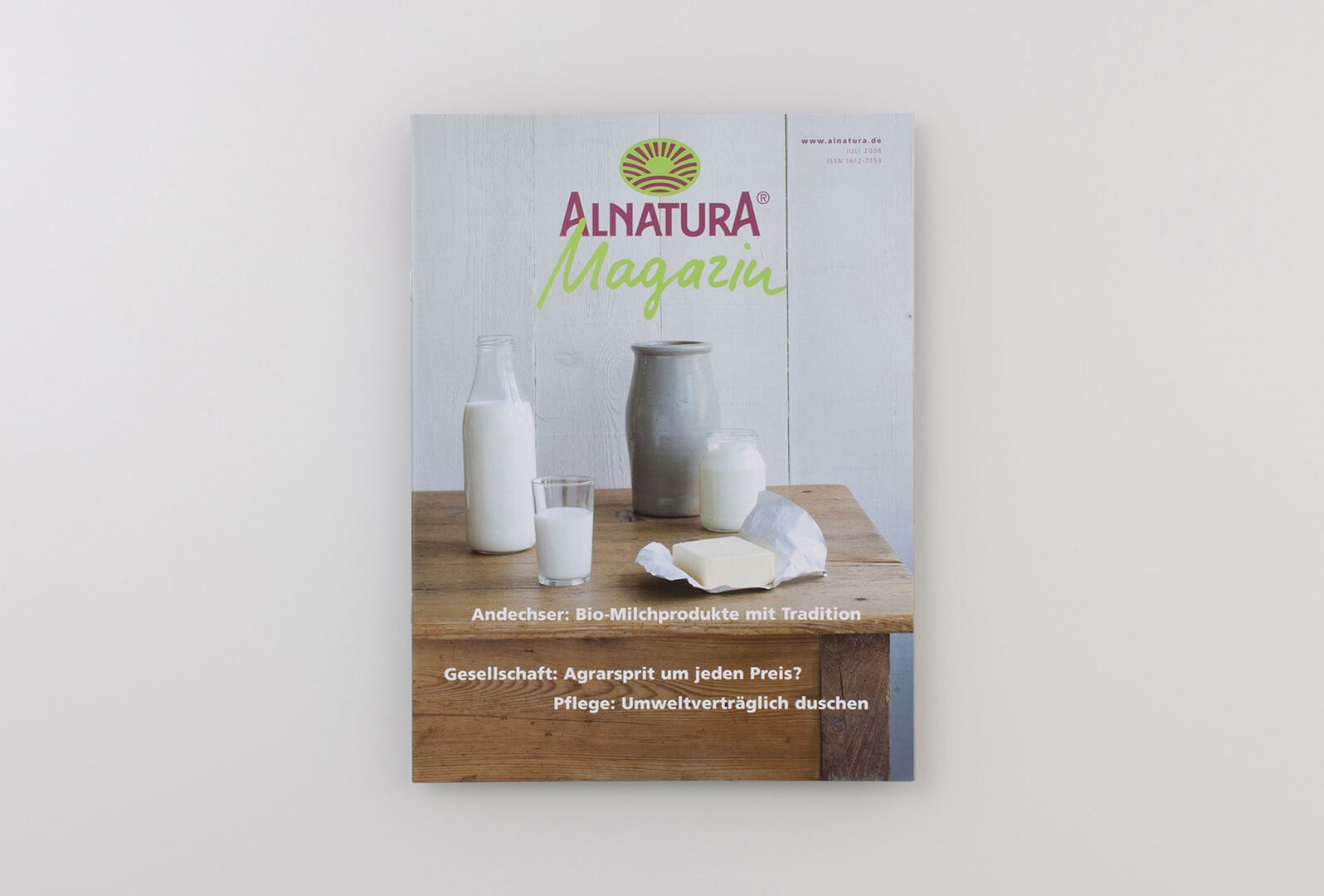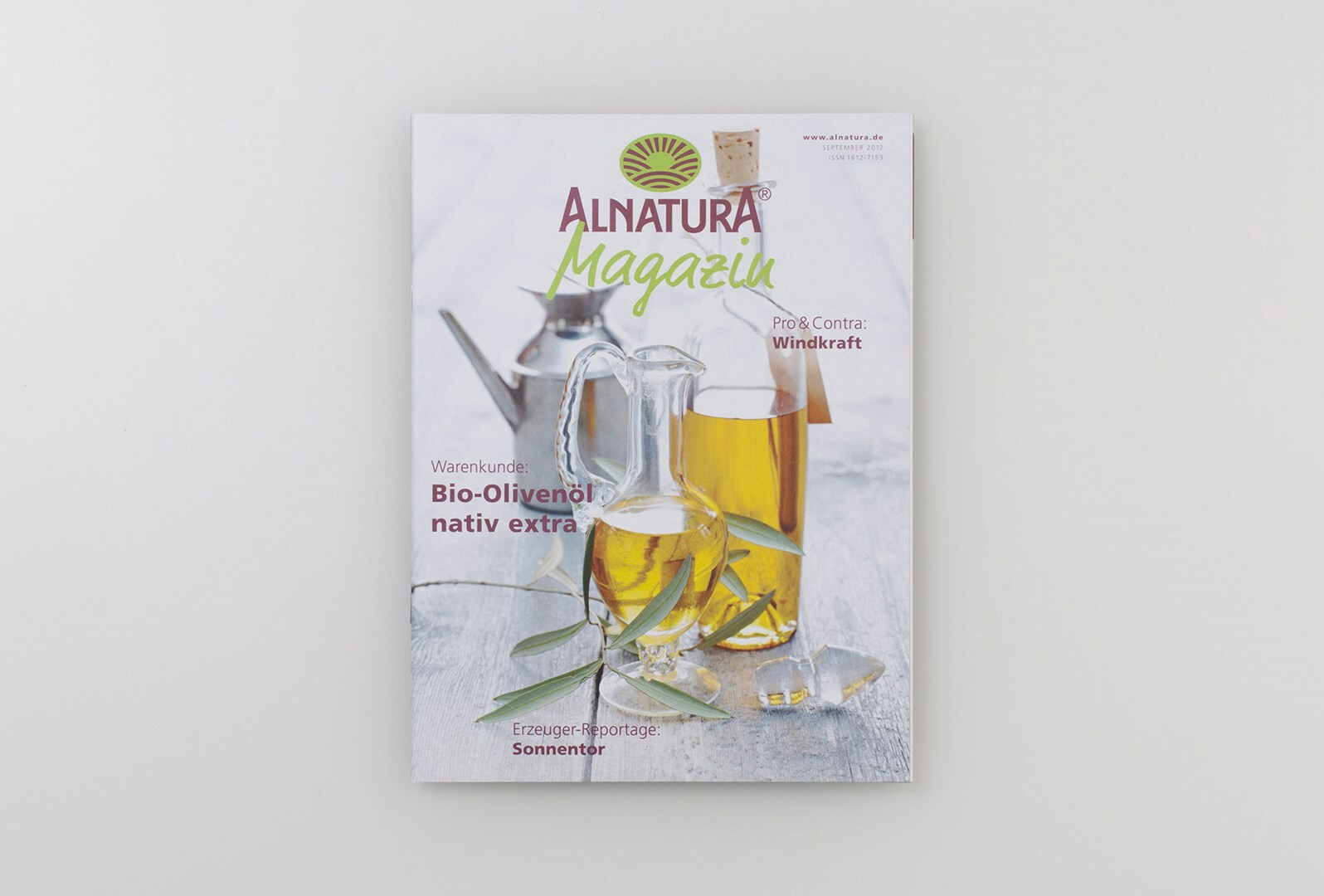 layout des alnatura corporate-magazins, titelübersicht 2008 bis september 2020. das 52-seitige kundenmagazin beinhaltet aktuelle angebote und redaktionelle beiträge mit einblicken in das unternehmen sowie zu gesellschaftlich relevanten themen. verlag und redaktion: mfk corporate publishing gmbh, darmstadt