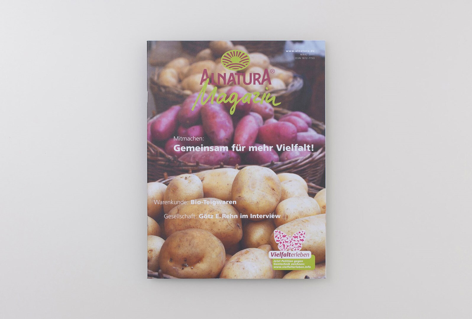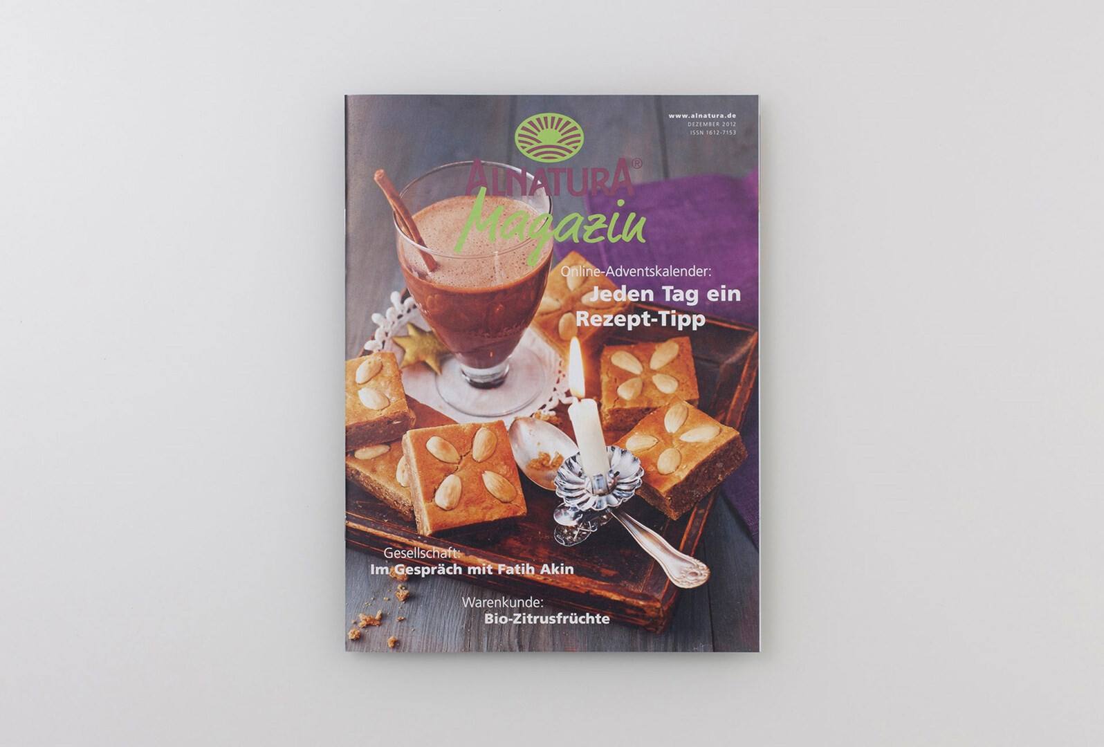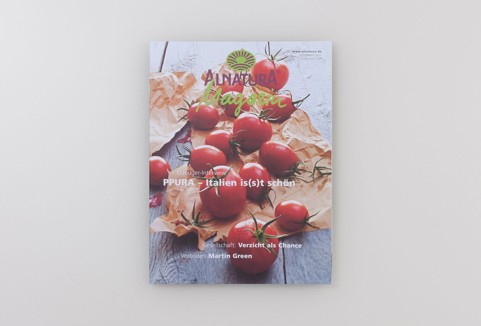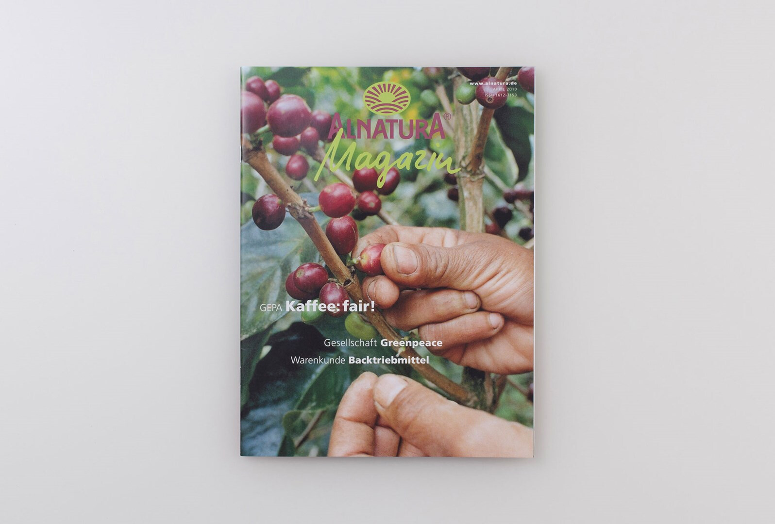 layout des alnatura corporate-magazins, titelübersicht 2008 bis september 2020. das 52-seitige kundenmagazin beinhaltet aktuelle angebote und redaktionelle beiträge mit einblicken in das unternehmen sowie zu gesellschaftlich relevanten themen. verlag und redaktion: mfk corporate publishing gmbh, darmstadt