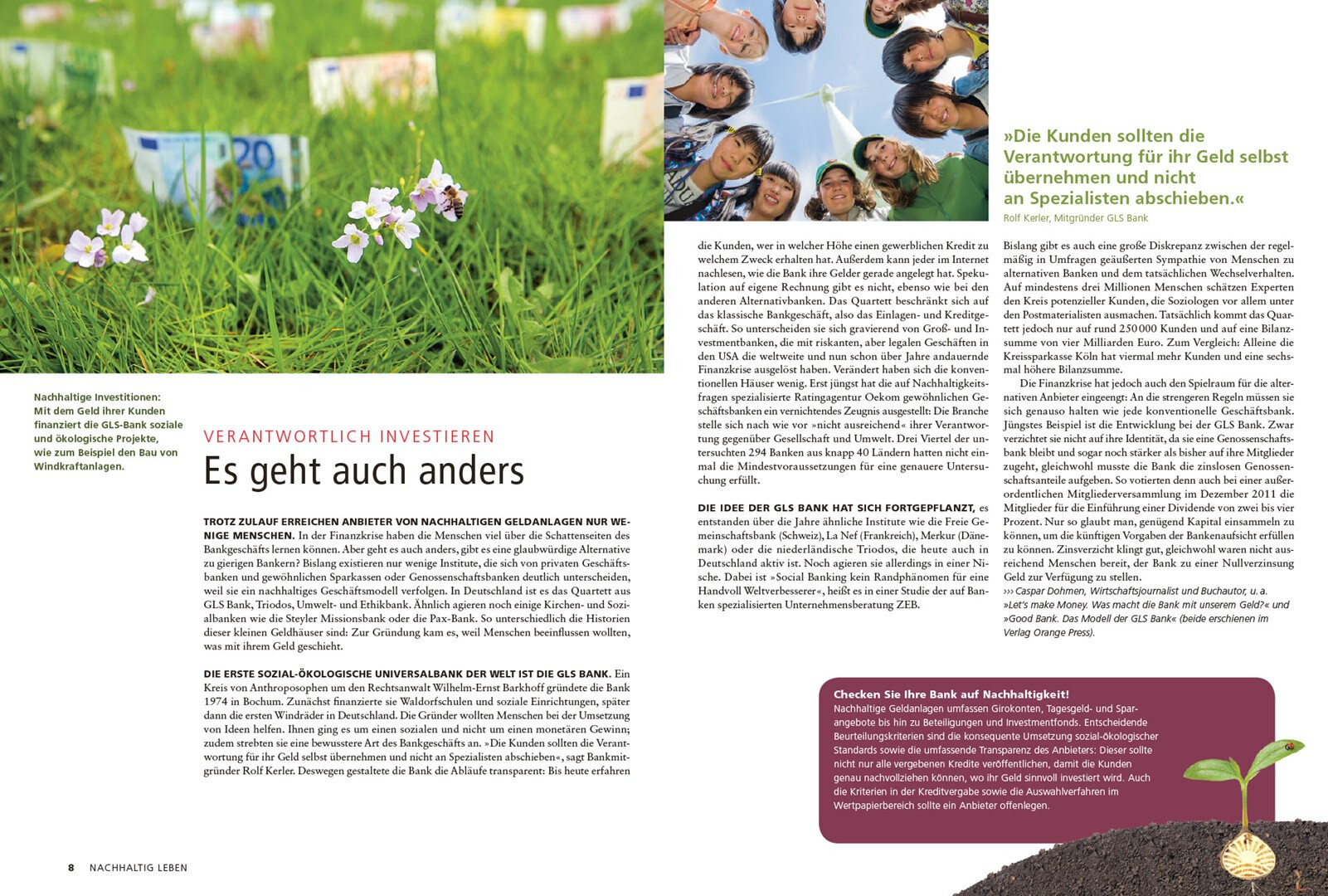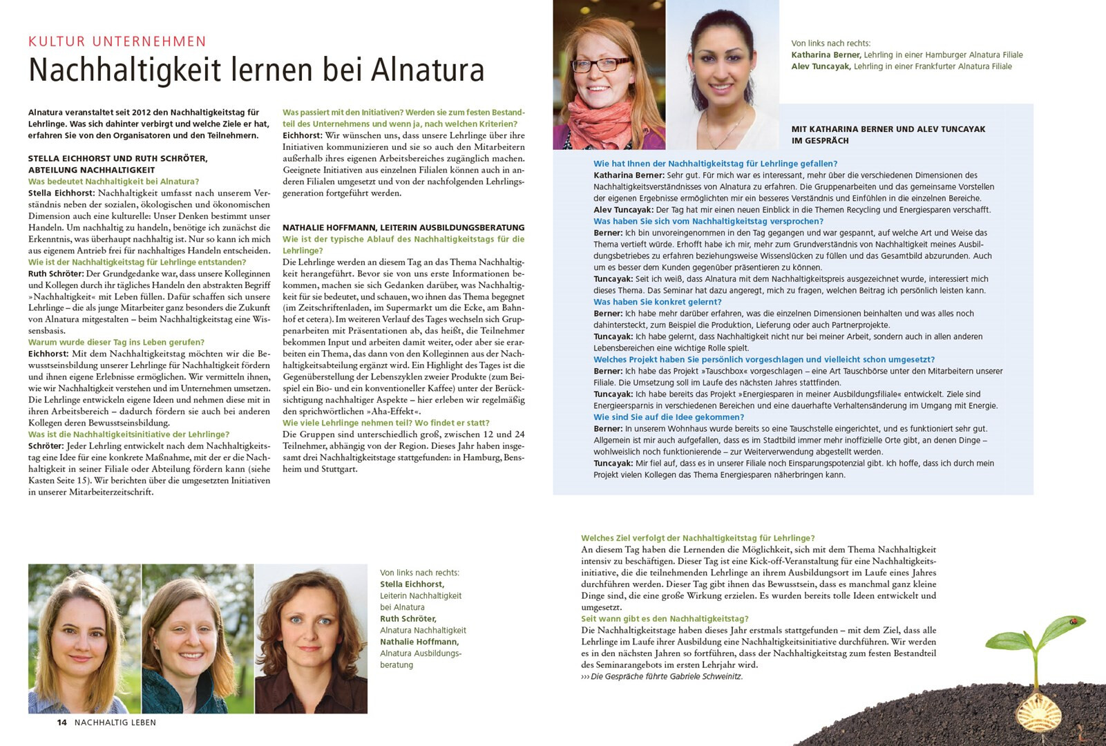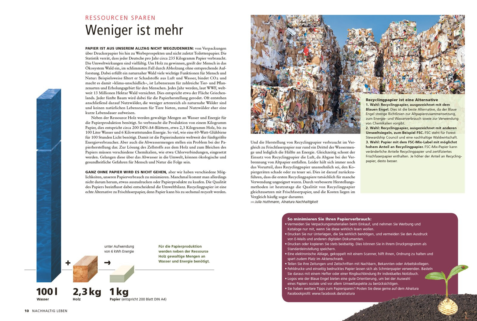 beihefter-gestaltung im rahmen des layouts des alnatura magazins. die ausgabe juni 2012 enthält einen 16-seitigen behefter mit relevanten themen zu nachhaltiger lebensweise. verlag und redaktion: mfk corporate publishing gmbh, darmstadt