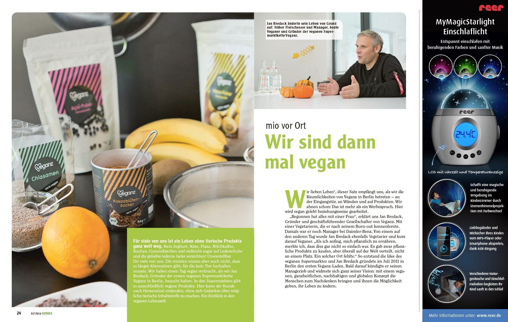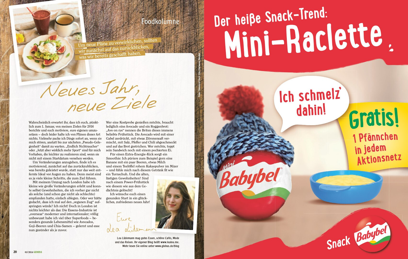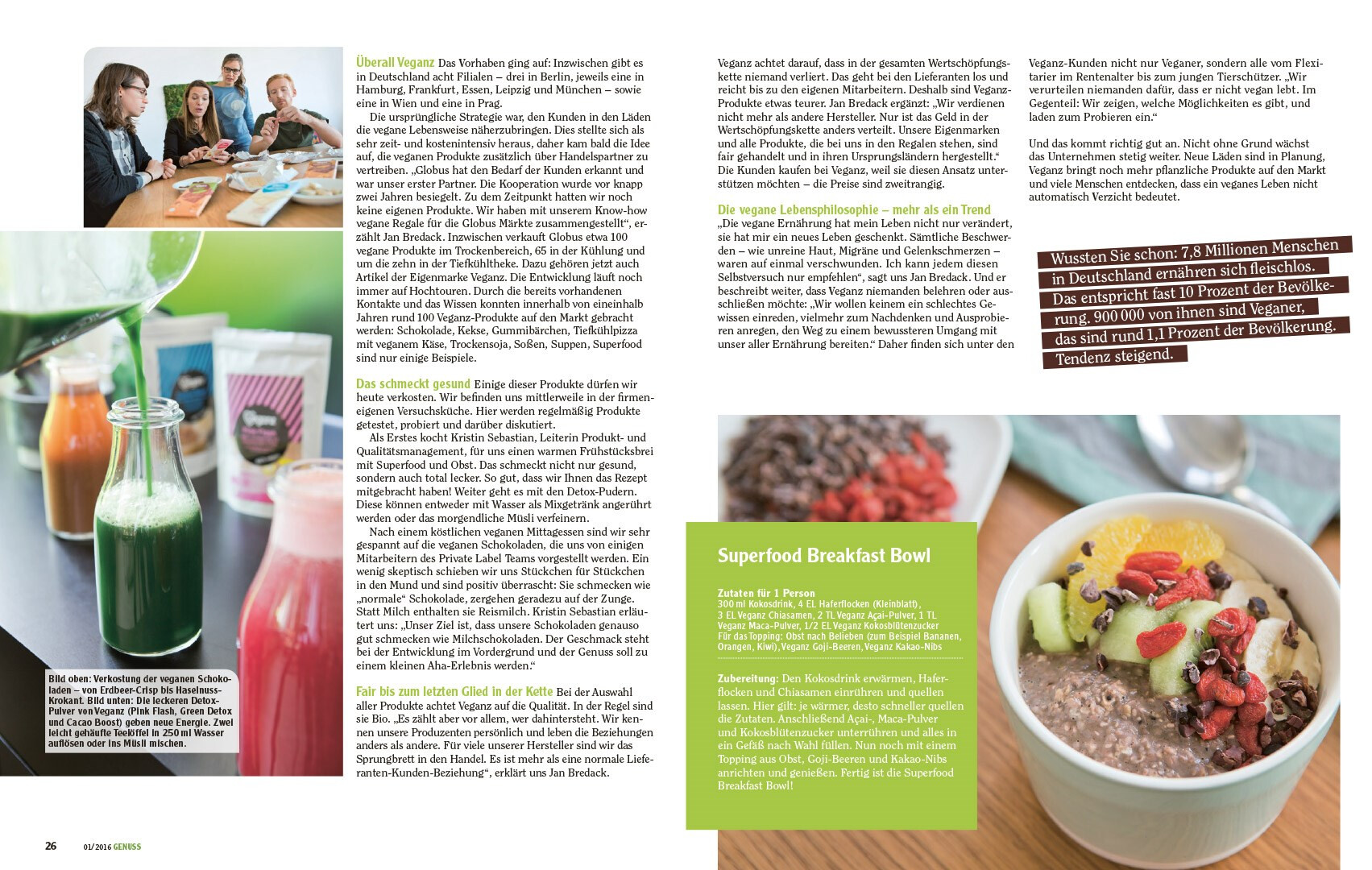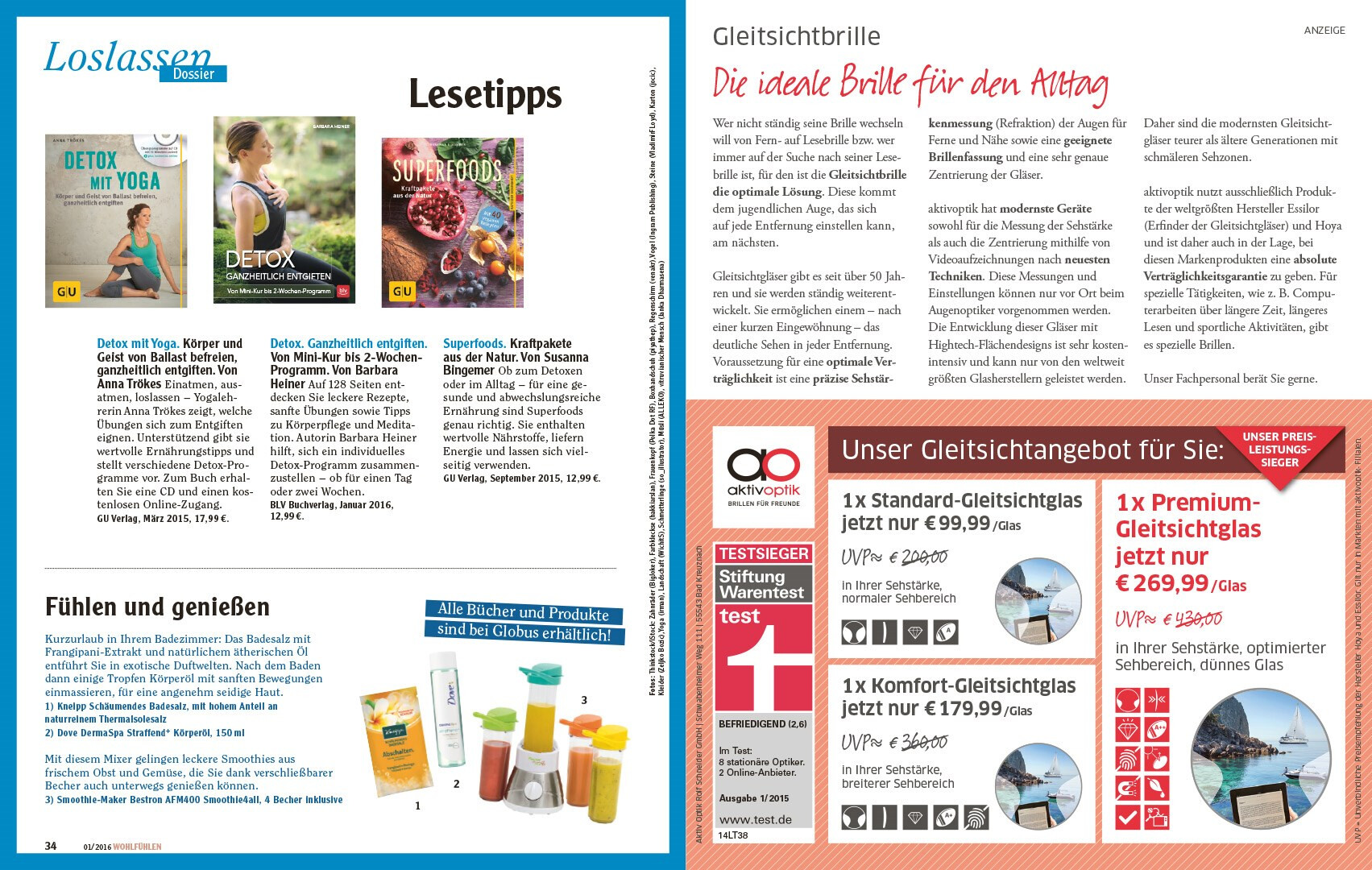layout des globus corporate-magazins »mio«, ausgabe januar 2016. das kundenmagazin beinhaltet angebote, saisonale rezepte, redaktionelle beiträge zu aktuellen themen und einblicke in das unternehmen. verlag und redaktion: mfk corporate publishing gmbh, darmstadt
