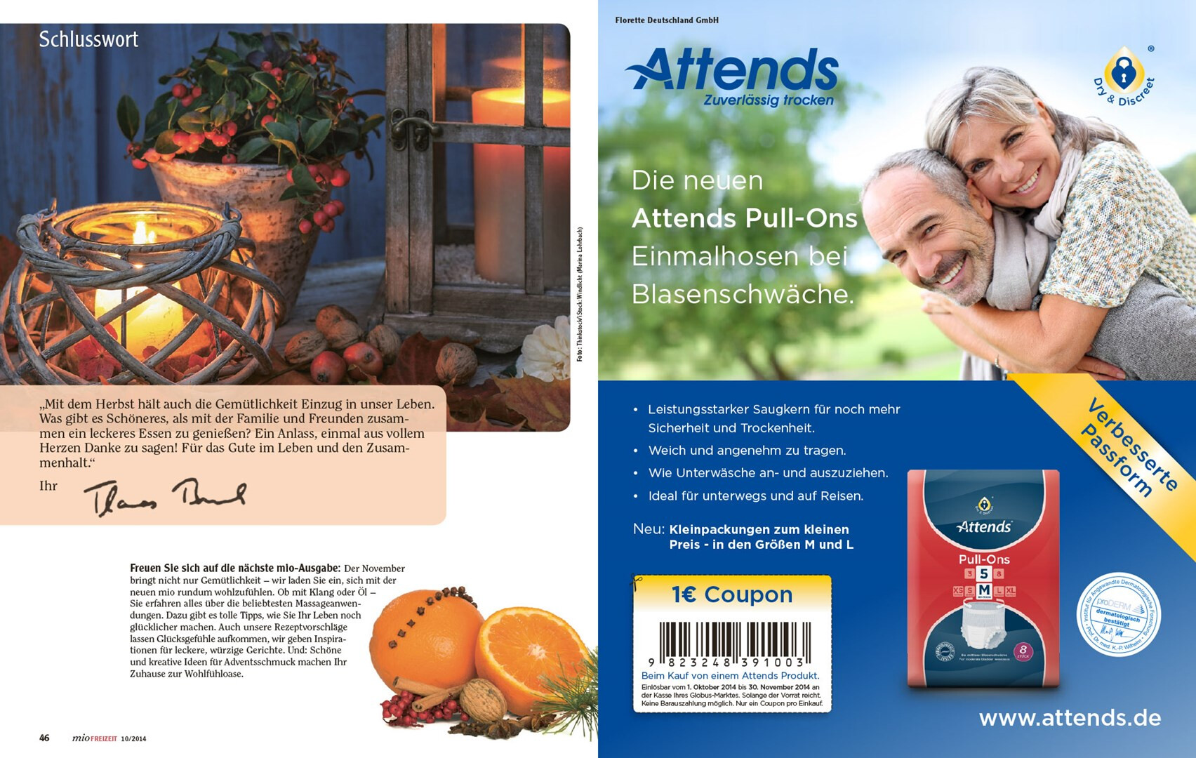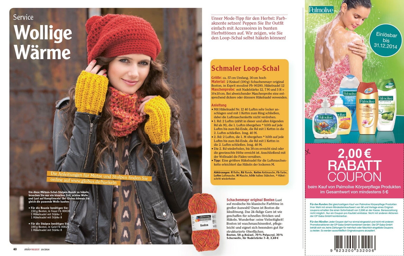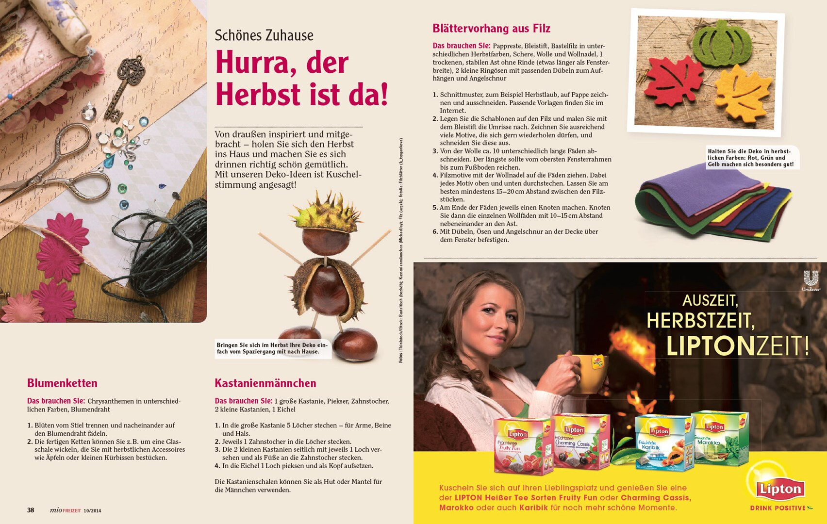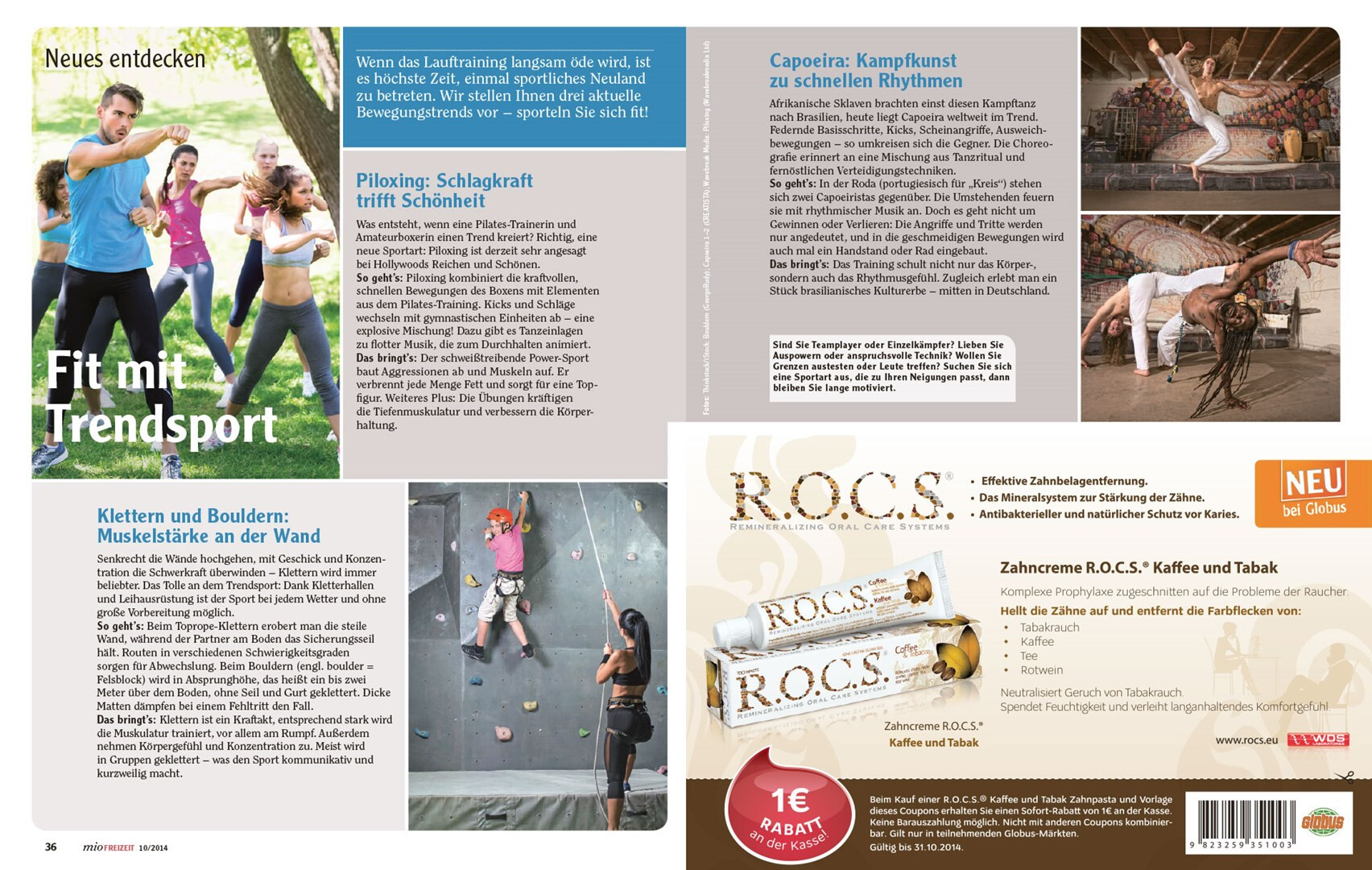 layout des globus corporate-magazins »mio«, ausgabe oktober 2014. das 48-seitige kundenmagazin beinhaltet angebote, saisonale rezepte, redaktionelle beiträge zu aktuellen themen und einblicke in das unternehmen. verlag und redaktion: mfk corporate publishing gmbh, darmstadt