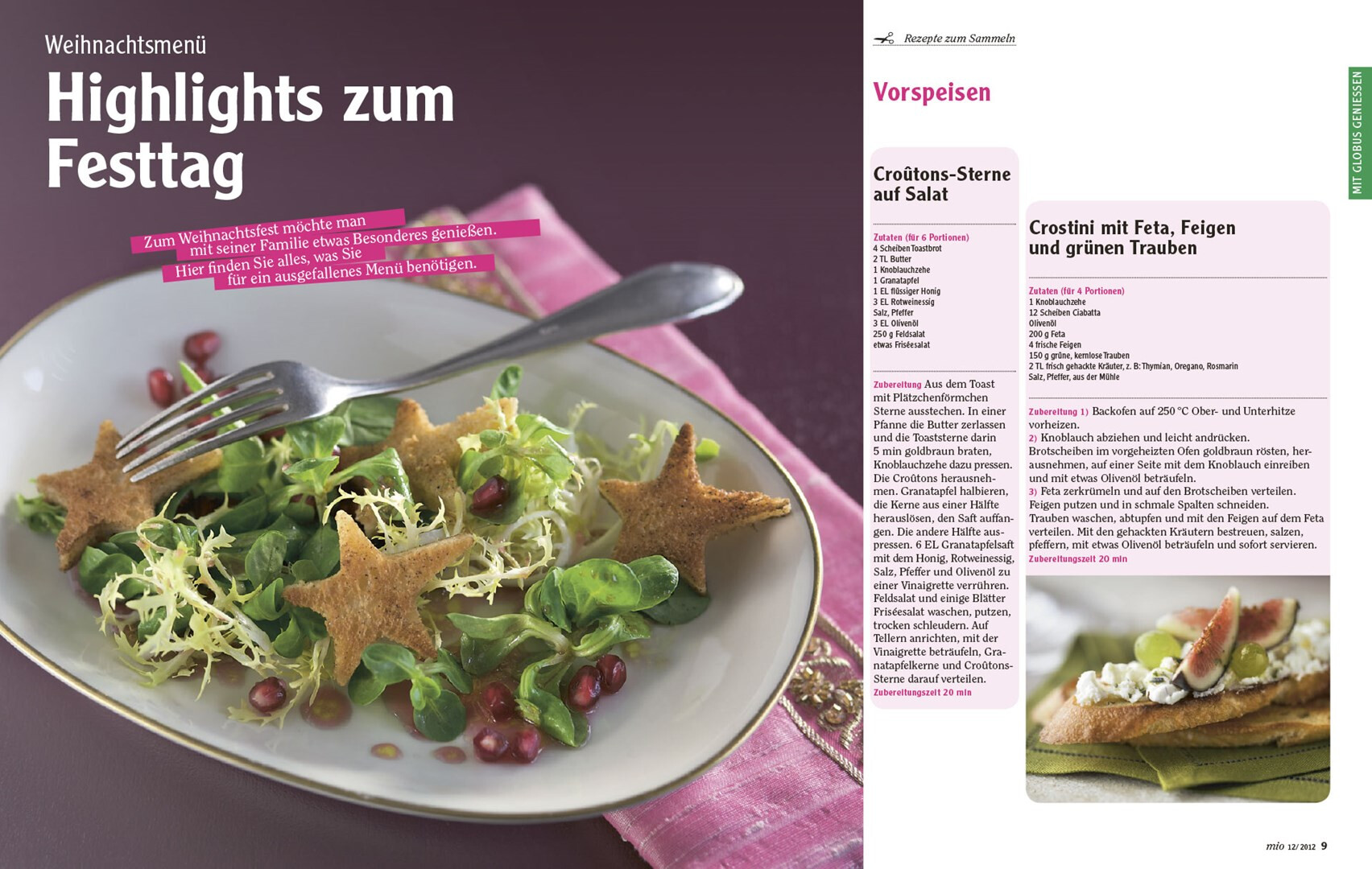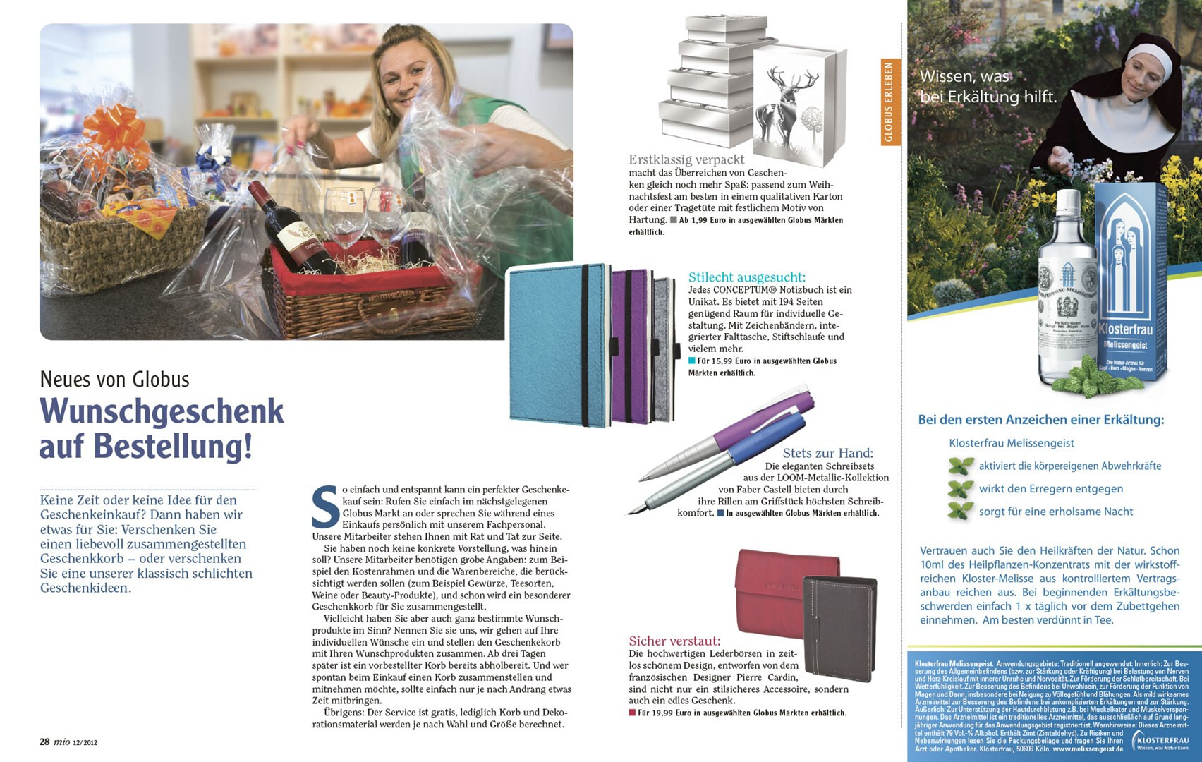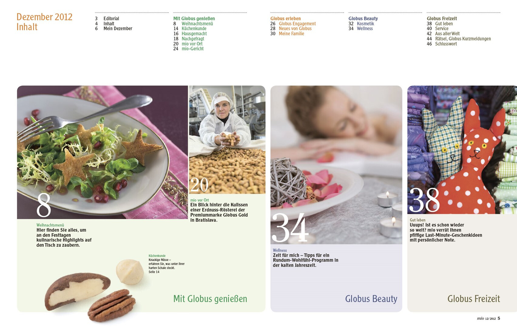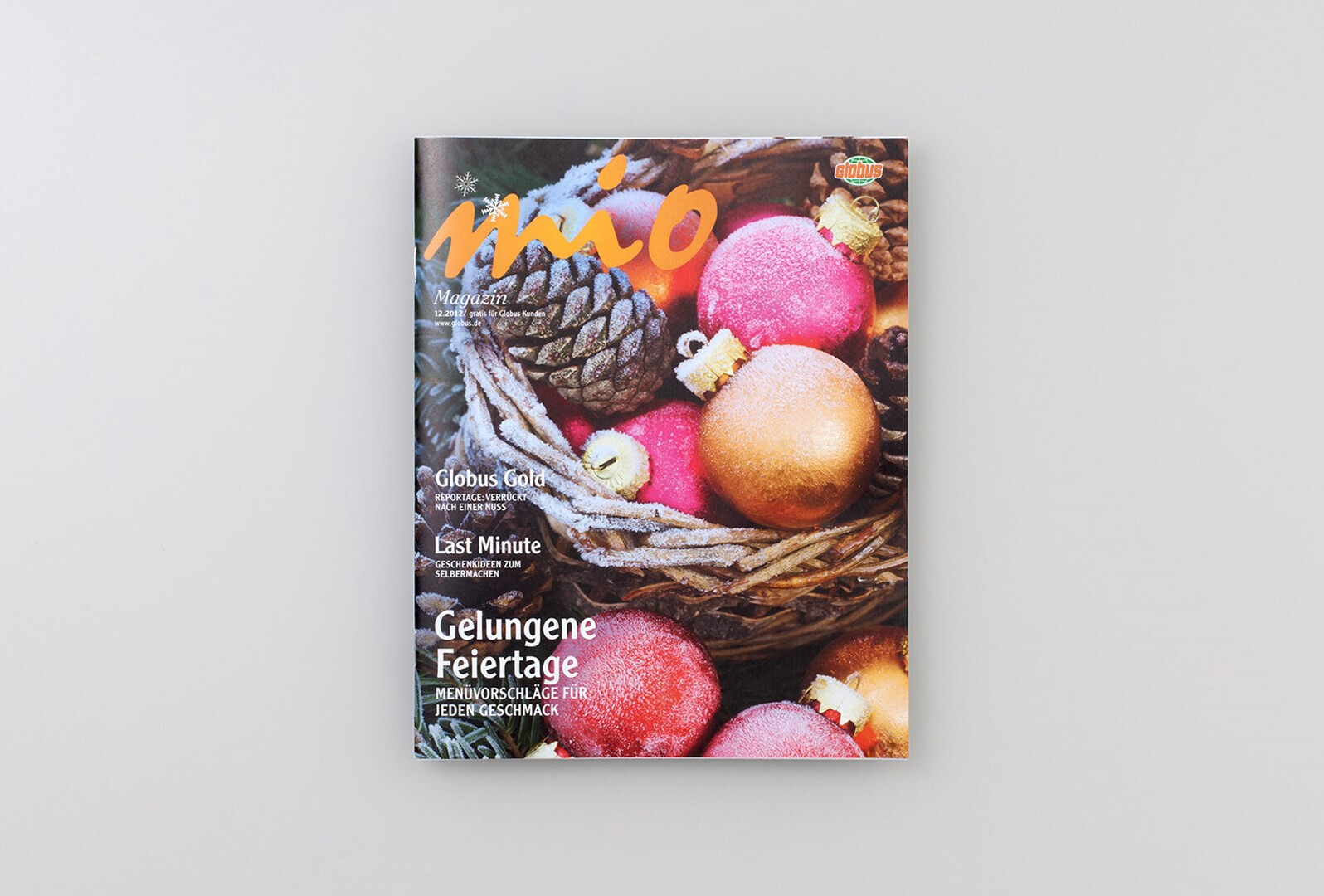 relaunch des globus corporate-magazins »mio«. das 48-seitige kundenmagazin beinhaltet angebote, saisonale rezepte, redaktionelle beiträge zu aktuellen themen und einblicke in das unternehmen. usus konzipiert struktur und design der »mio« neu, im dezember 2012 erscheint die erste ausgabe im veränderten gewand mit weihnachtsbeihefter. verlag und redaktion: mfk corporate publishing gmbh, darmstadt
