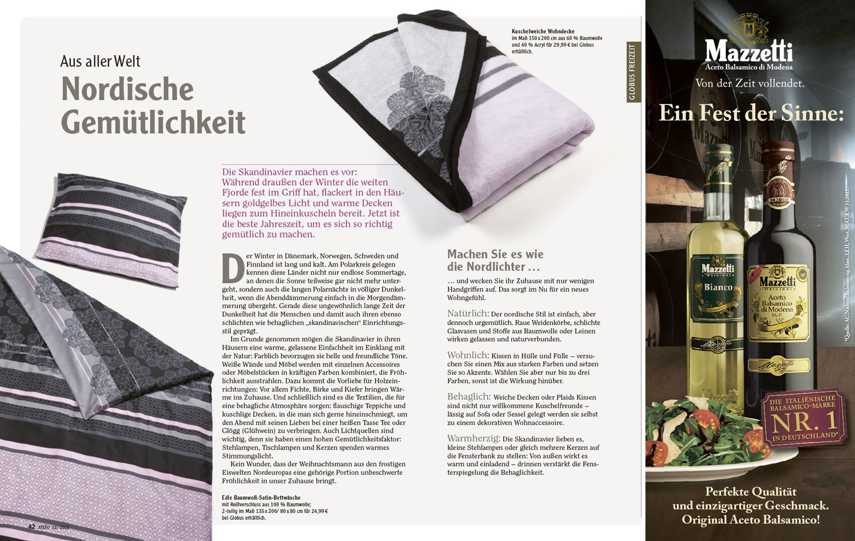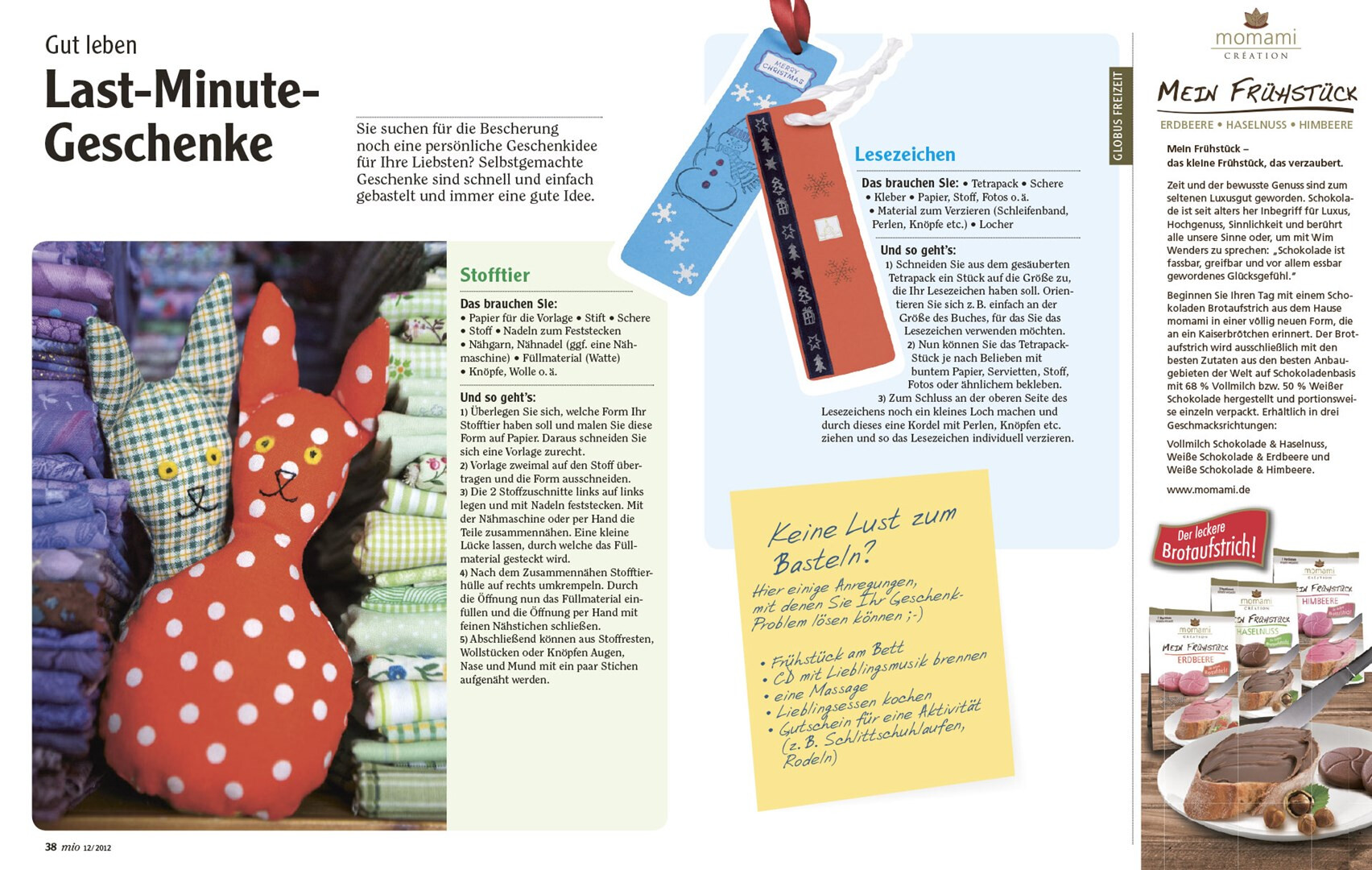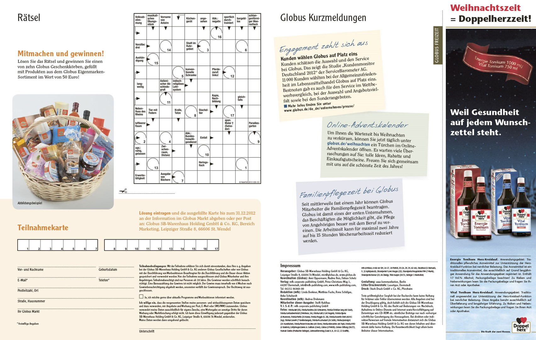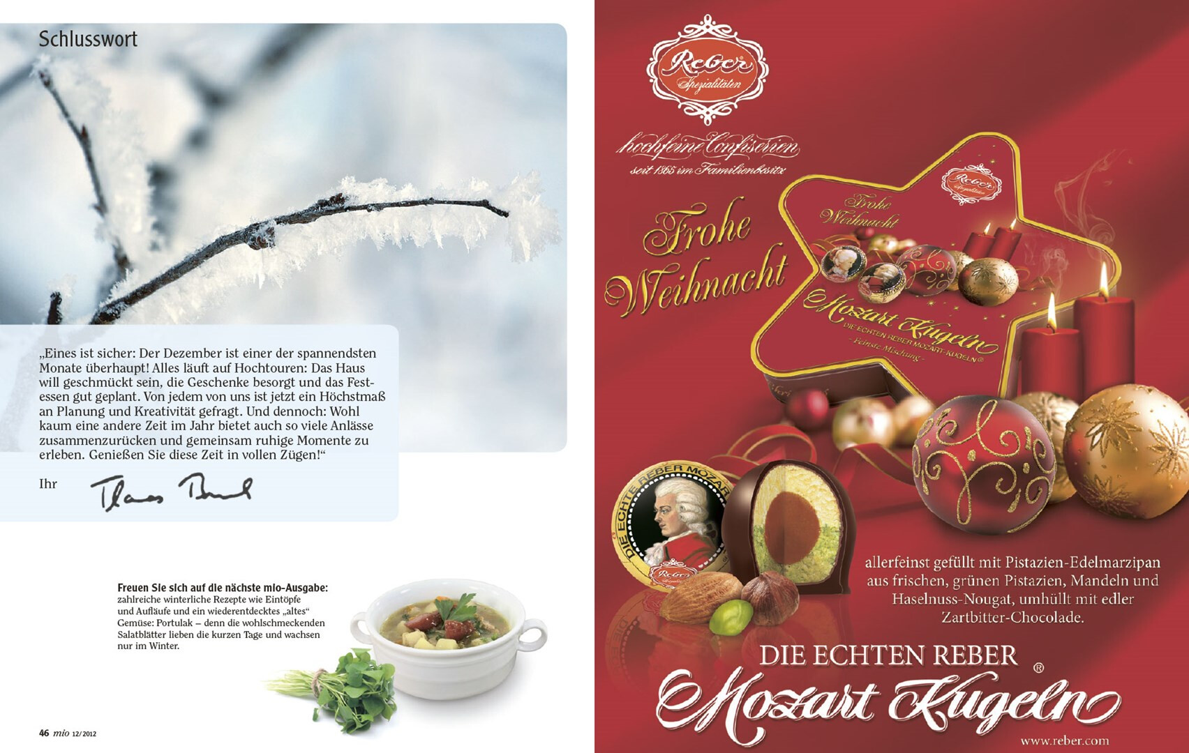 relaunch des globus corporate-magazins »mio«. das 48-seitige kundenmagazin beinhaltet angebote, saisonale rezepte, redaktionelle beiträge zu aktuellen themen und einblicke in das unternehmen. usus konzipiert struktur und design der »mio« neu, im dezember 2012 erscheint die erste ausgabe im veränderten gewand mit weihnachtsbeihefter. verlag und redaktion: mfk corporate publishing gmbh, darmstadt