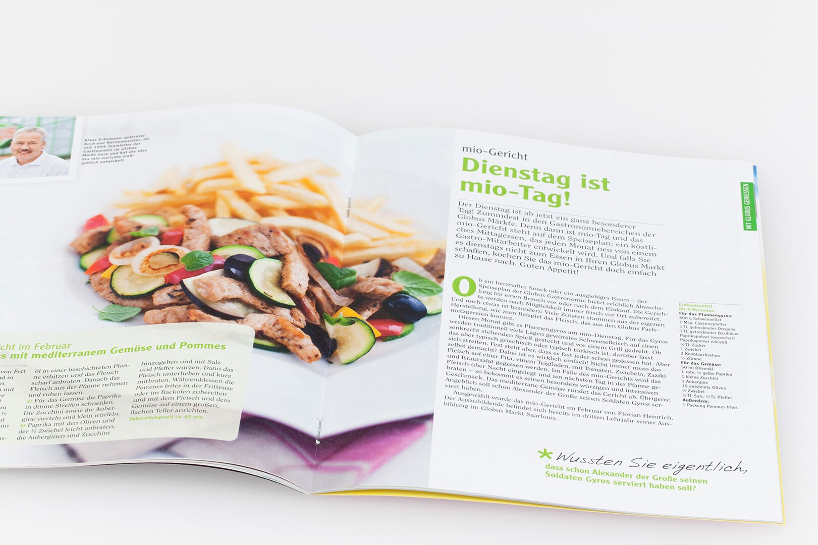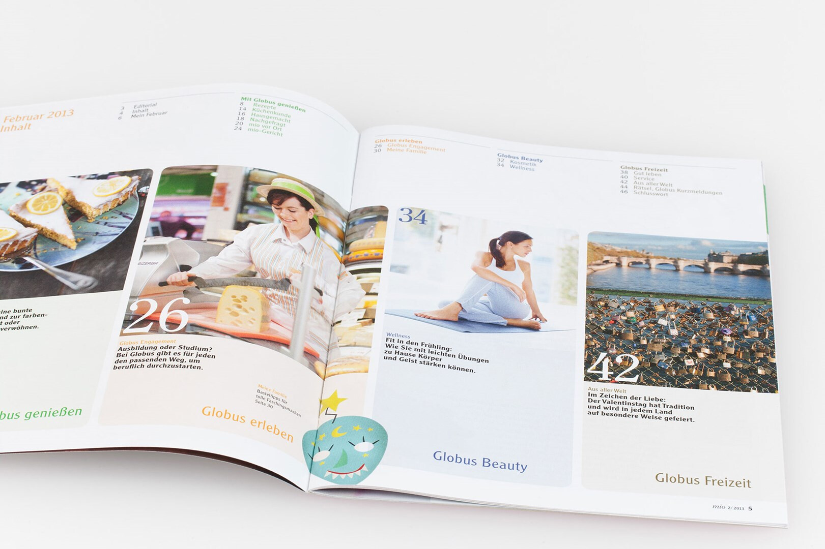 relaunch des globus corporate-magazins »mio«. das 48-seitige kundenmagazin beinhaltet angebote, saisonale rezepte, redaktionelle beiträge zu aktuellen themen und einblicke in das unternehmen. usus konzipiert struktur und design der »mio« neu, seit dezember 2012 erscheint die erste ausgabe im veränderten gewand. verlag und redaktion: mfk corporate publishing gmbh, darmstadt