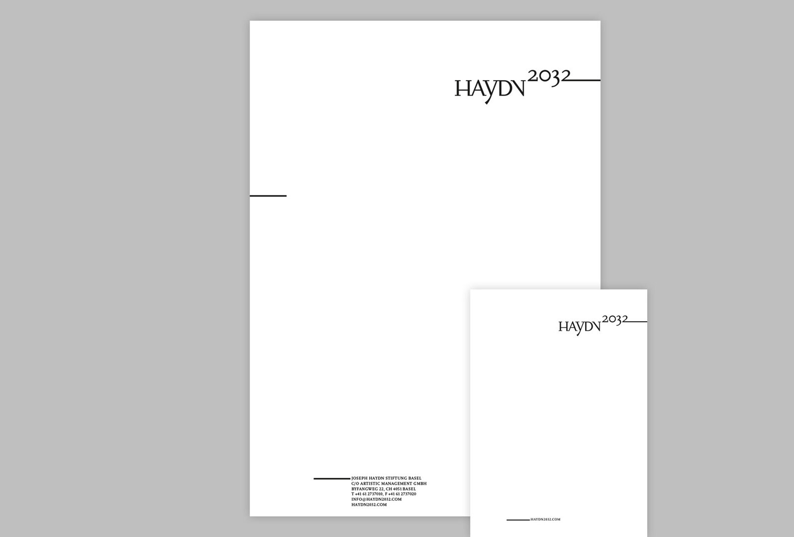 corporate design »haydn2032« für die joseph haydn stiftung basel. in dem langzeitprojekt werden alle 108 haydn-sinfonien bis 2032 neu eingespielt und zur aufführung gebracht. in diesem zuge gestaltet usus die geschäftsausstattung. 2014