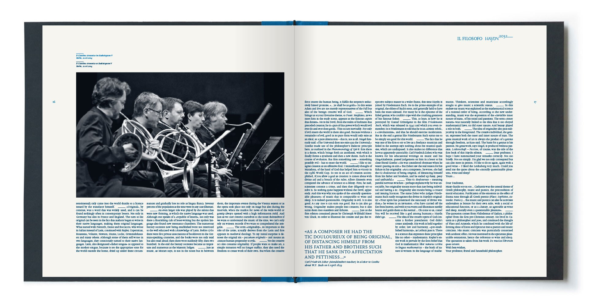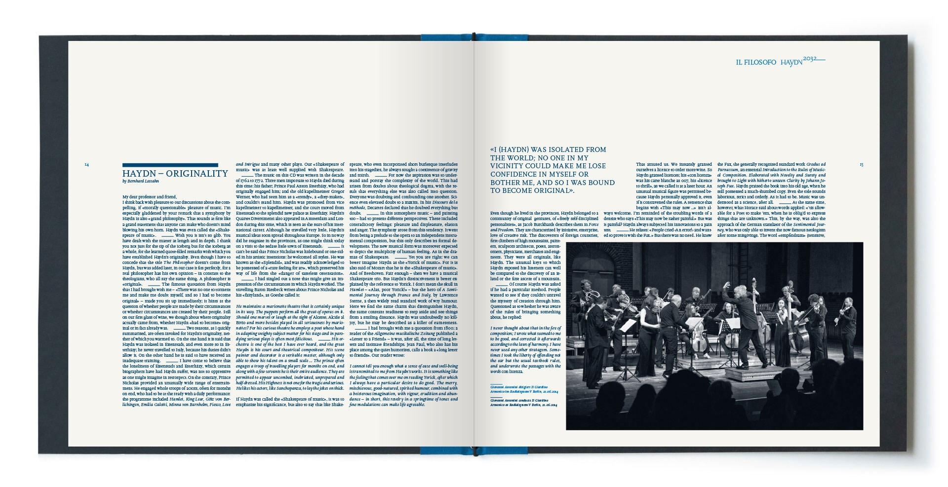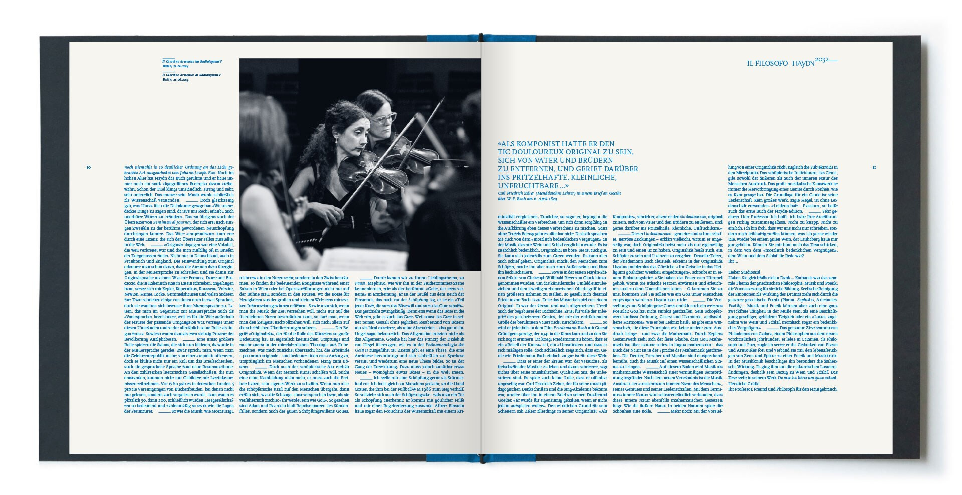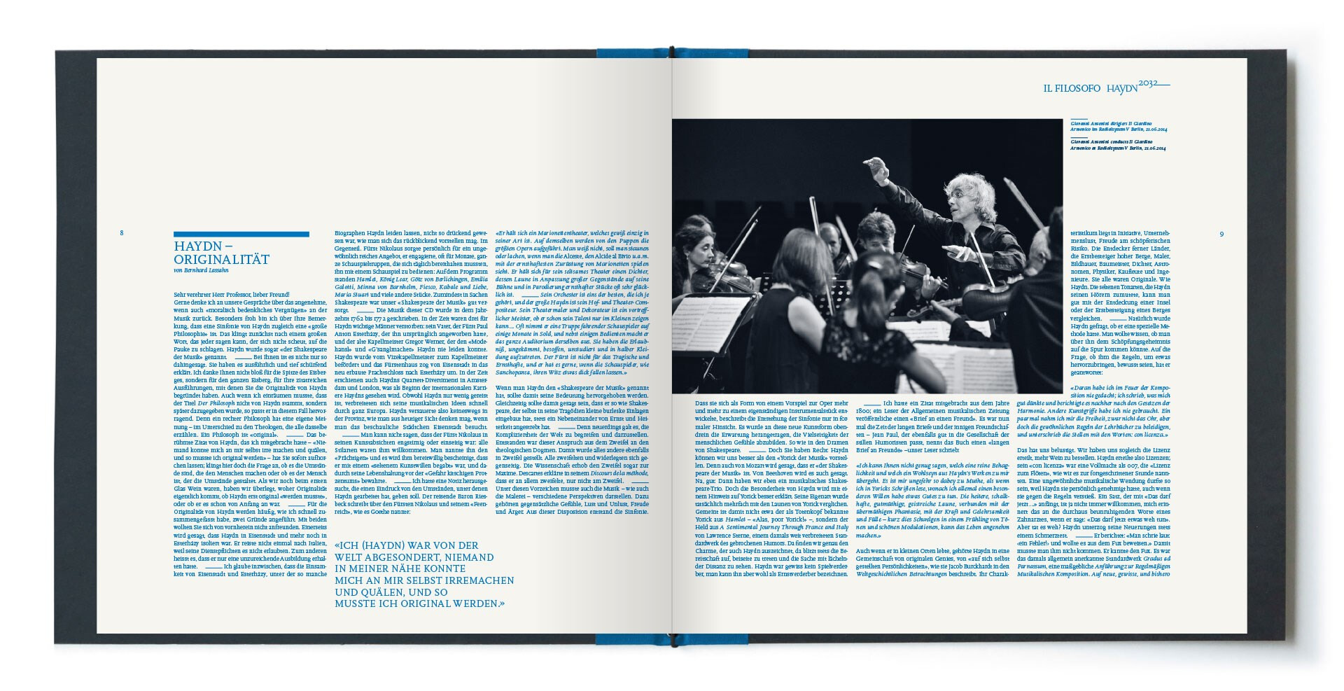 entwicklung einer hard-cover-mappe als corporate-flagschiff. in dem projekt haydn2032 werden alle 108 haydn-sinfonien bis 2032 neu eingespielt und erscheinen thematisch gegliedert als hochwertige editionen mit essays, interviews und exklusiven fotoserien von renommierten magnum-fotografen. edition no.2 »il filosofo«: mit fotos von chris steele perkins, magnum photos, und essay von bernhard lassahn. 2015