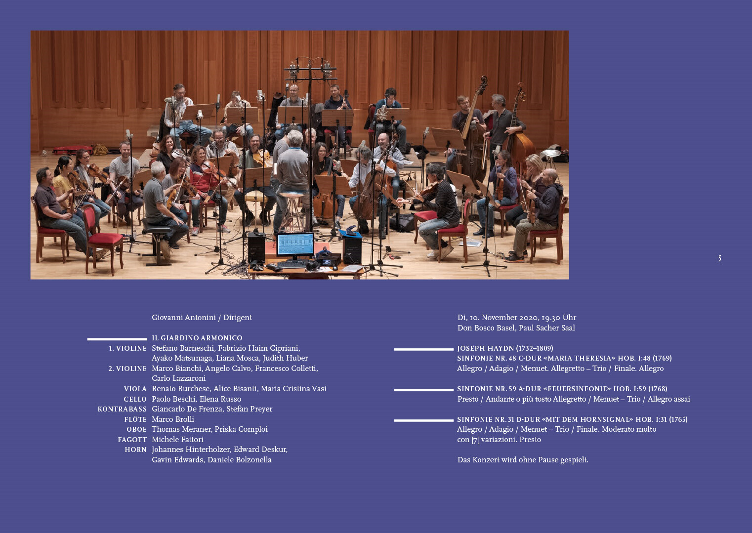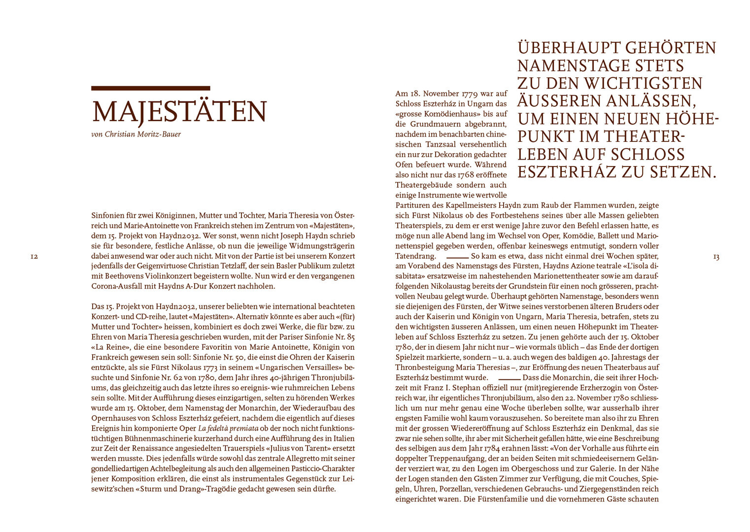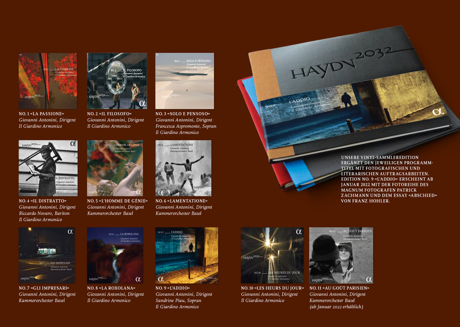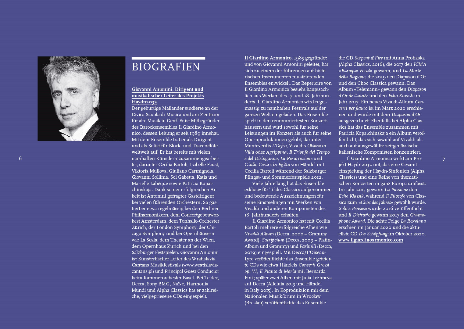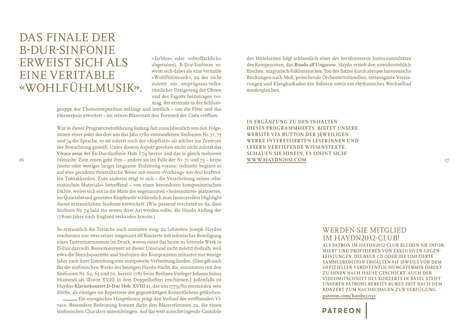 programmhefte im rahmen des corporate designs für das projekt haydn2032. in dem projekt werden alle 108 haydn-sinfonien bis 2032 neu eingespielt und erscheinen thematisch gegliedert als hochwertige editionen mit essays, interviews und exklusiven fotoserien von renommierten magnum-fotografen.
