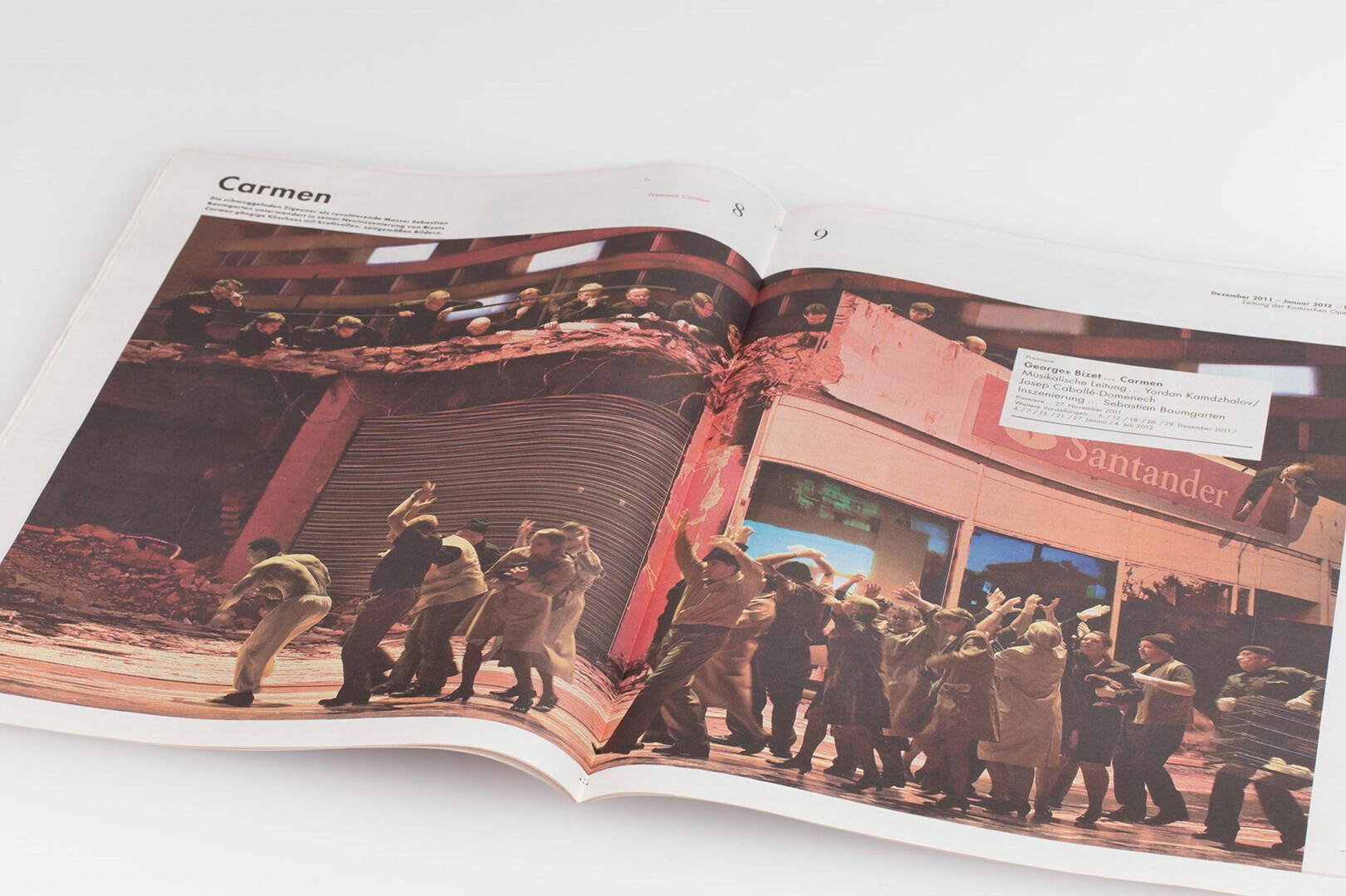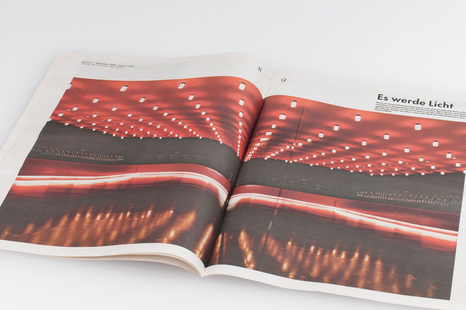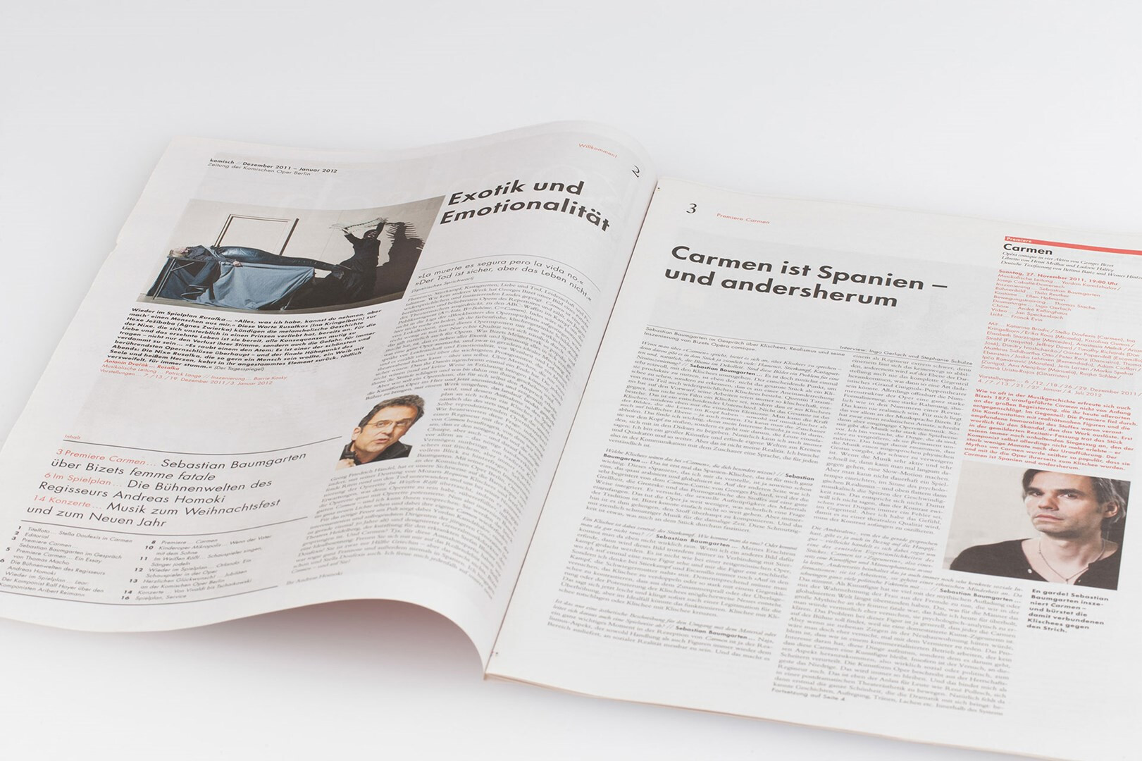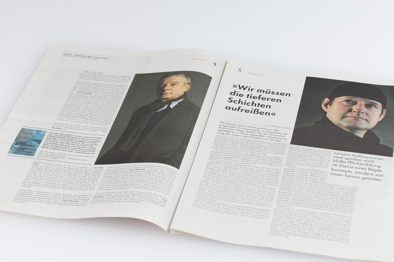 layout der zeitung »komisch«. in der monatlichen zeitung informiert die komische oper berlin ab 2003 über ihr programm und liefert hintergründe zu werken, inszenierungen und künstlern. ab 2008 erscheint die »komisch« zweimonatlich als beileger im berliner tagesspiegel. 2003–12
