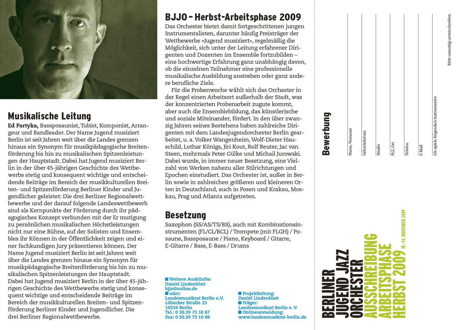 flyer-gestaltung im rahmen eines corporate designs für den landesmusikrat berlin. usus entwickelt ein modulares gestaltungskonzept und templates zur umsetzung durch den kunden. 2009