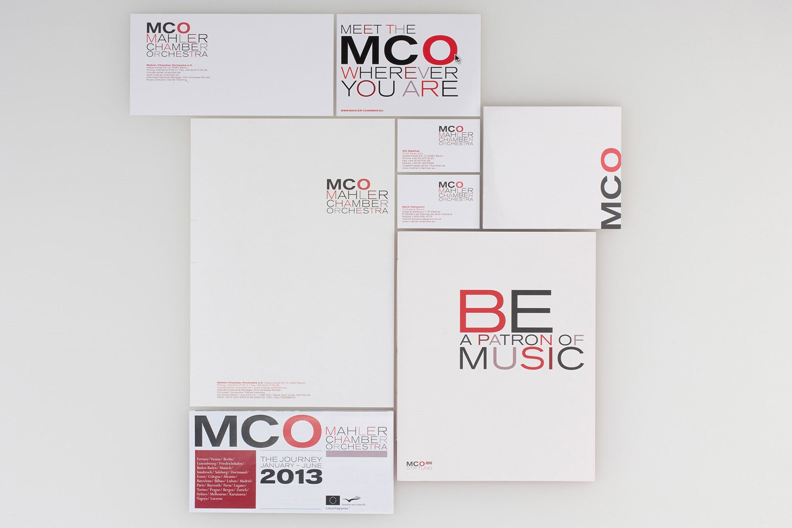das corporate design des mahler chamber orchestra hat seinen ausgangspunkt in der wortmarke, die das typografische programm vorgibt, mit dem sämtliche medien des orchesters durchgestaltet werden. starke position nimmt dabei die akzidenz grotesk in ihren weit laufenden schnitten ein. 2007