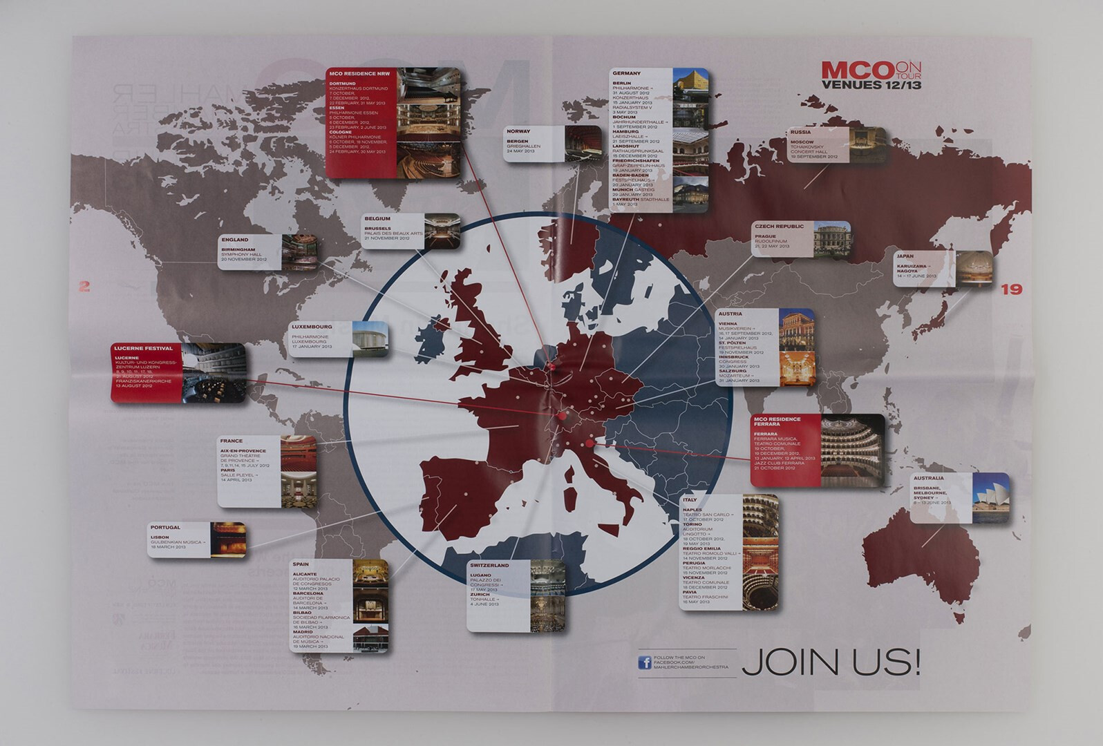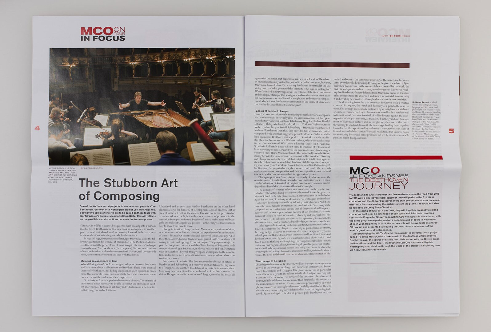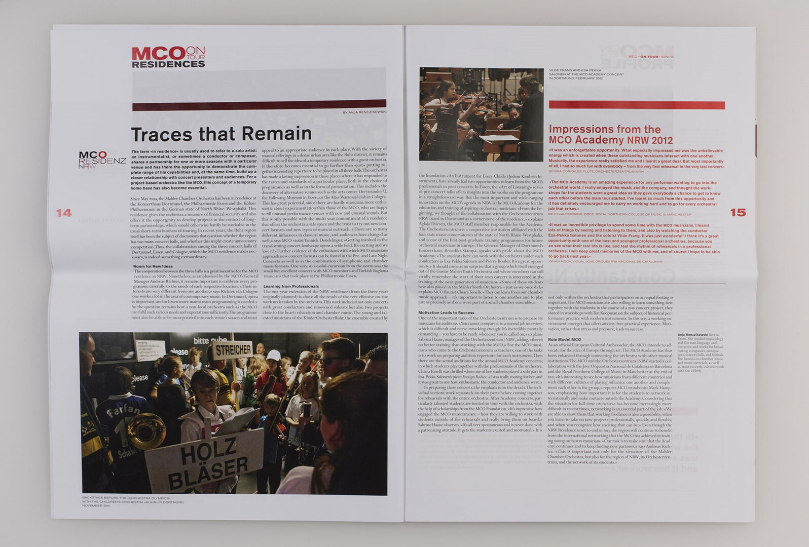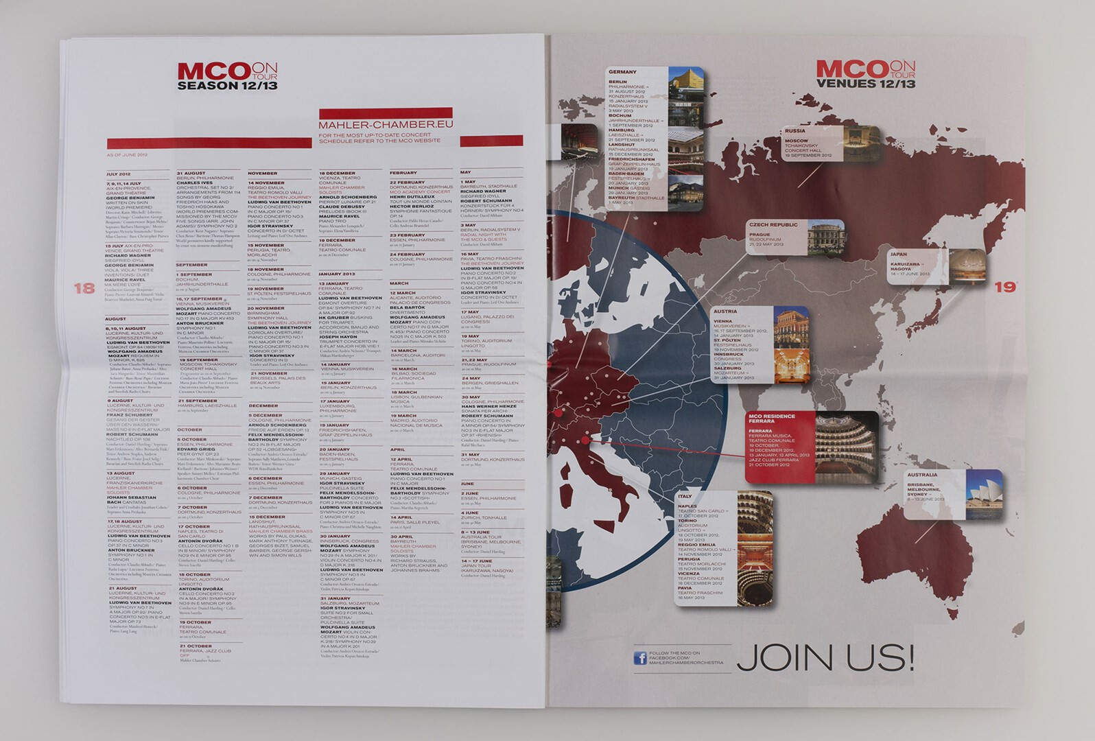 »on tour« heißt das großformatige, mehrsprachige hauptmedium des mahler chamber orchestra, das usus im rahmen des corporate designs konzipiert und von 2007 bis 2013 gestaltet. programm-, musik- und kulturbeiträge, orchester-plaudereien, tour-alltag – das sind die themen, mit denen das mco seinem publikum fernab des orchesterpodiums begegnet. ausgabe saison 2012/13