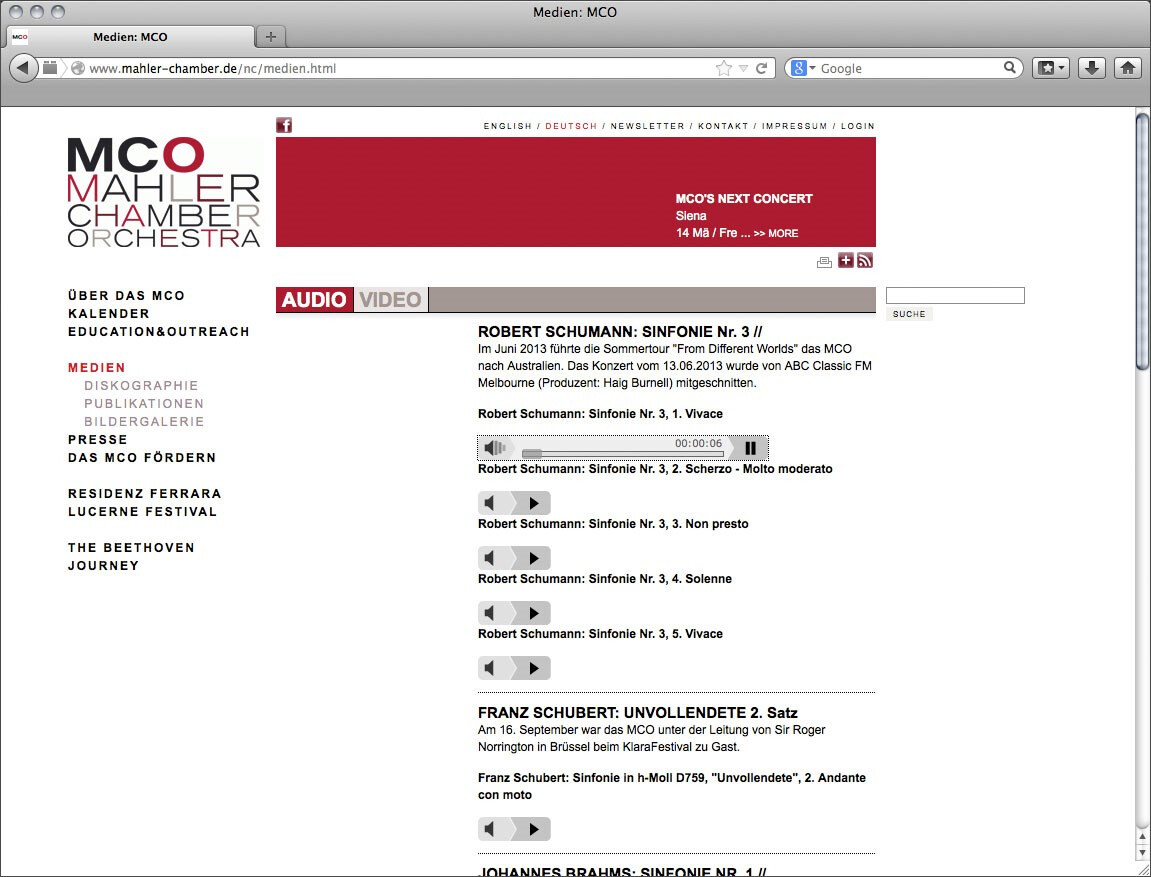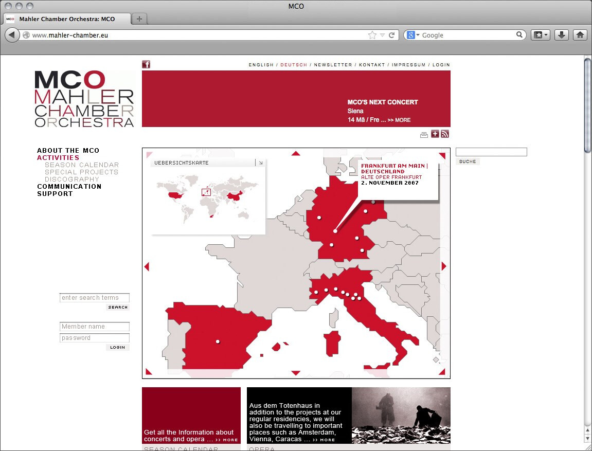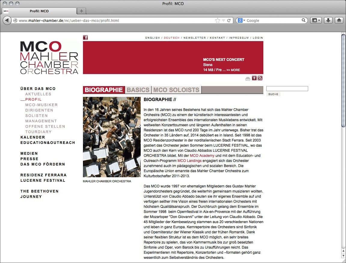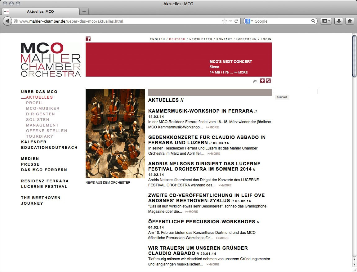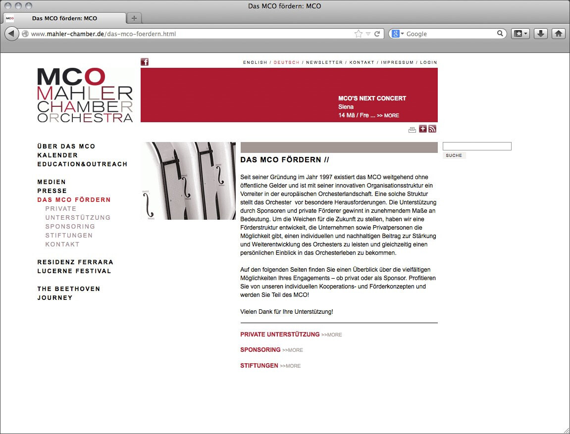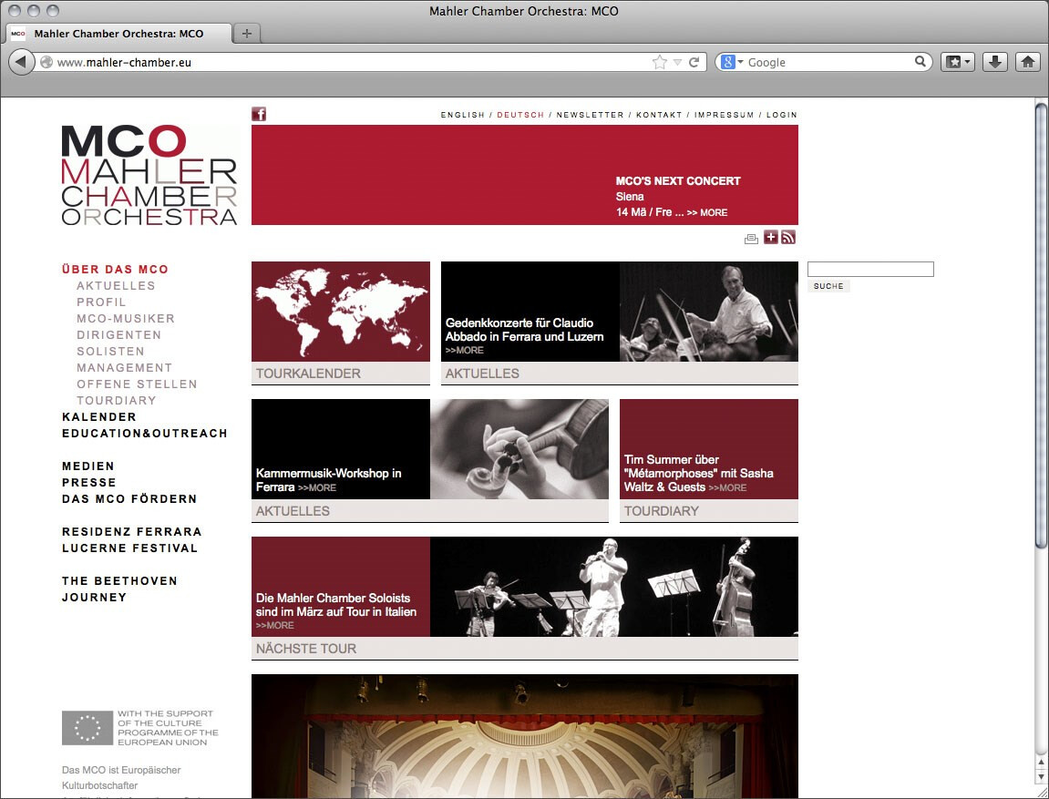 im rahmen der entwicklung des corporate designs für das mahler chamber orchestra konzipiert usus die website des orchesters: mahler-chamber.eu. 2008-14