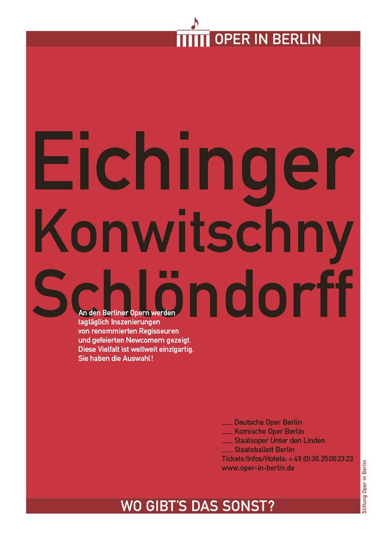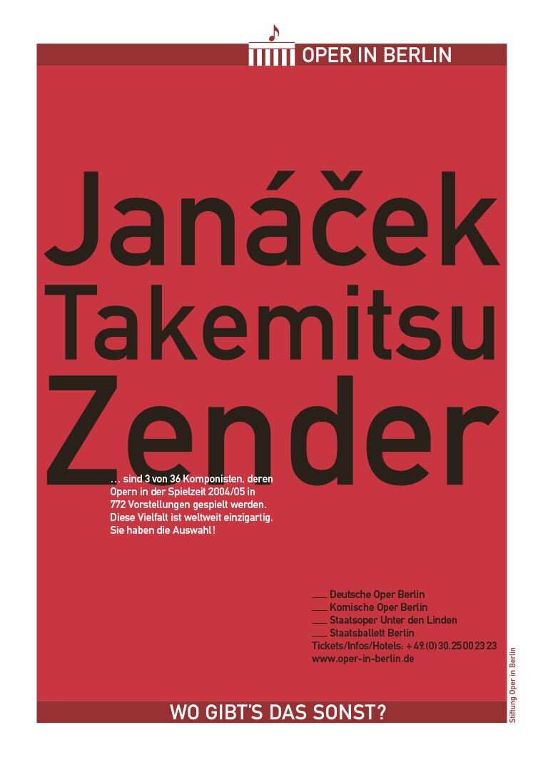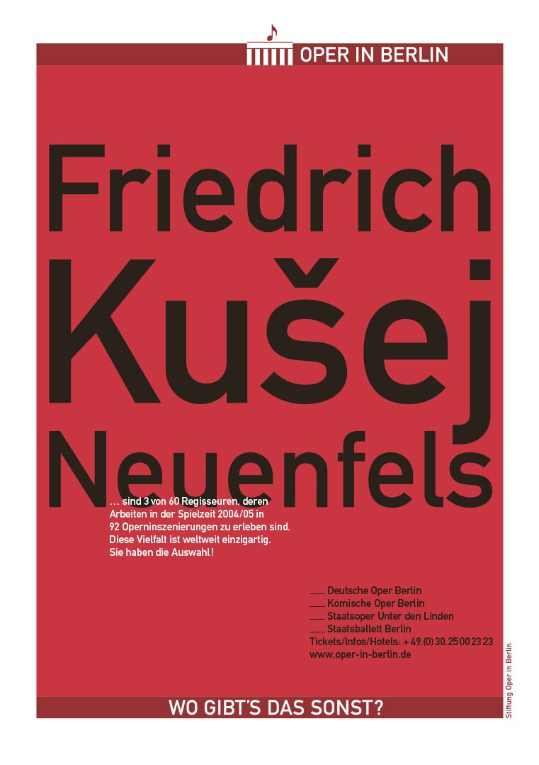 oper in berlin: eine »kulturmaschine« besonderer art. usus entwickelt ein anzeigenkonzept, das die faszinierende vielfalt mit namen und zahlen auf den punkt bringt. auswahl von anzeigen-motiven der ersten generation. 2004