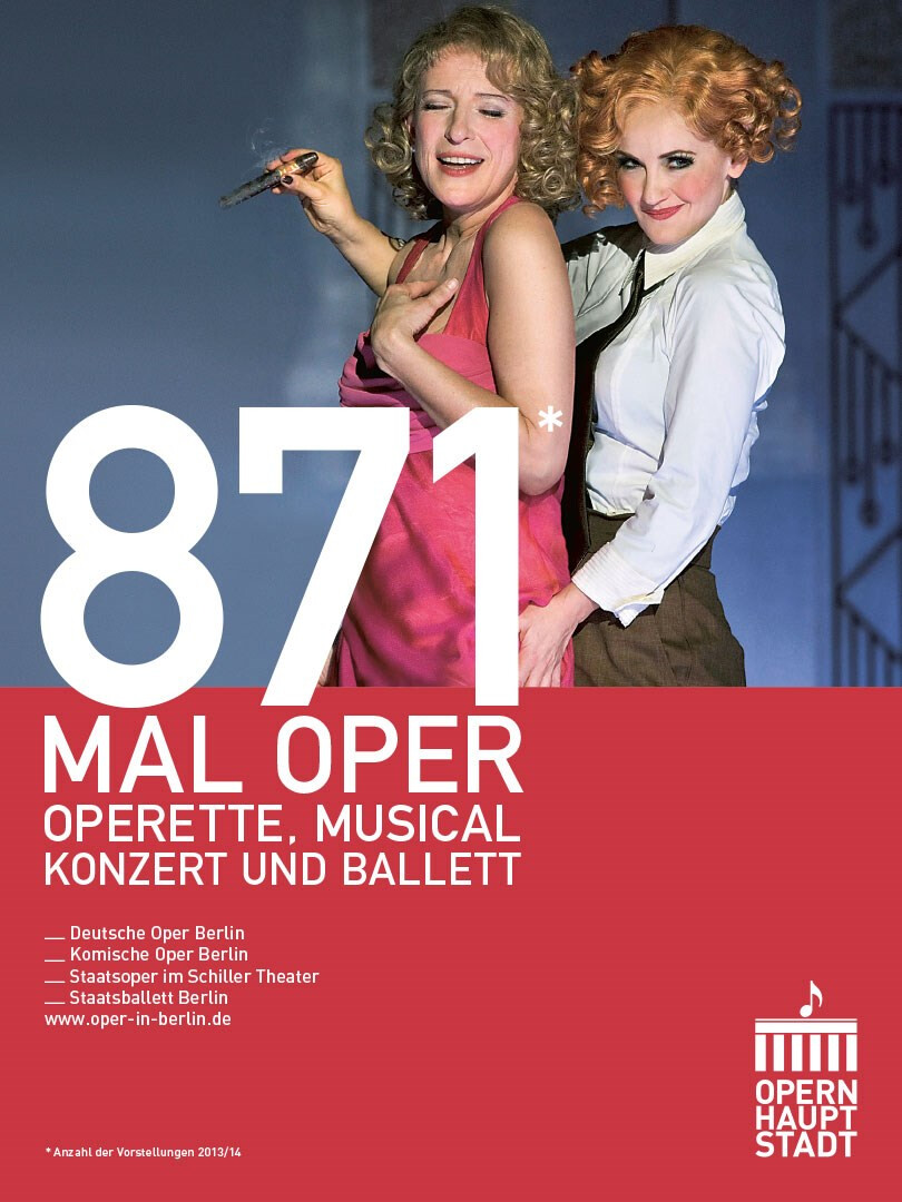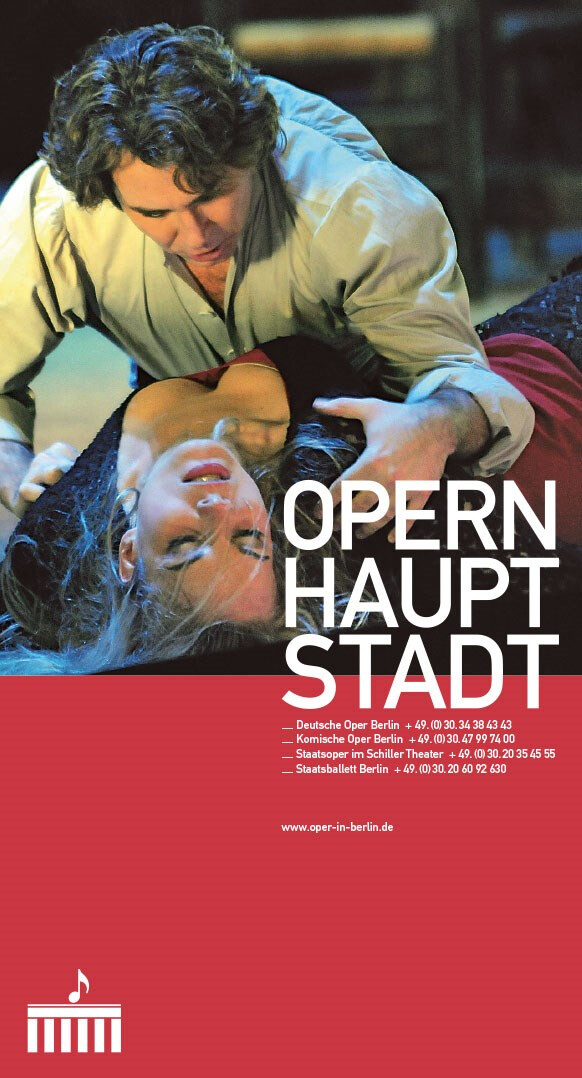 oper in berlin: eine »kulturmaschine« besonderer art. usus überarbeitet das anzeigenkonzept, das die faszinierende vielfalt der »opernhauptstadt« mit namen und zahlen auf den punkt bringt. auswahl von anzeigen-motiven der dritten generation. 2006-13