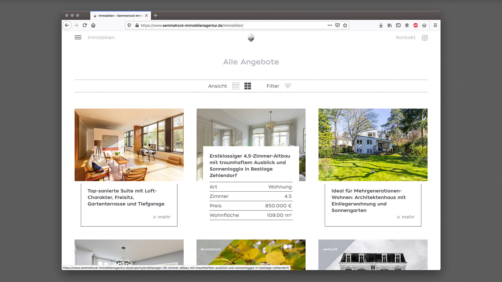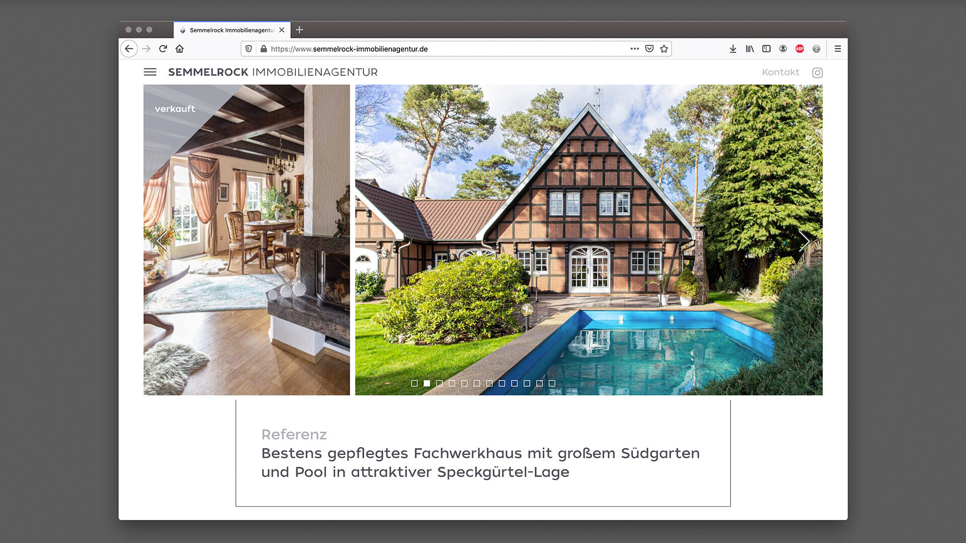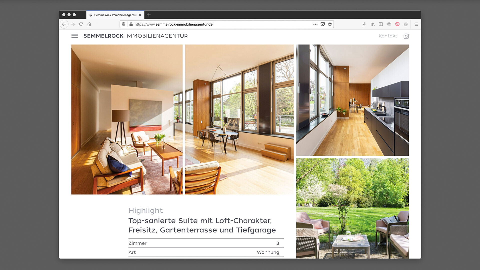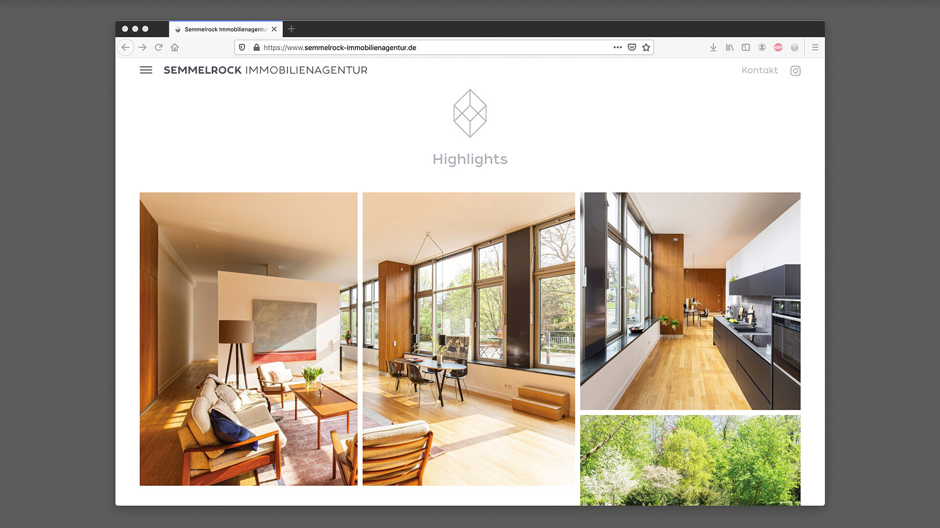 website der semmelrock immobilienagentur eines umfangreichen faceliftings: klare gestaltung in farbe, typografie und raster, die der hochwertigkeit der immobilienvermarktung gerecht wird. programmierung: ilya shabanov, 2021