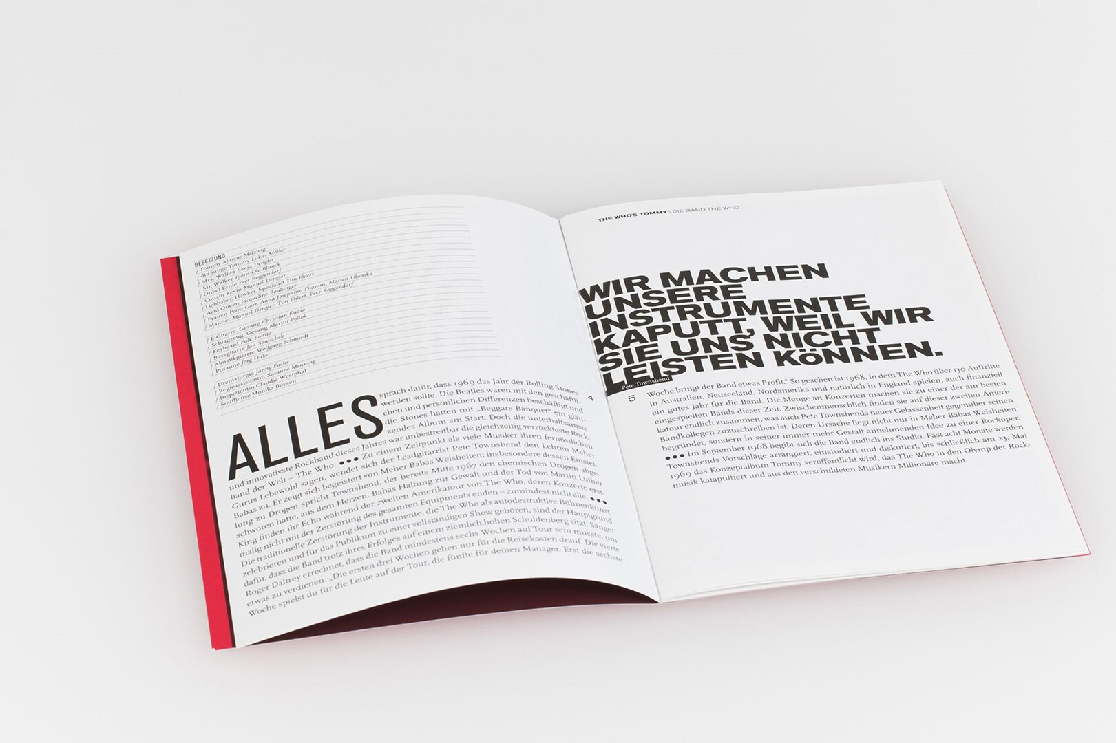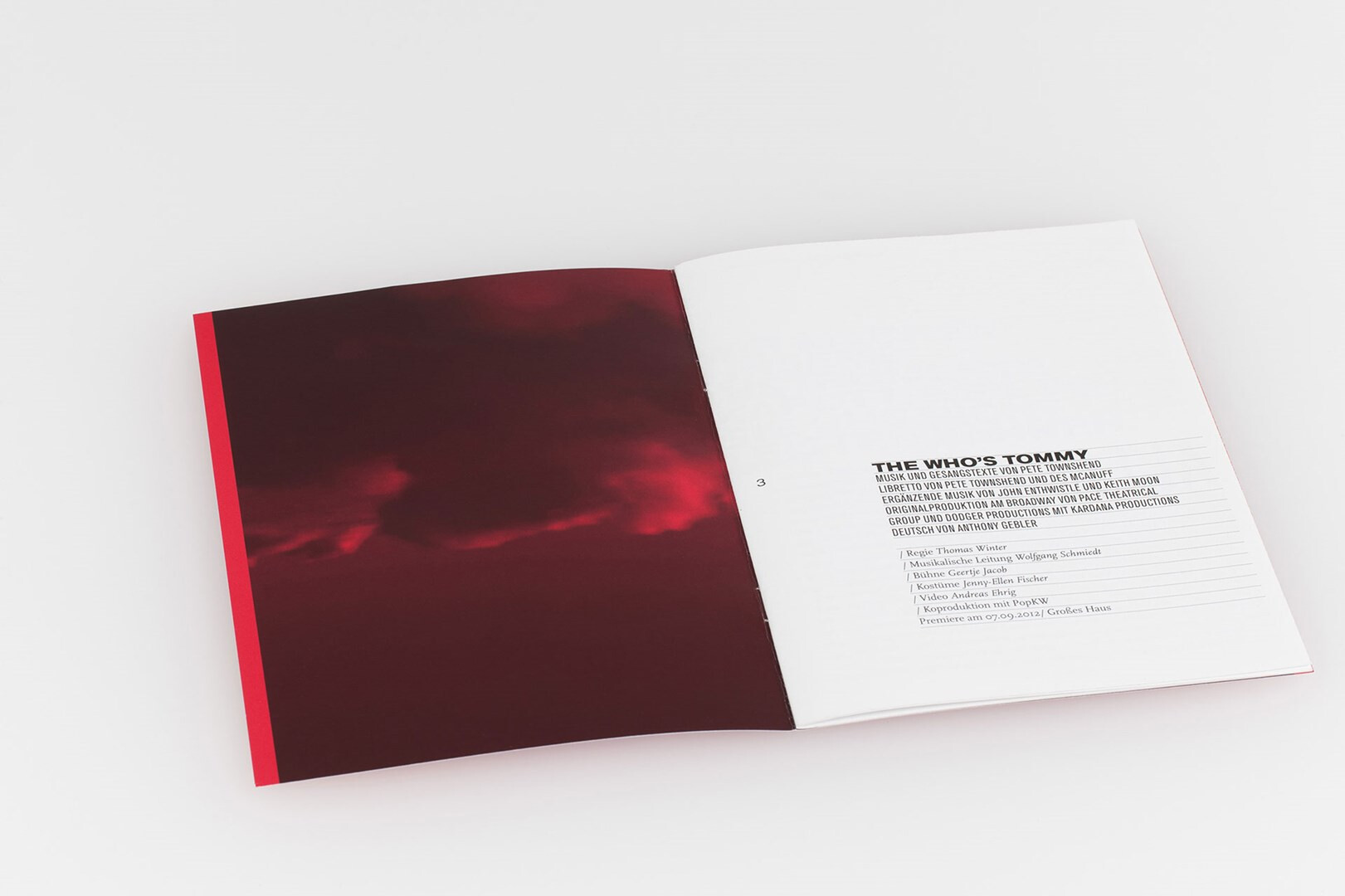 corporate design maßnahme: konzeption der programmhefte zur saison 2012/13. usus entwickelt ein struktur- und layoutsystem, das es der darmaturgie und hausgrafik des volkstheaters ermöglicht, mit definierten gestaltungsregeln und inhaltlich sinnvollen zäsuren eigenständige programmhefte zu erstellen. das layout der inszenierung »tommy« wird zum ersten »musterheft«. 2012