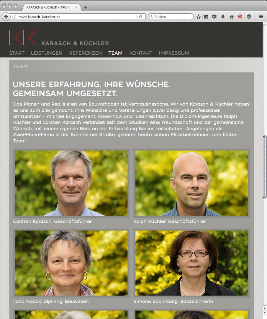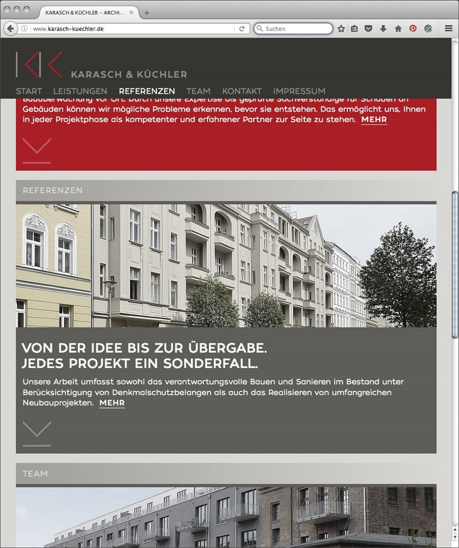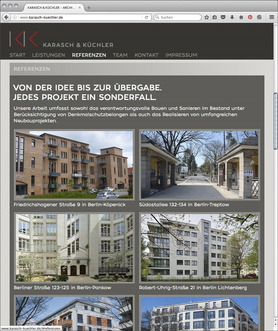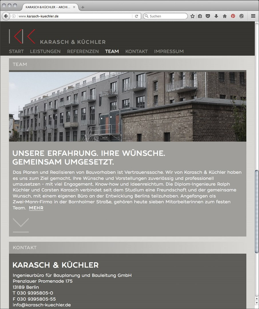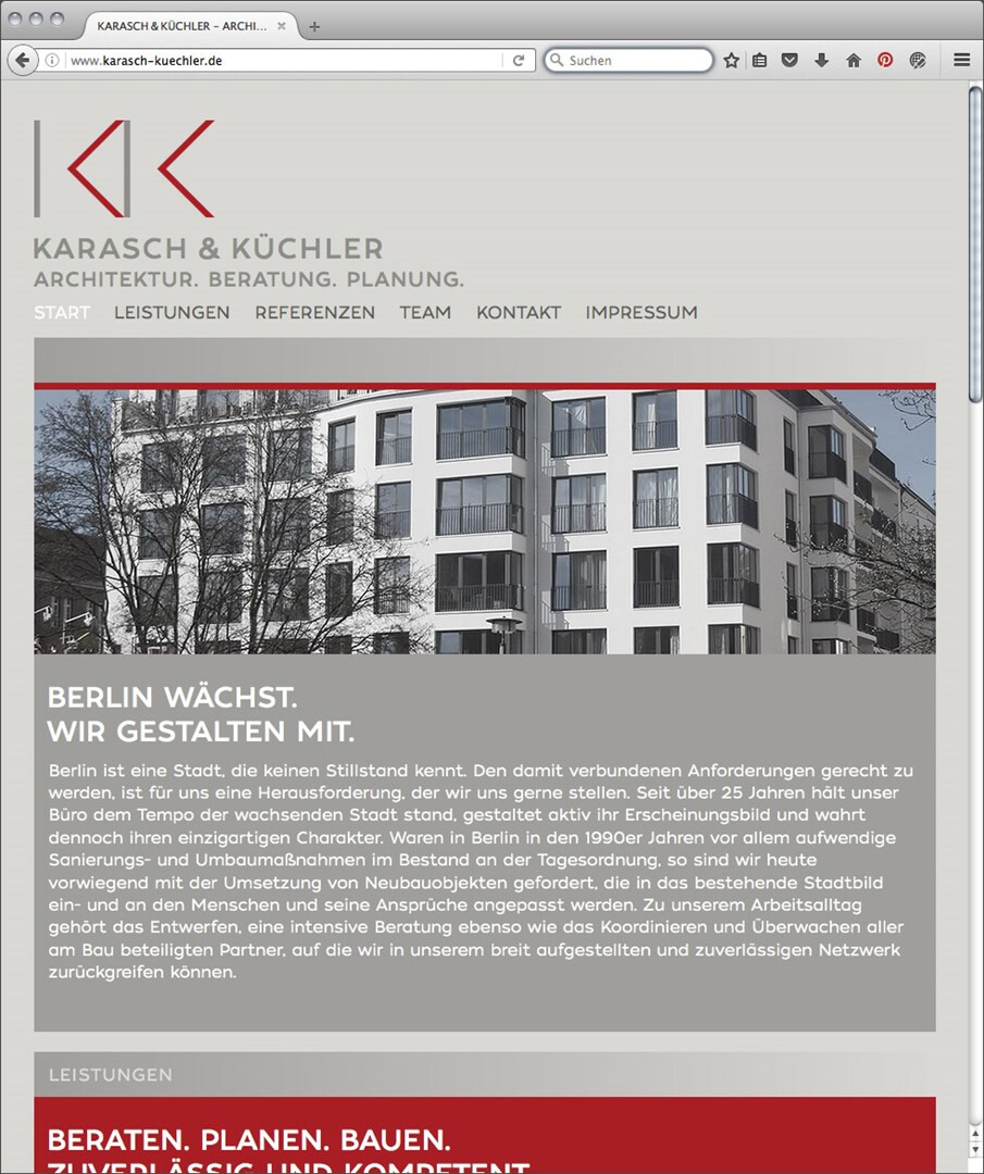 neue website karasch-kuechler.de im rahmen eines erscheinungsbilds für das berliner architektur- und ingenieurbüro karasch und küchler. programmierung: