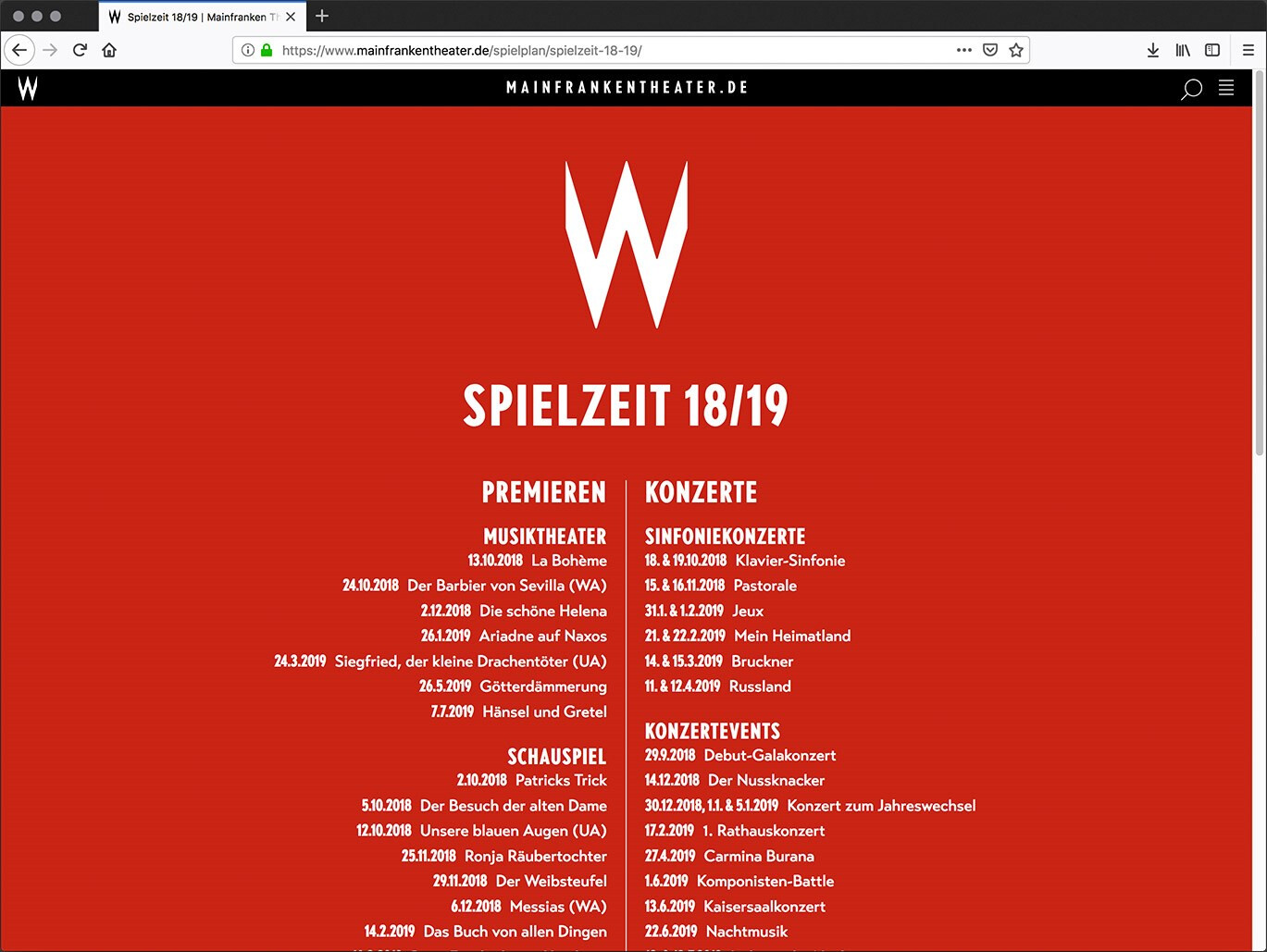 neue website für das mainfrankentheater. im rahmen der modernisierung des hauses entwickelt usus eine zeitgemäße dynamische