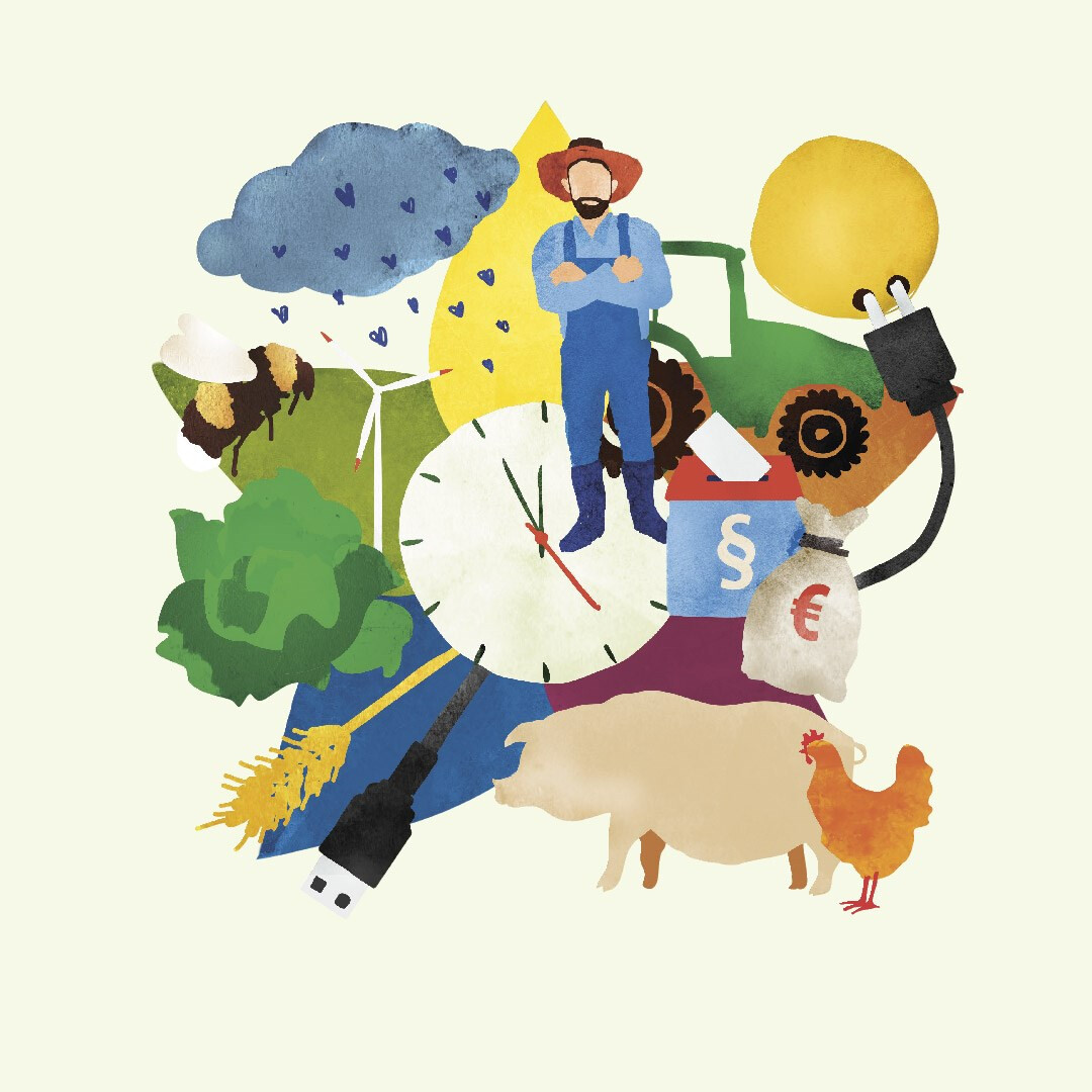 bildkonzept für das alnatura magazin 2017. wo wird es hingehen mit der landwirtschaft? in der neuen serie stellen namhafte experten ihre thesen vor. illustration: robert seegler