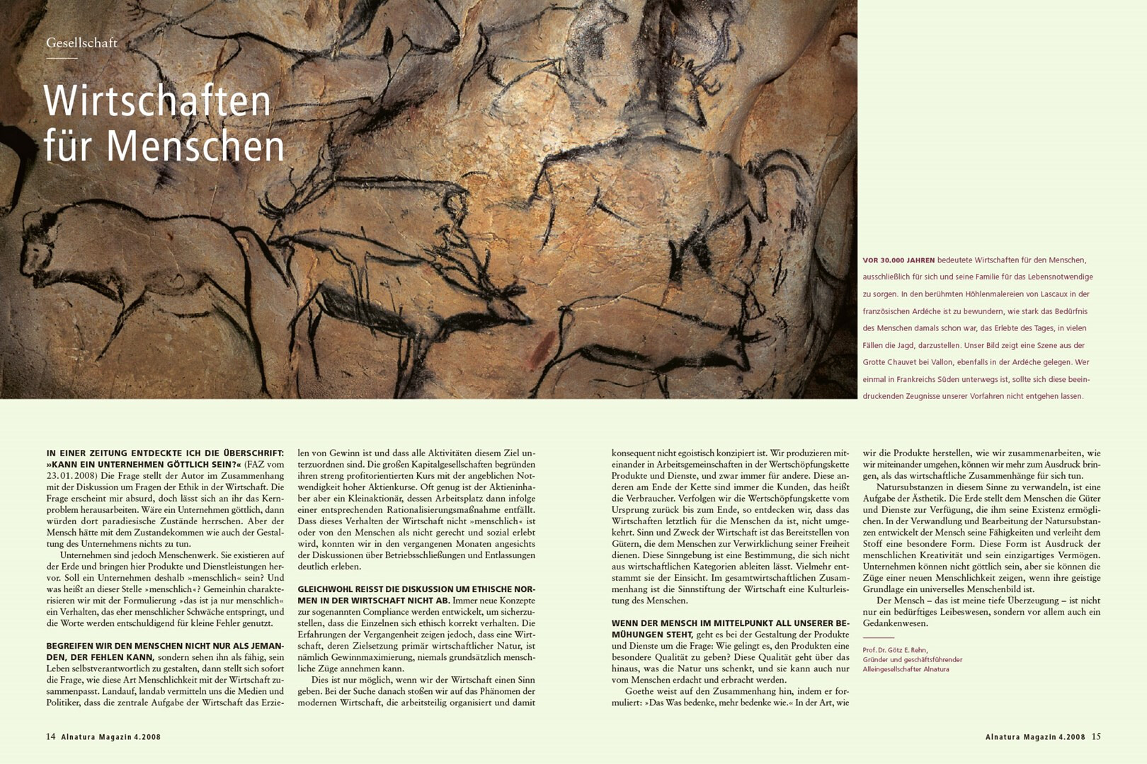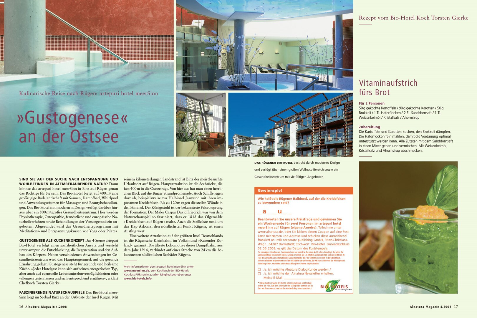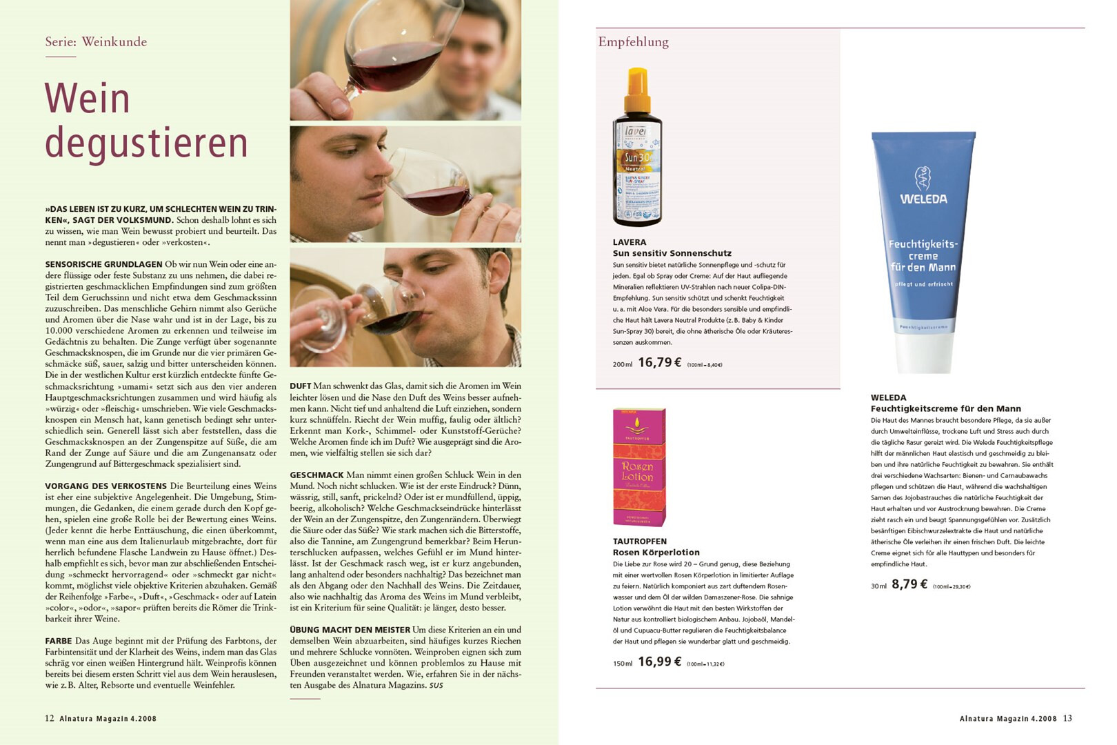 relaunch des alnatura corporate-magazins, ausgabe april 2008. usus verleiht dem kundenmagazin ab jahrgang 2008 ein neues gesicht. auf 24 seiten finden sich aktuelle angebote und redaktionelle beiträge mit einblicken in das unternehmen sowie zu gesellschaftlich relevanten themen. verlag und redaktion: mfk corporate publishing gmbh, darmstadt