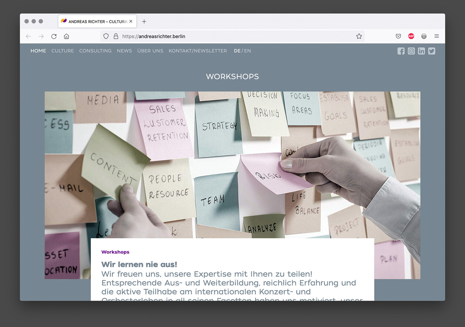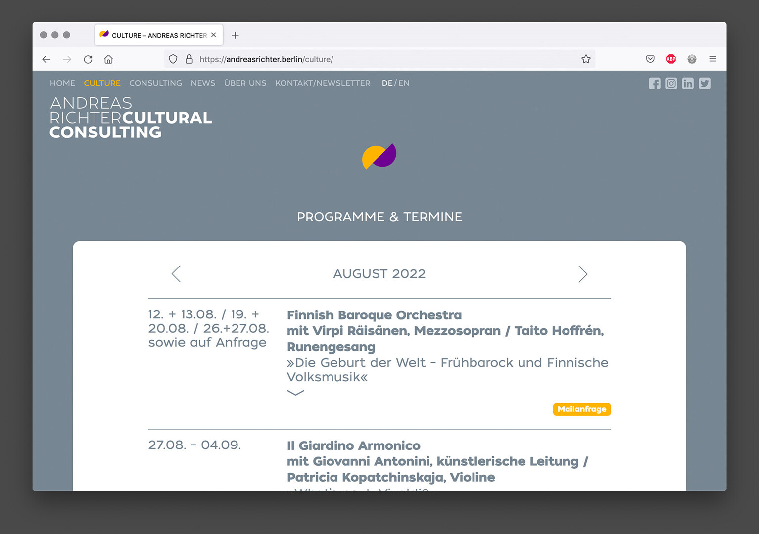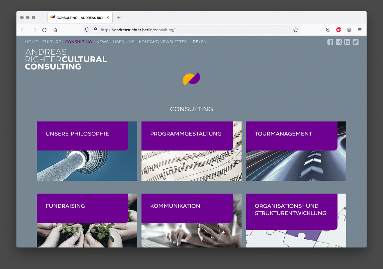 seit der gründung hat sich das portofolio von andreas richter cultural consulting erweitert. die beiden kernbereiche kulturmanagement/-verkauf und consulting werden auf der
