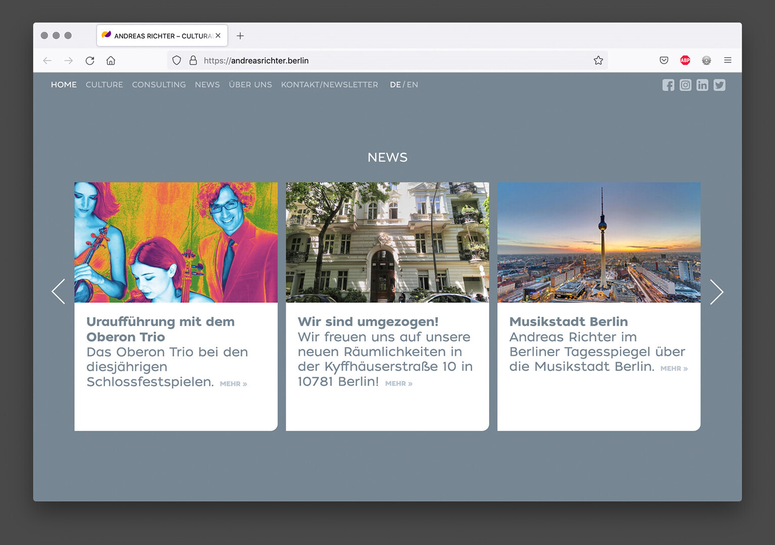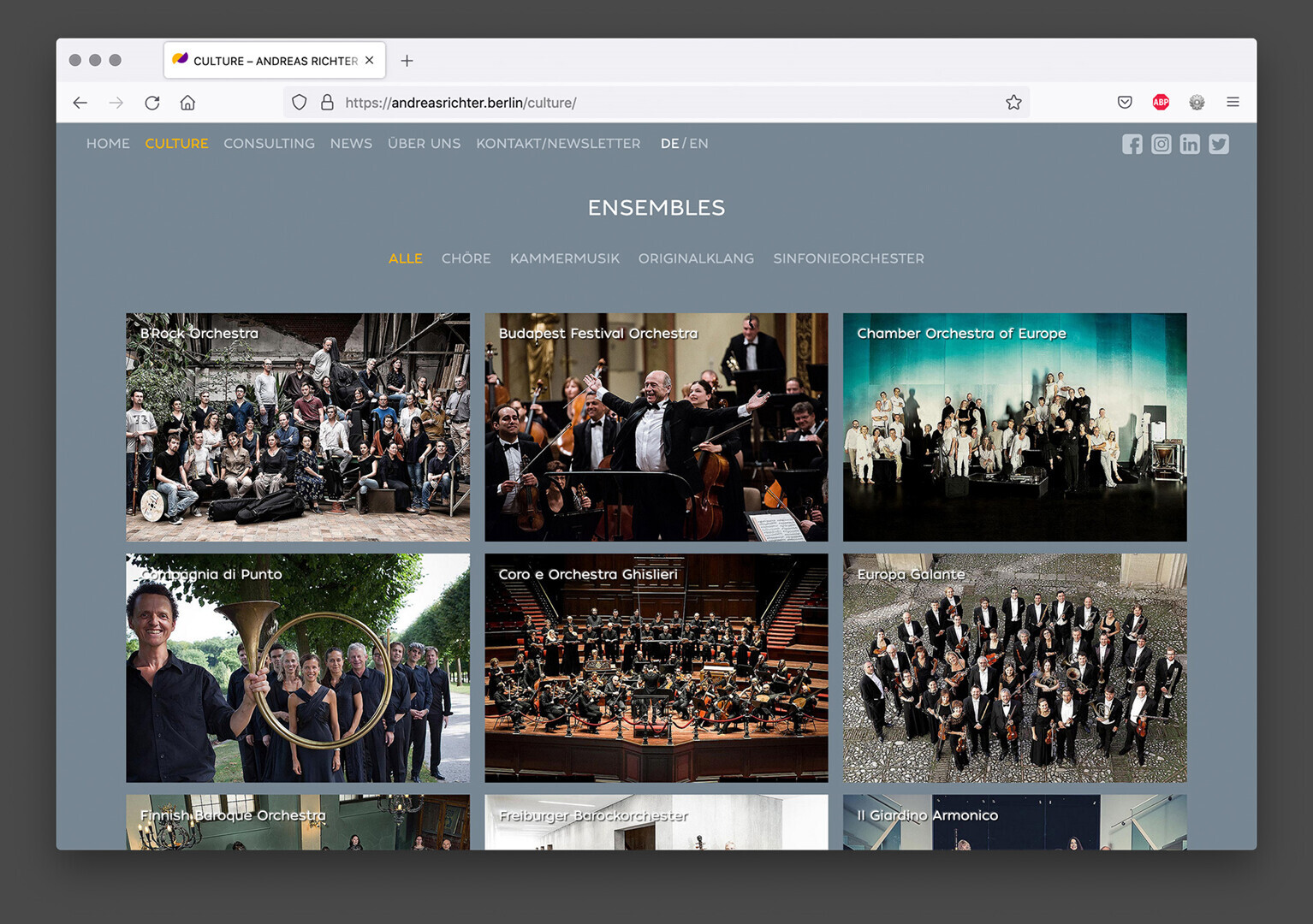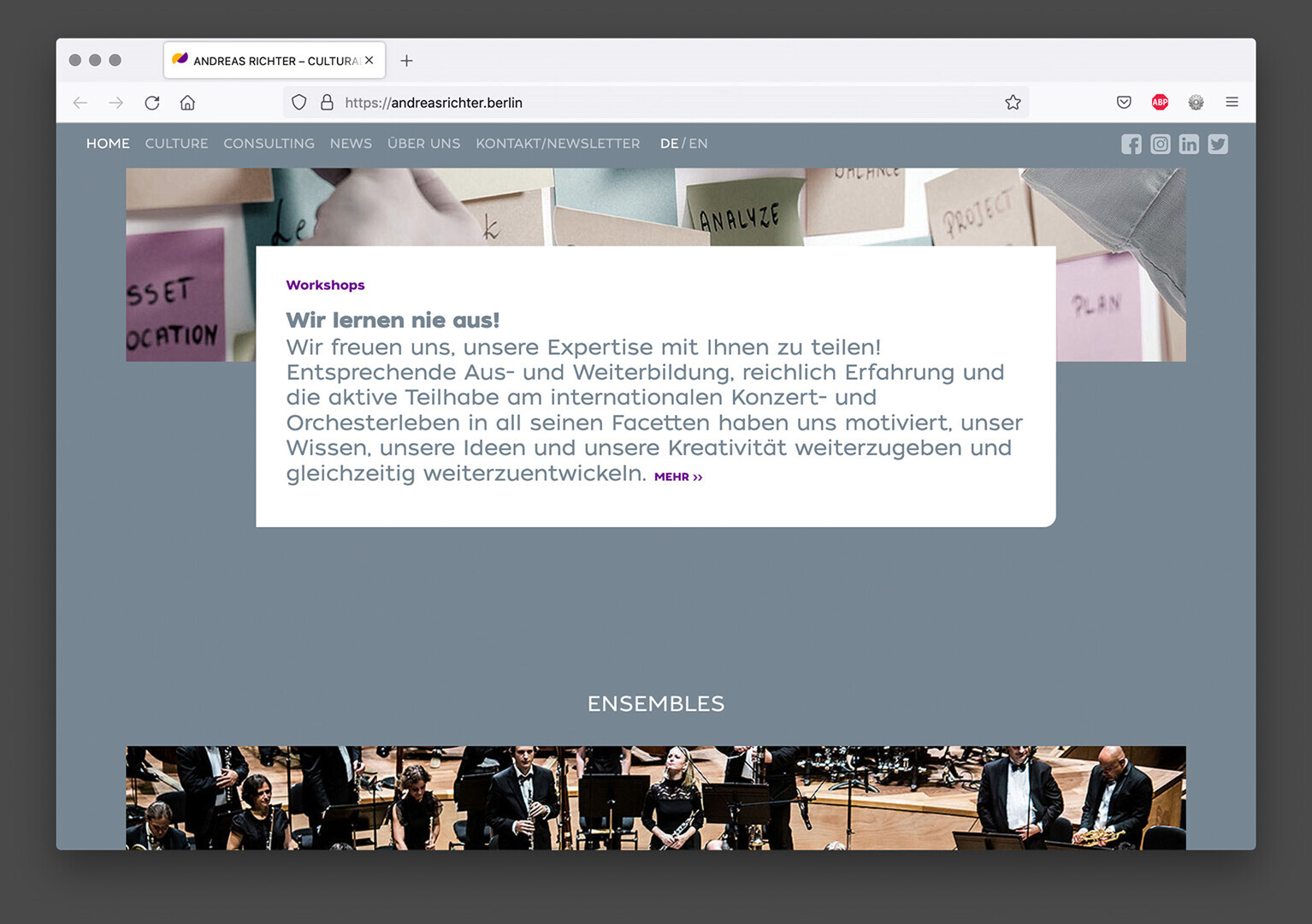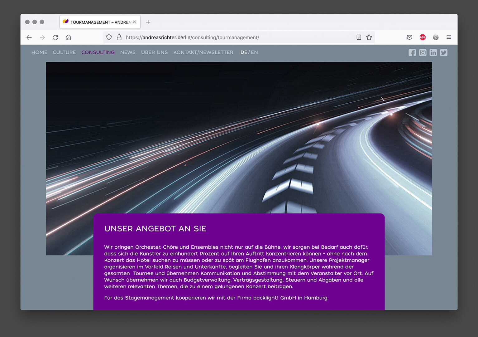 seit der gründung hat sich das portofolio von andreas richter cultural consulting erweitert. die beiden kernbereiche kulturmanagement/-verkauf und consulting werden auf der