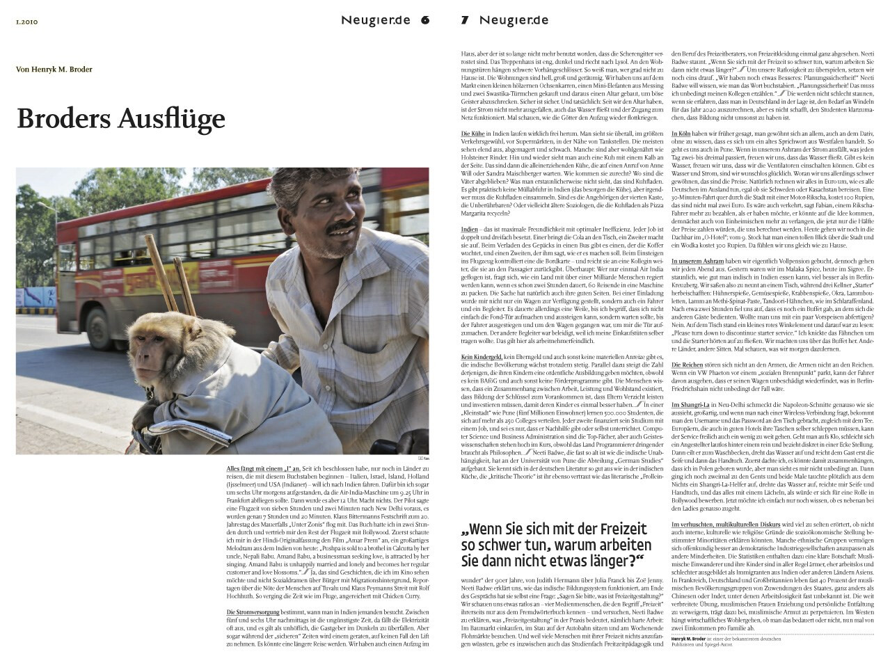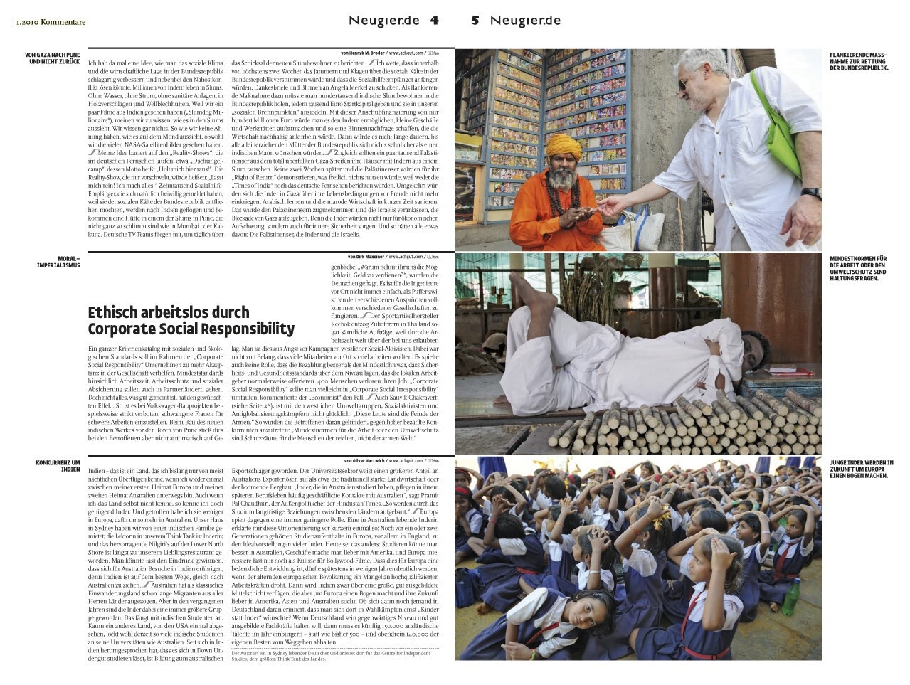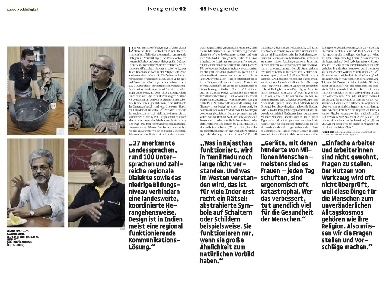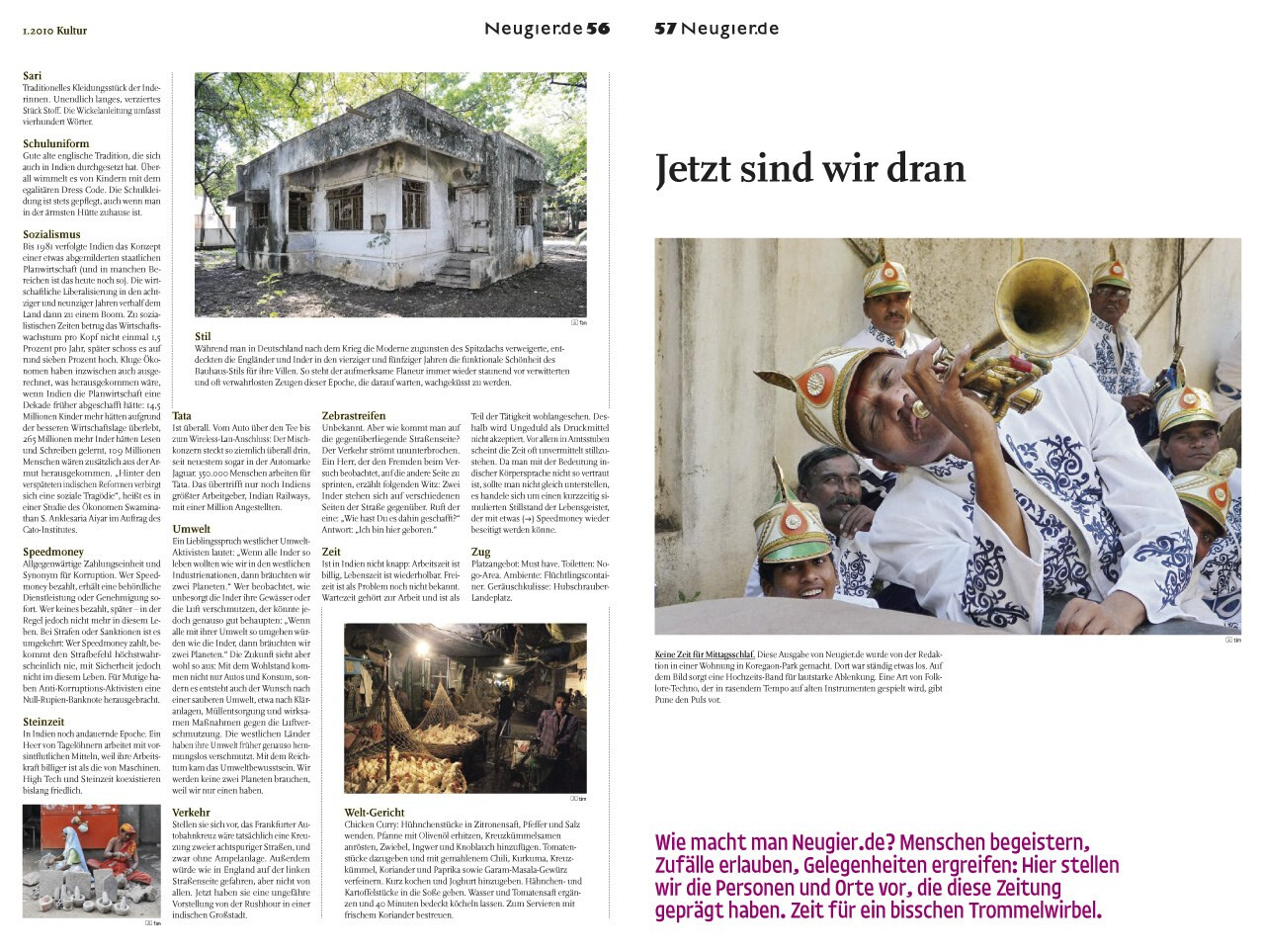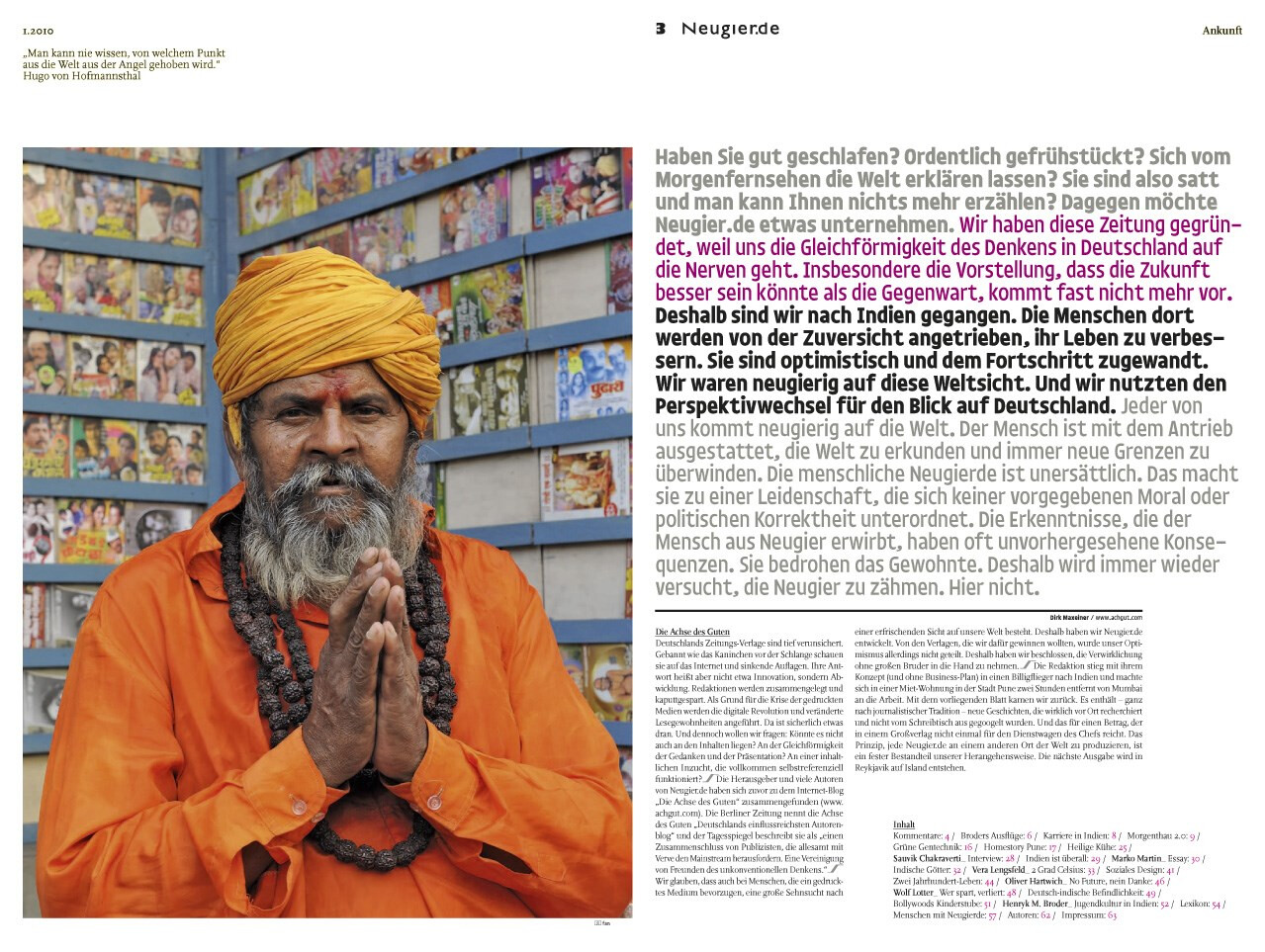 zeitung im schuber, ausgabe 01.2010. ein autorenprojekt, das in allen teilen frei von fremdbestimmung ist. vier journalisten und fotografen ziehen aus, indien kennenzulernen und lassen sich treiben. das ergebnis ist ein panoptikum und tagebuch aus reportagen, foto-essays und schlaglichtern. ausgezeichnet als »best of the best« des red dot design award 2011.