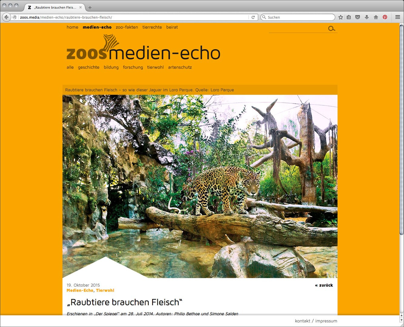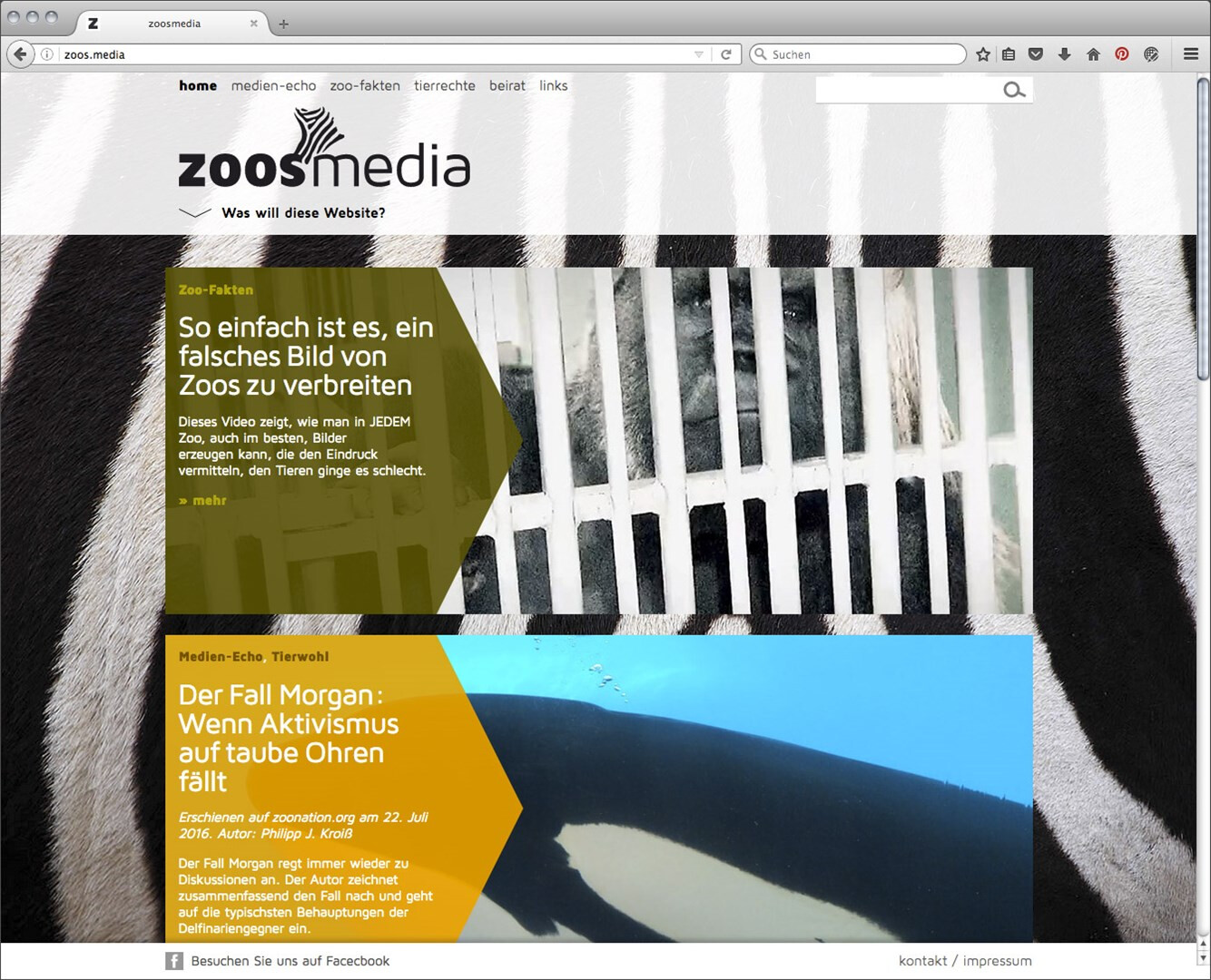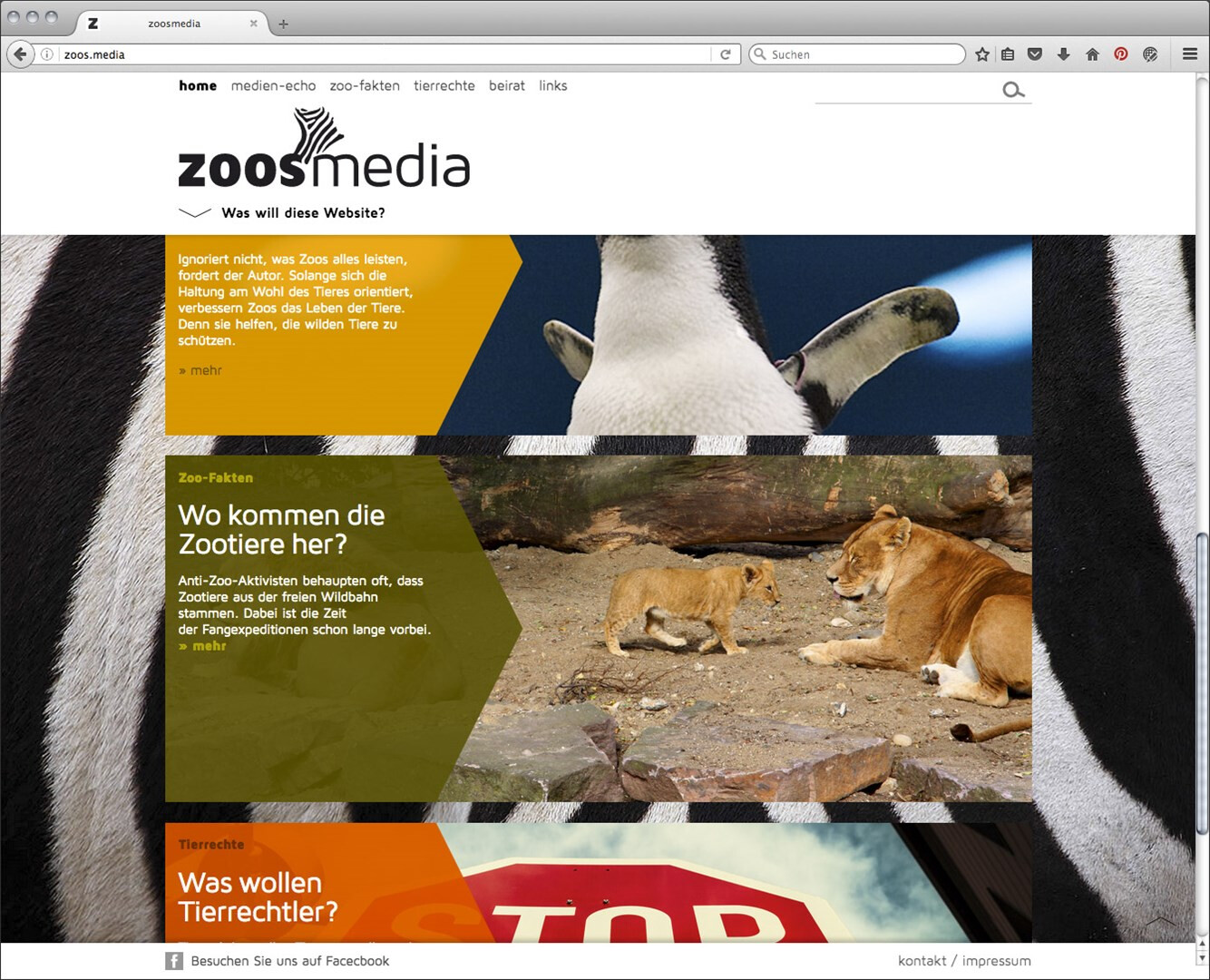 zoos.media möchte mit gesammelten beiträgen belegen, dass zoos zu wichtigen kulturellen einrichtungen der moderne gehören. webdesign im auftrag der stadt land fluss gmbh, programmierung: