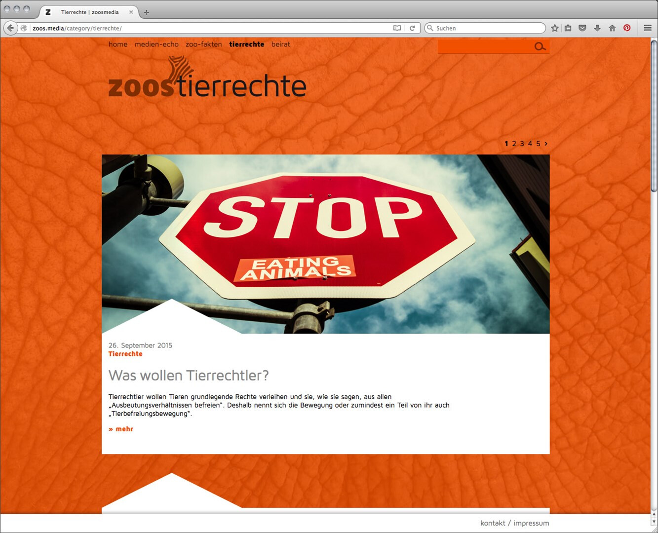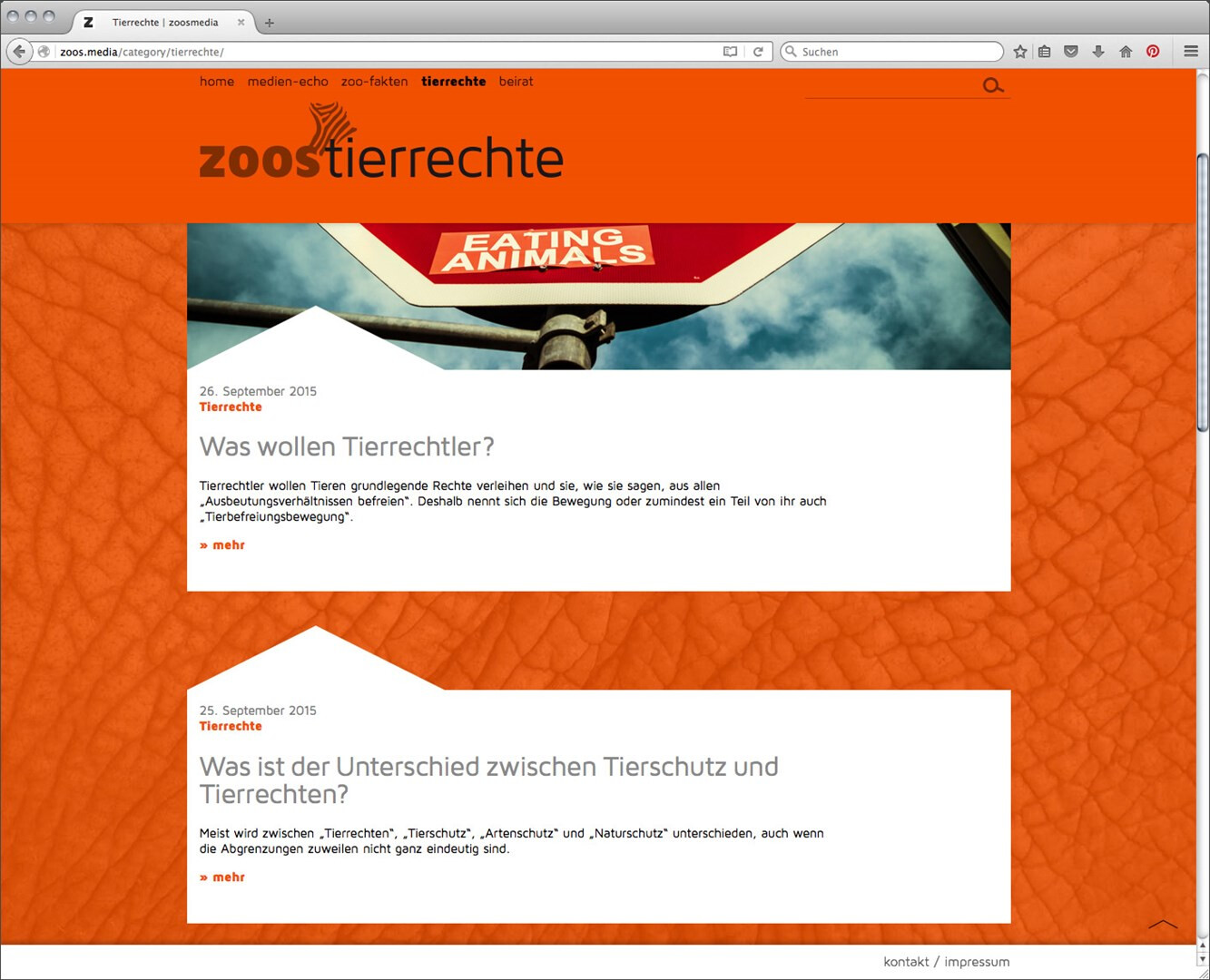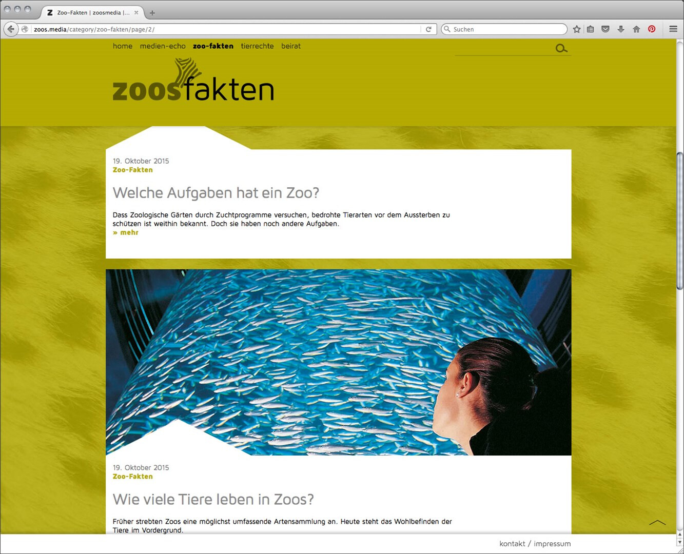 zoos.media möchte mit gesammelten beiträgen belegen, dass zoos zu wichtigen kulturellen einrichtungen der moderne gehören. webdesign im auftrag der stadt land fluss gmbh, programmierung: