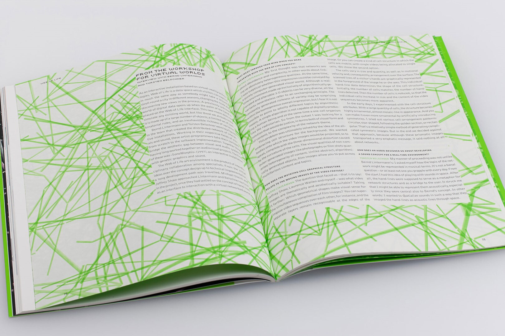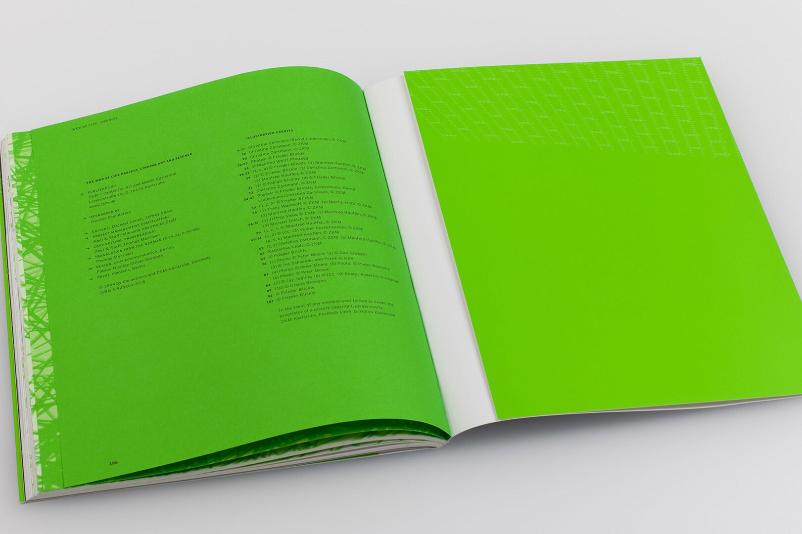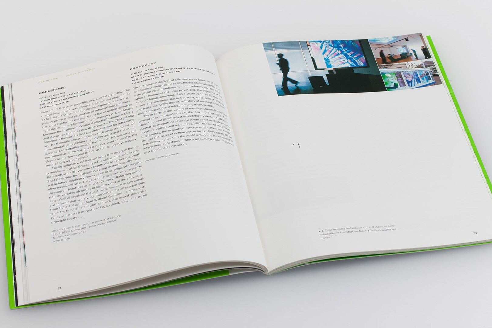 im rahmen des medienkunstprojekts »web of life« am zentrum für kunst und medientechnologie in karlsruhe gestaltet usus die dokumentation für den künstler jeffrey shaw. 2004